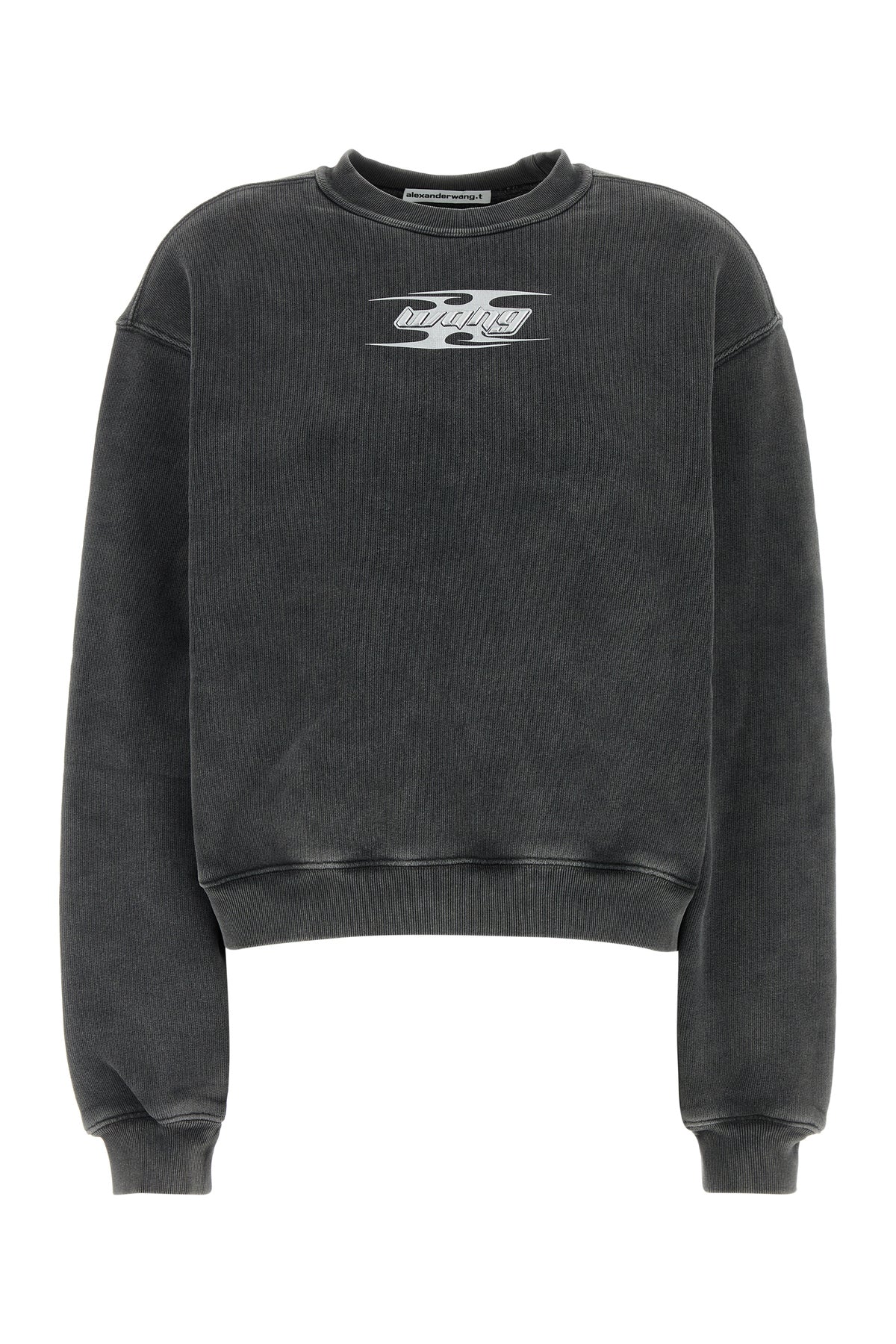- Ribbed crew-neck, cuffs and hemline