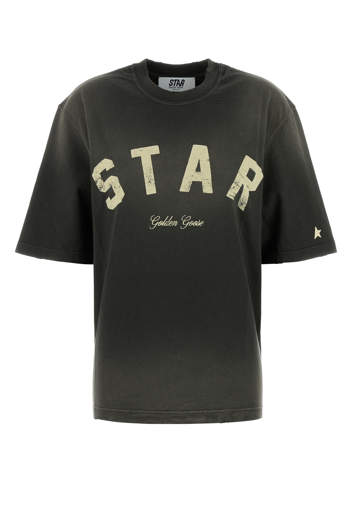 T-shirt realized in stonewashed pure cotton characterized by embroidered logo on the chest enriched by iconic Star metal details at the back.