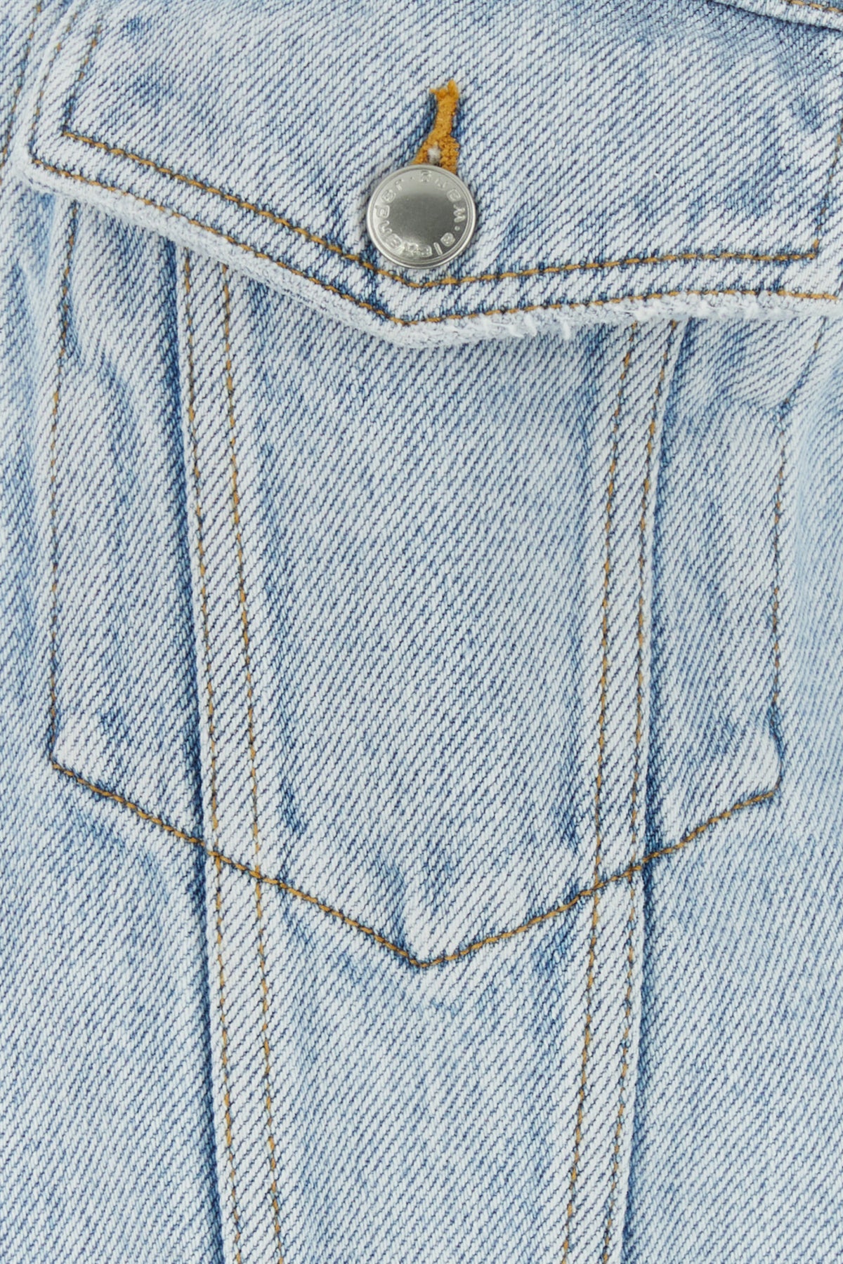 Jacket realized in stonewashed pure cotton denim enriched by contrasting logoed label at the back.