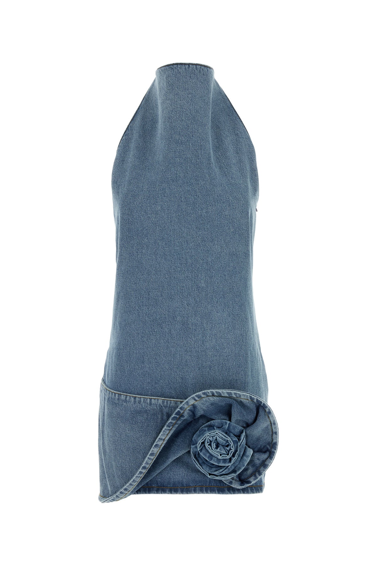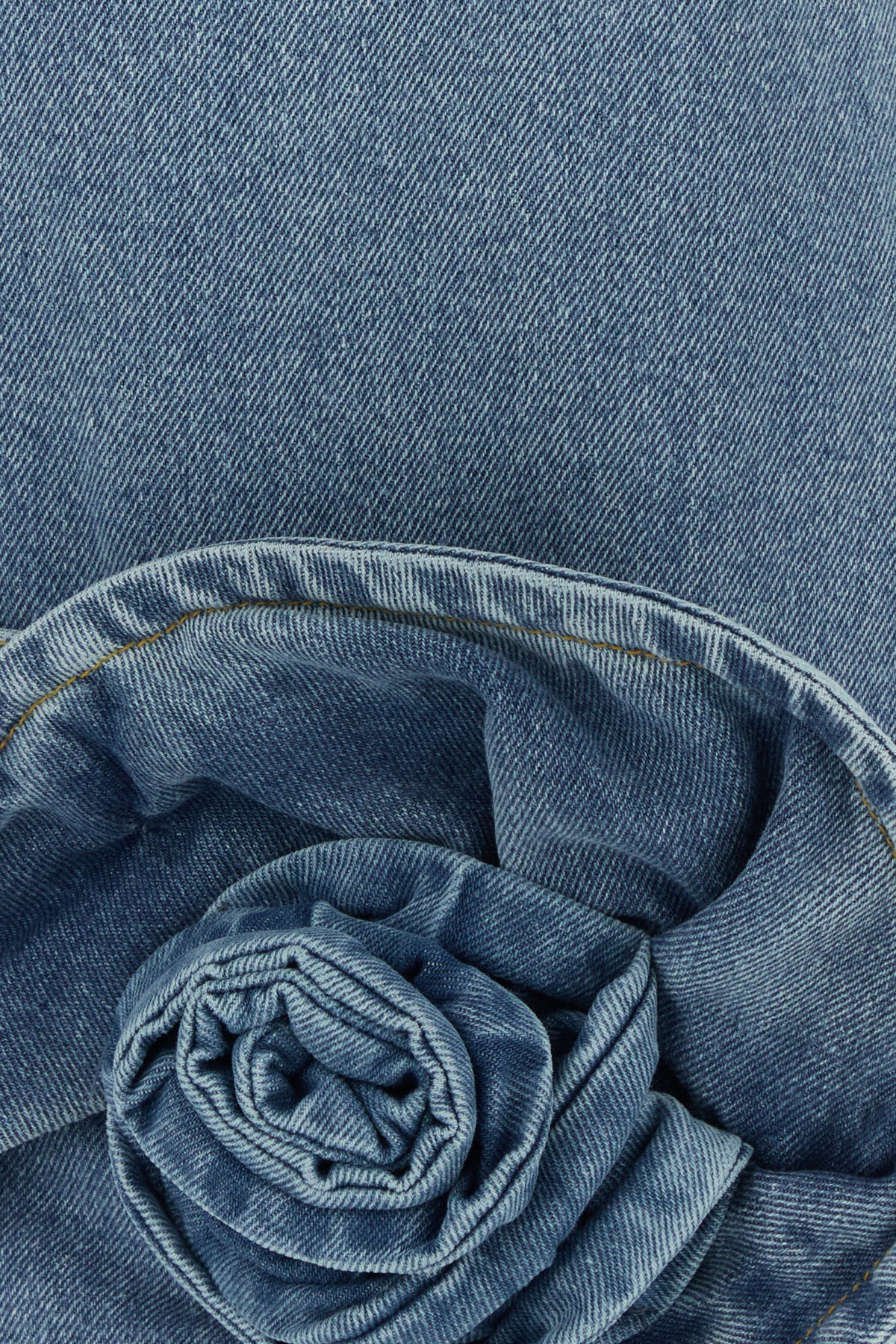 Mini dress realized in stonewashed pure cotton denim enriched by floral embellishment on the hemline.