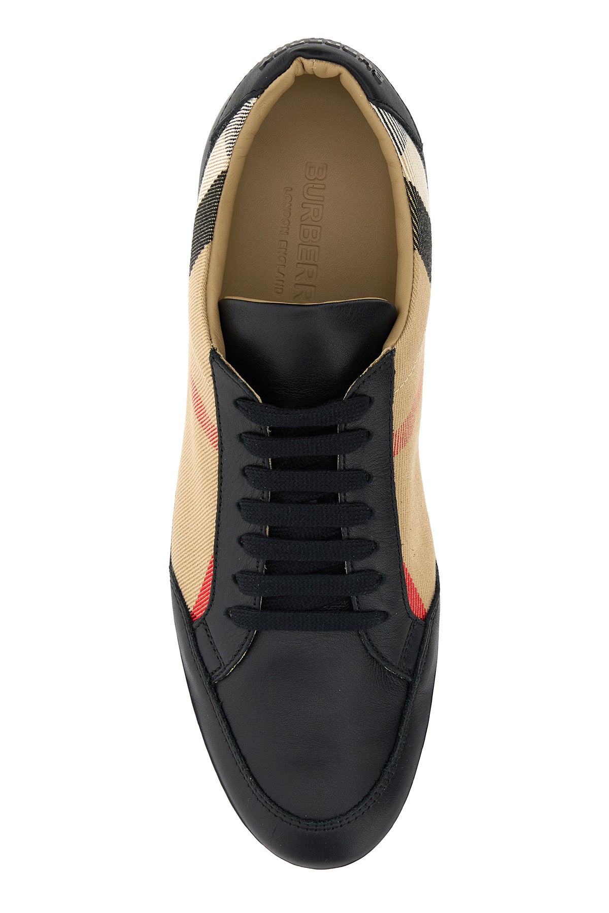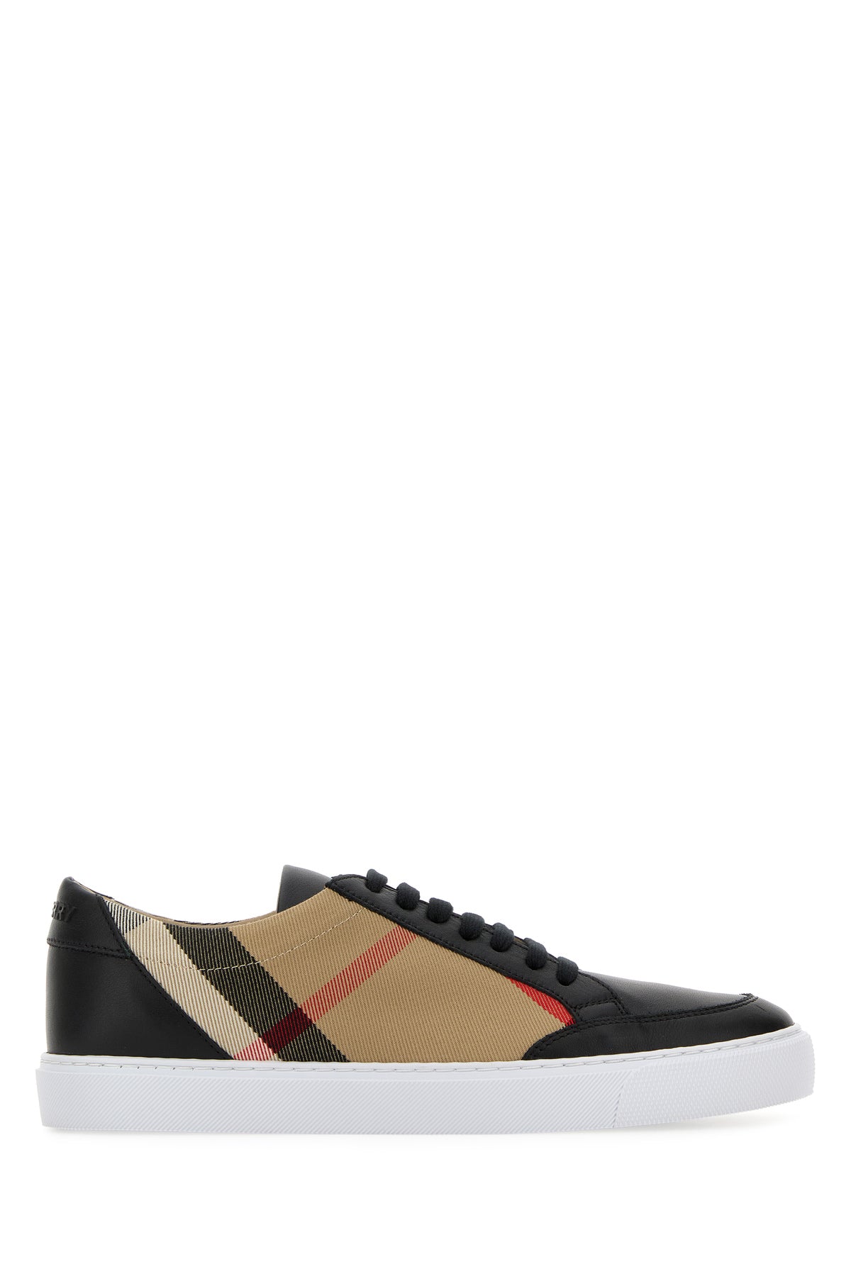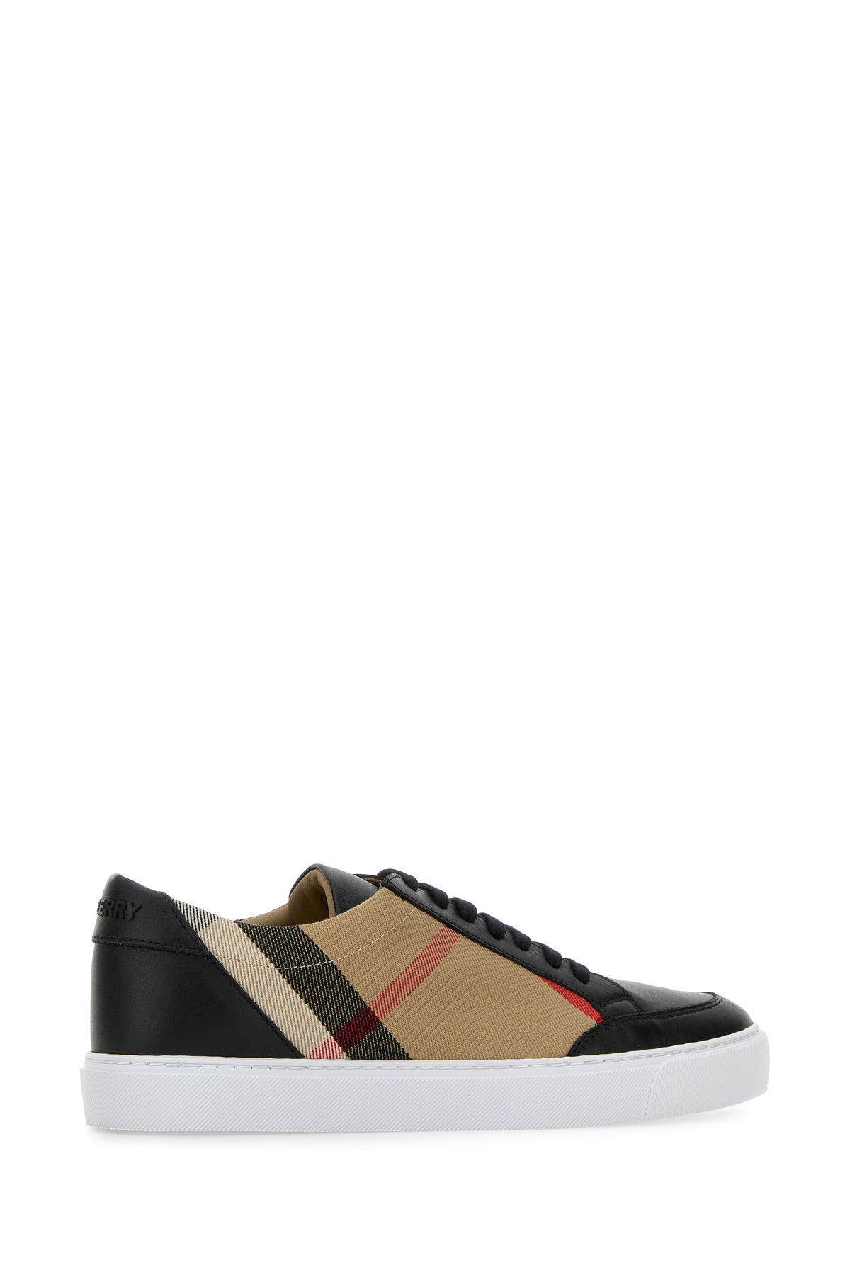 Sneakers realized in canvas with leather inserts on the toe and at the back characterized by Burberry Check embroidery on the sides enriched by logoed patch at the back.