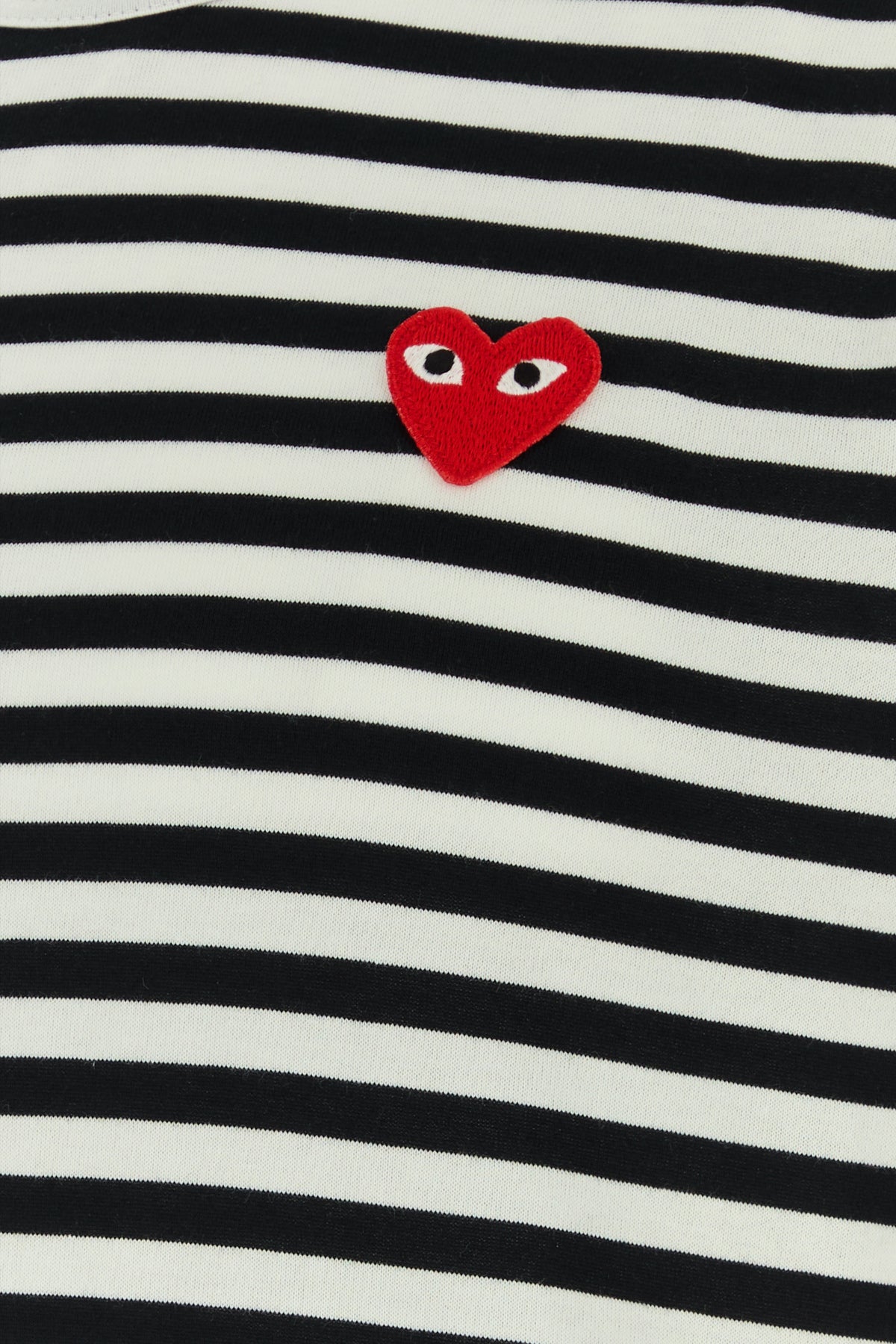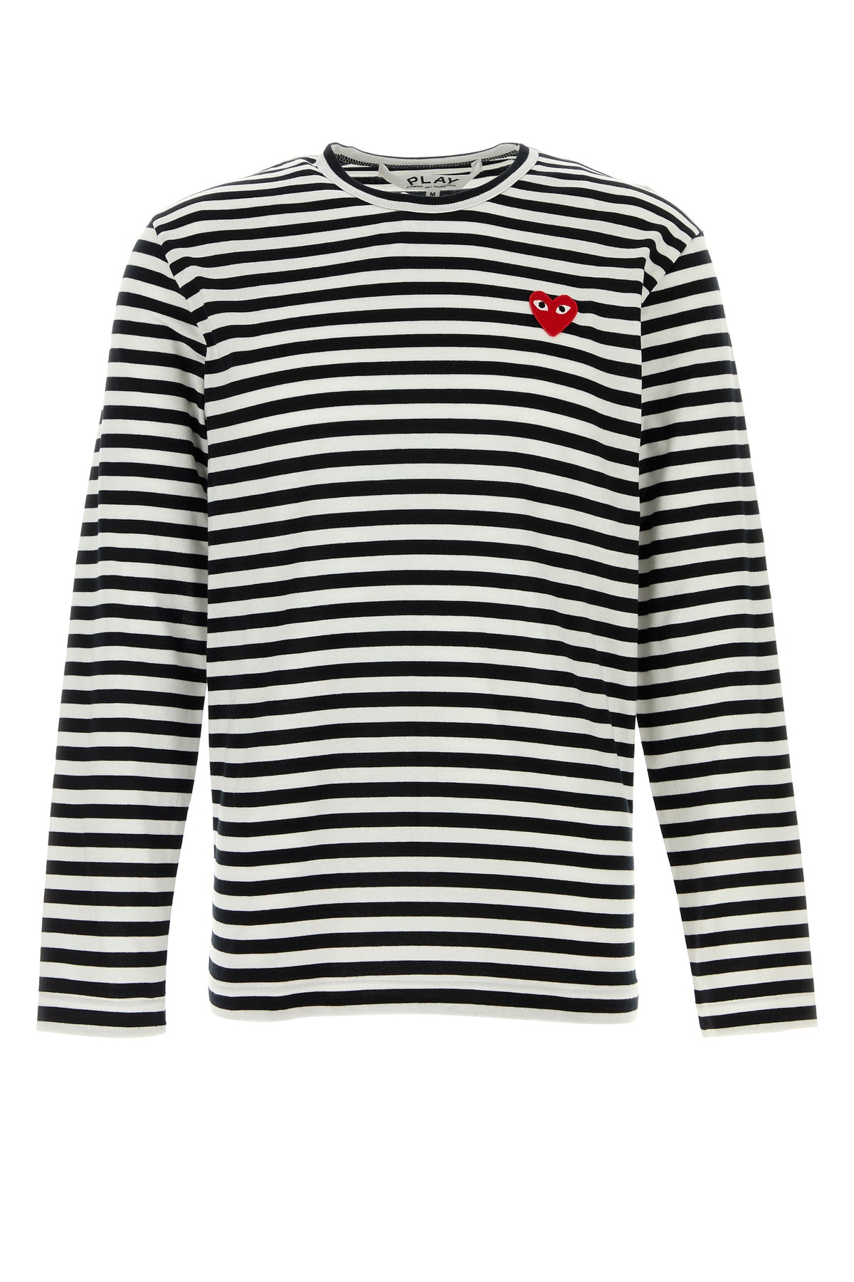 Long-sleeves t-shirt realized in pure cotton characterized by striped embroidery on the entire surface enriched by Heart patch on the chest.