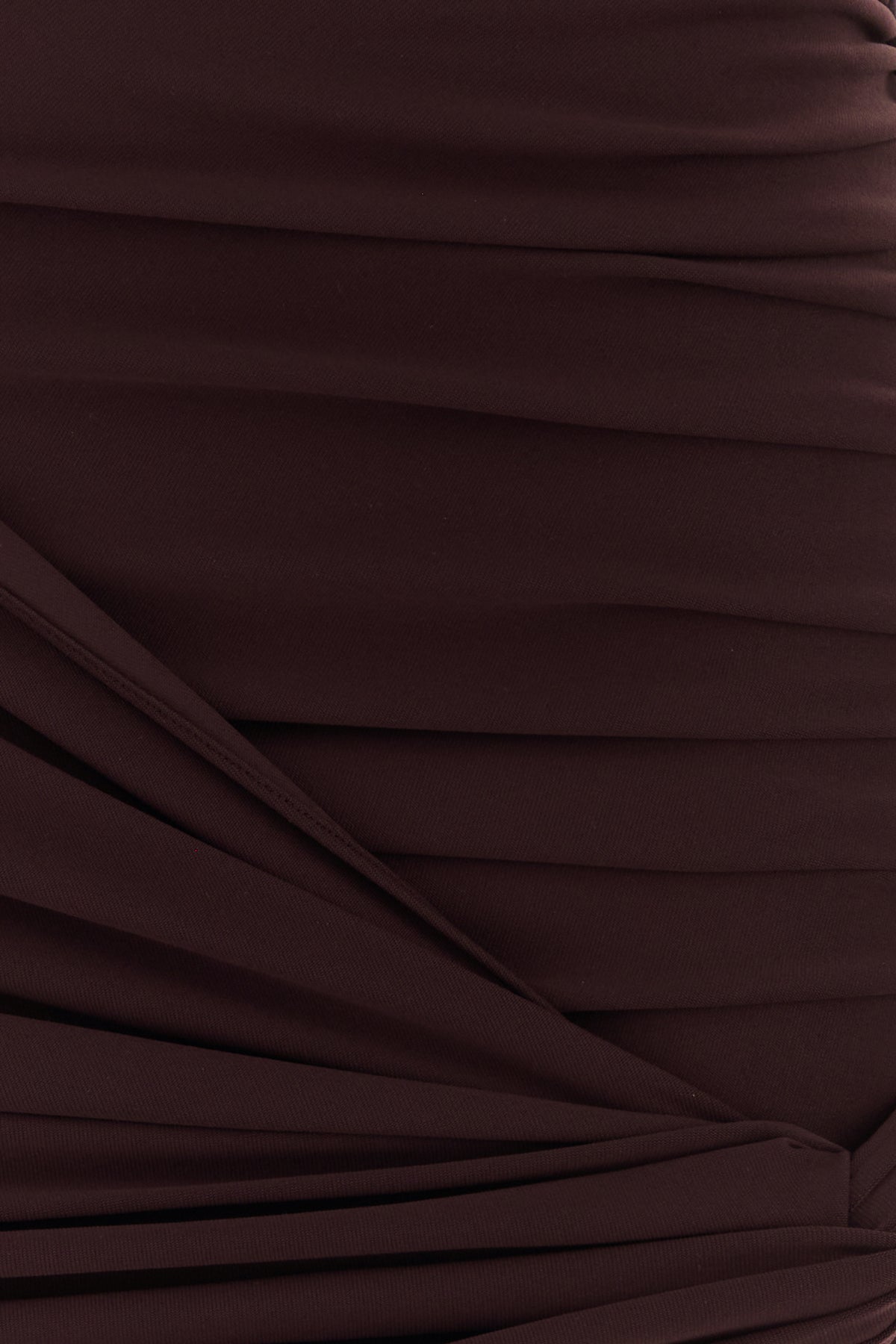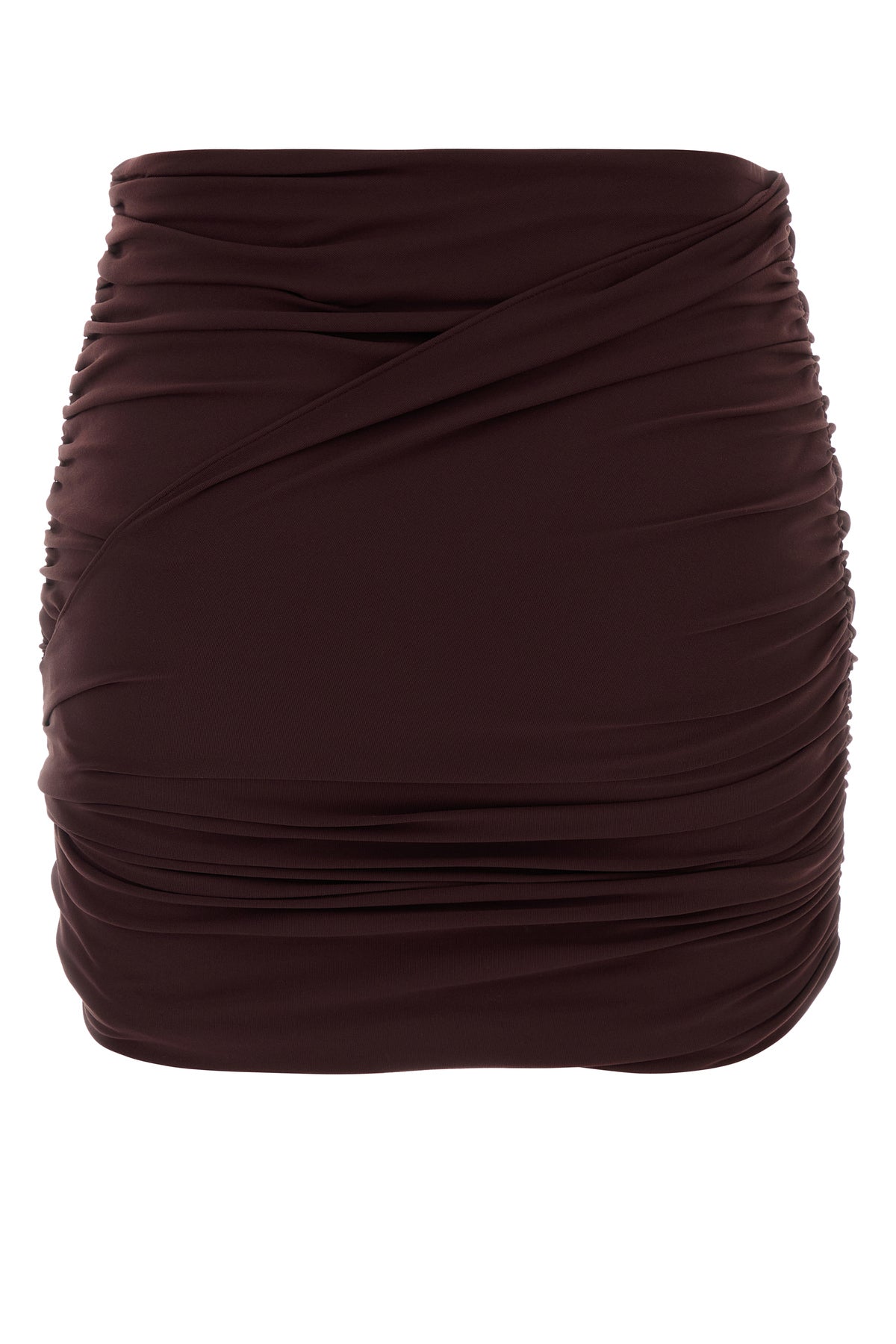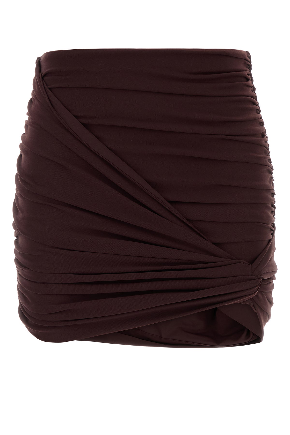 Fitted skirt realized in stretch nylon characterized by decorative knot on the hemline.