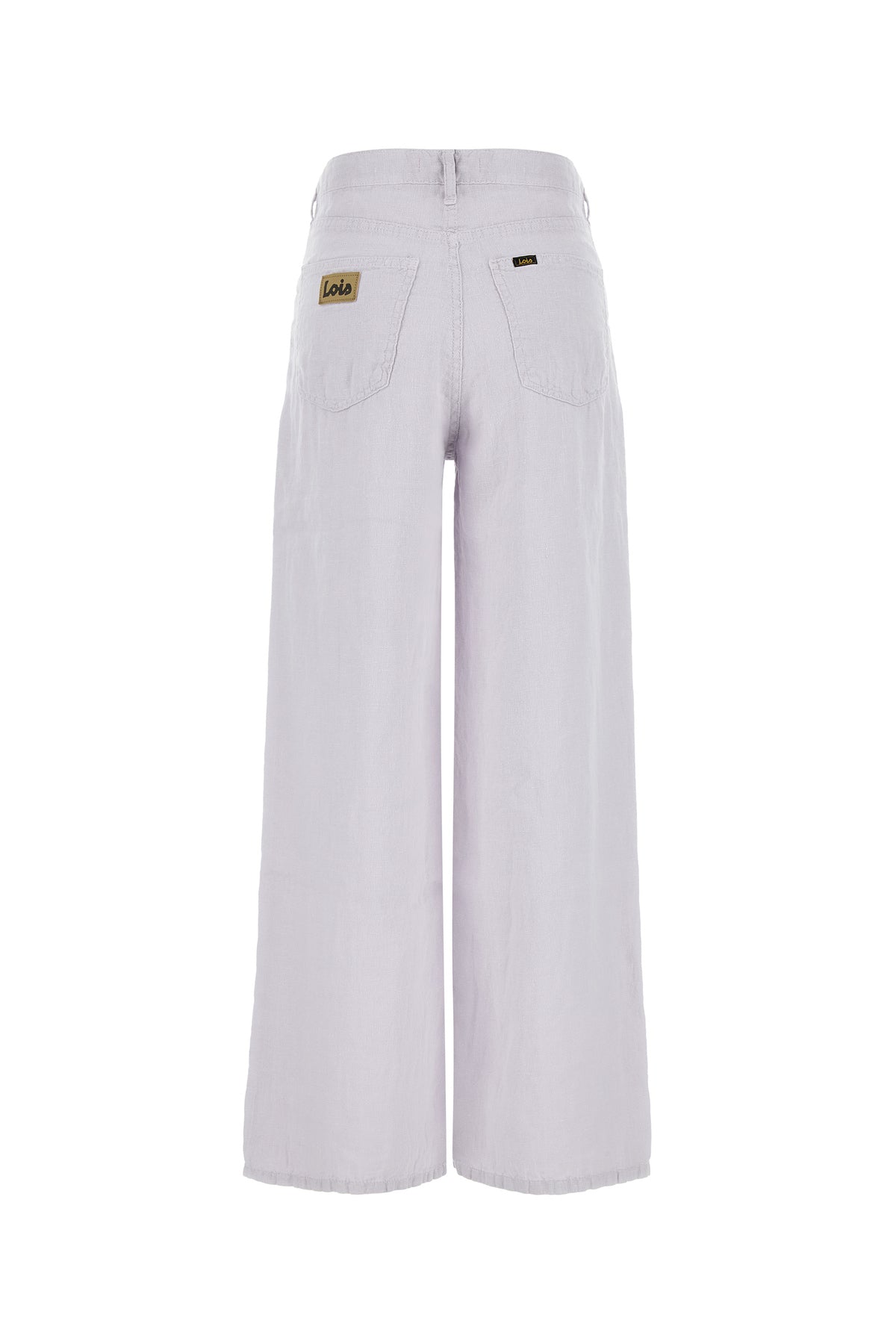 Wide-leg pant realized in pure linen enriched by logoed label at the front and at the back.