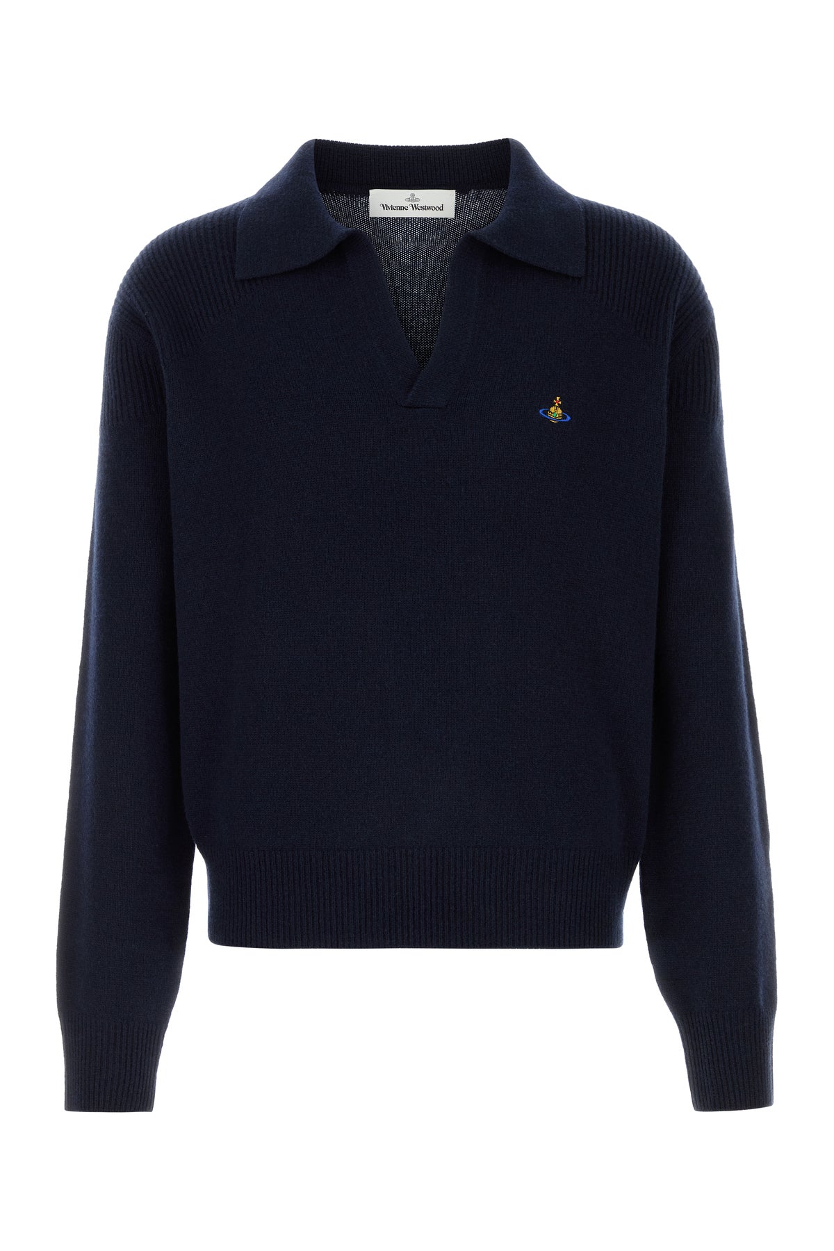 Long-sleeves polo shirt realized in merino wool and cashmere characterized by Orb embroidery on the chest.