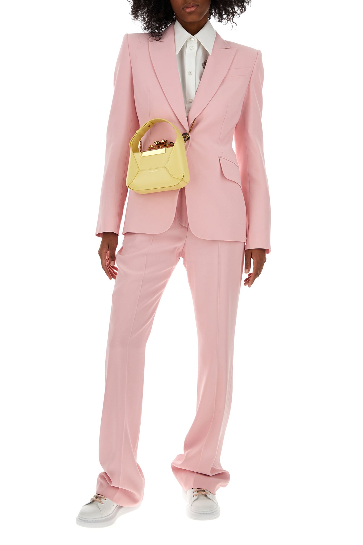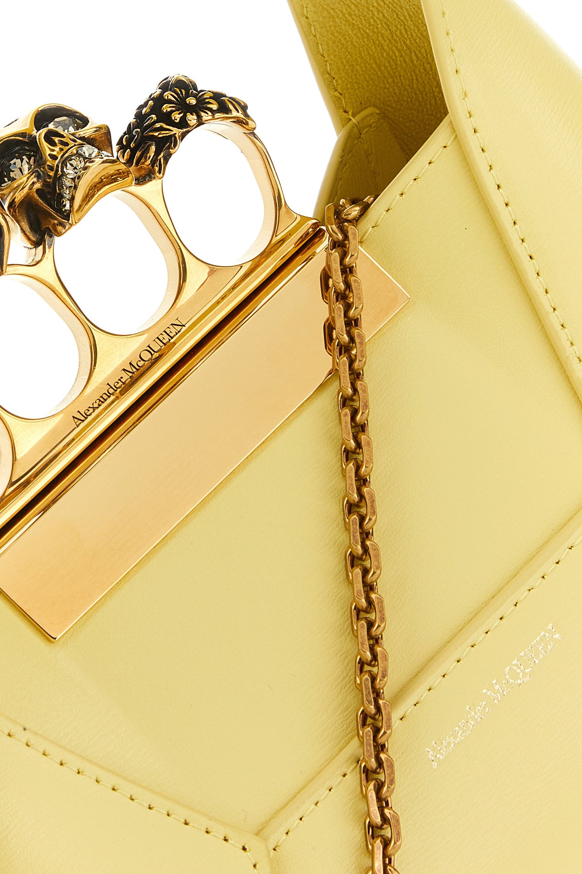Handbag realized in slightly grained leather characterized by laminated printed logo at the front.