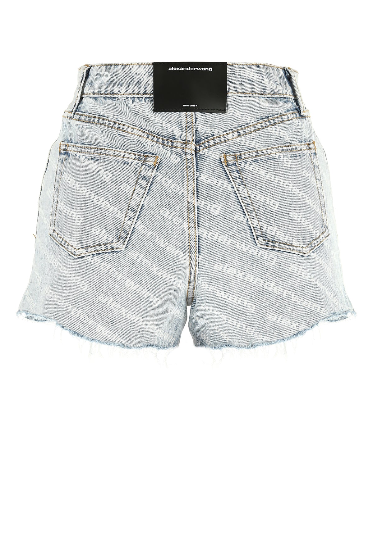 Shorts realized in stonewashed pure cotton denim characterized by printed logo on the entire surface enriched by logoed label at the back.