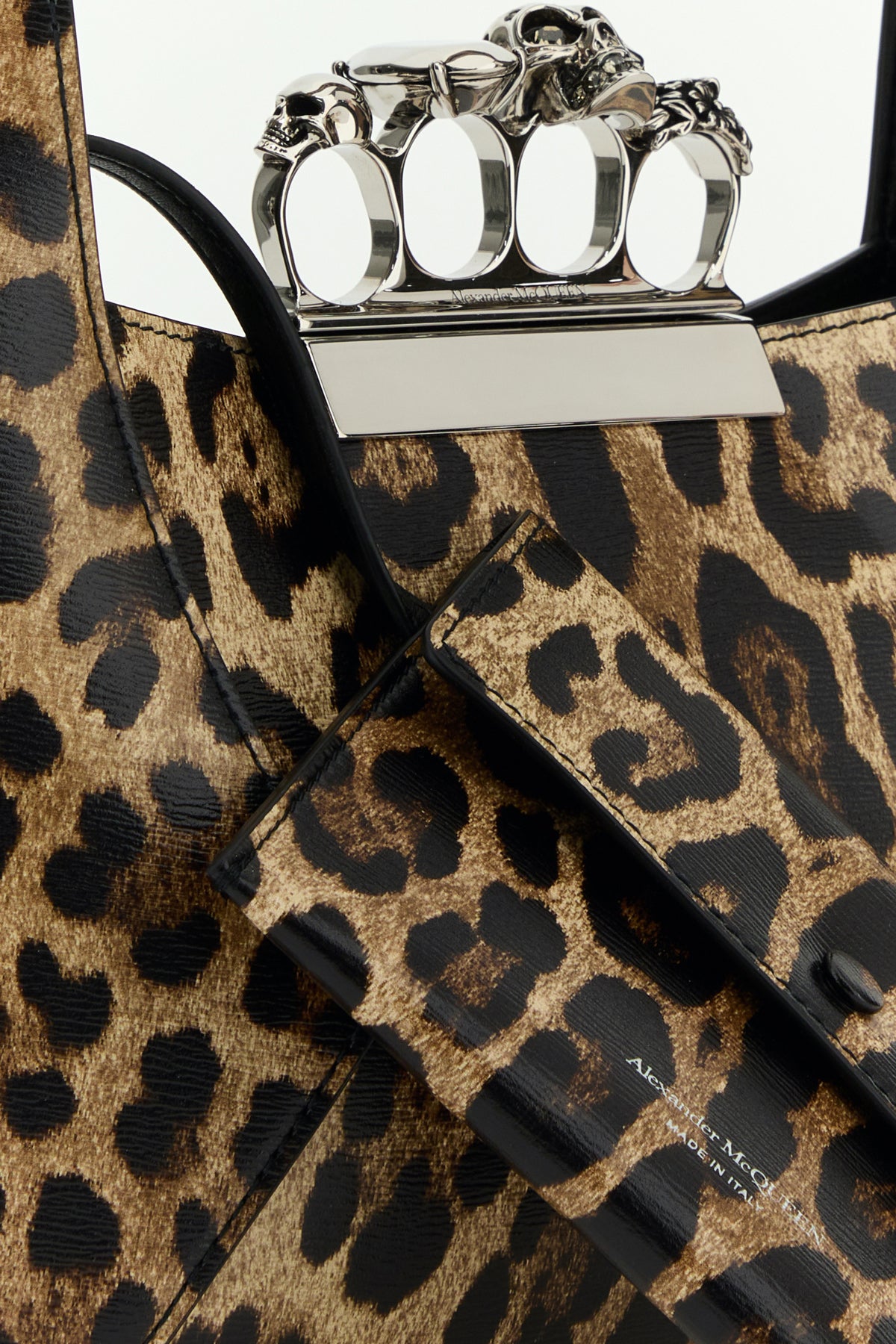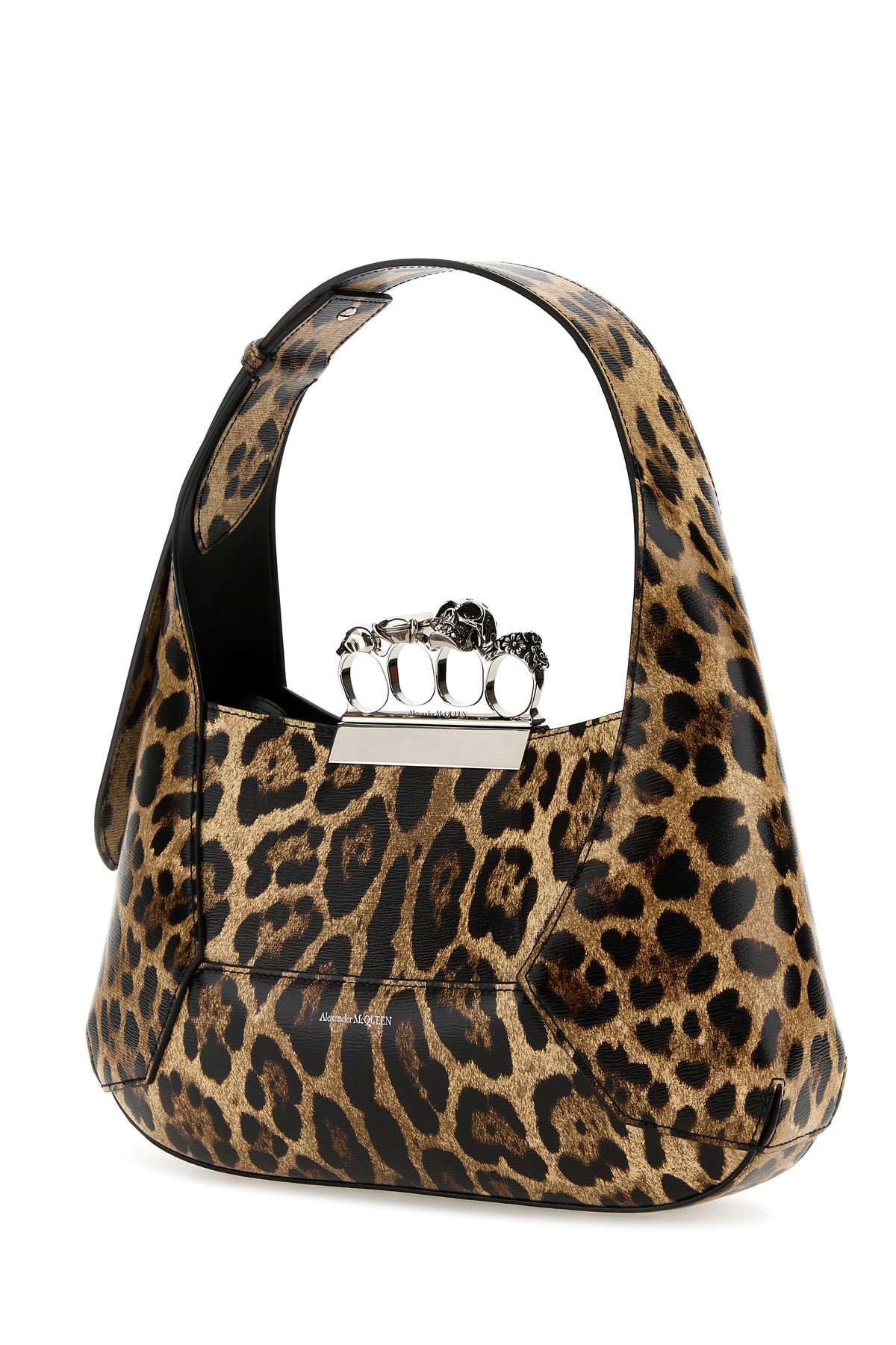 Shoulder bag realized in leather characterized by animal print on the entire surface enriched by jewel handle.