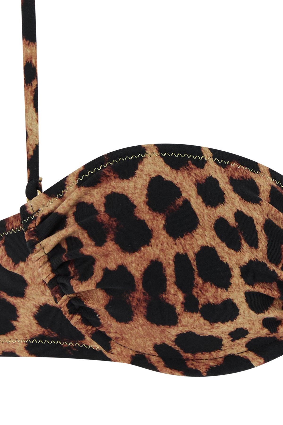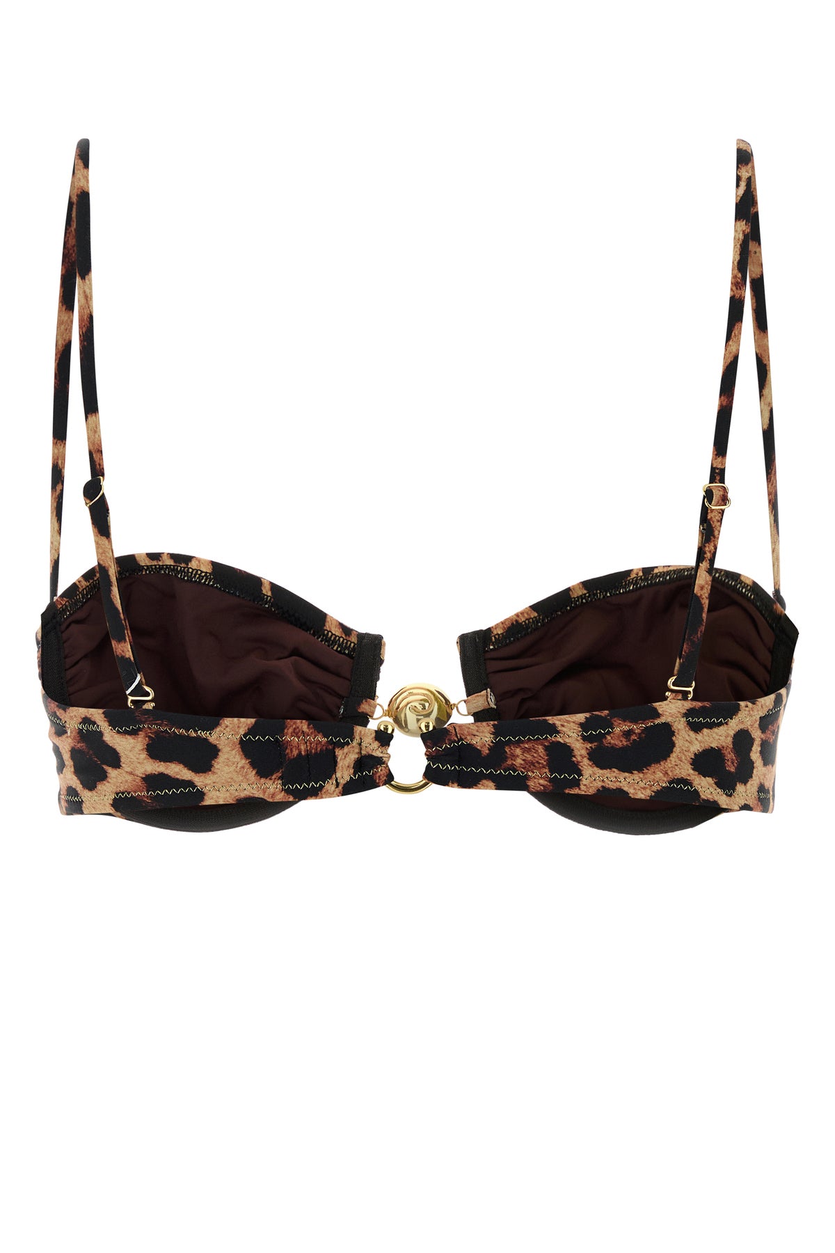 Balcony bikini top realized in stretch recycled nylon characterized by animal print on the entire surface enriched by metal detail at the front.