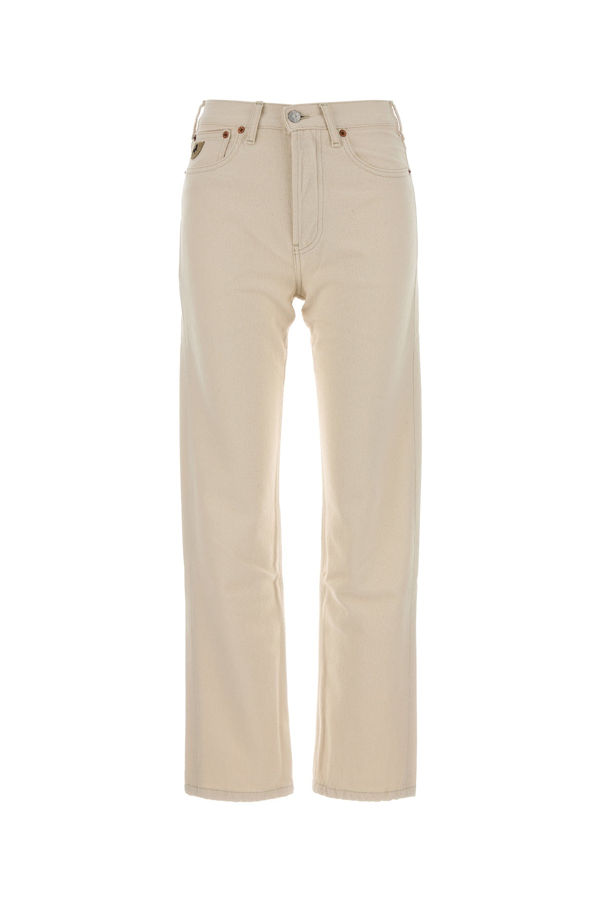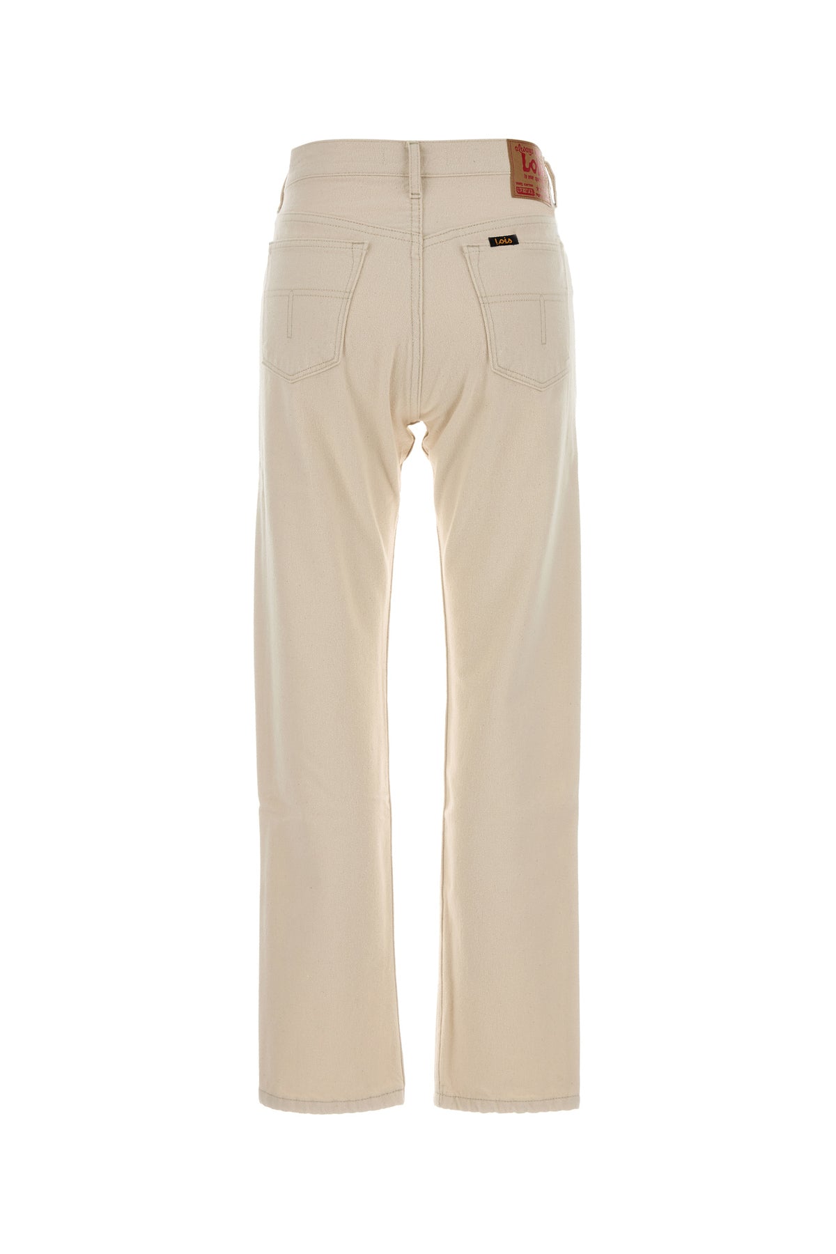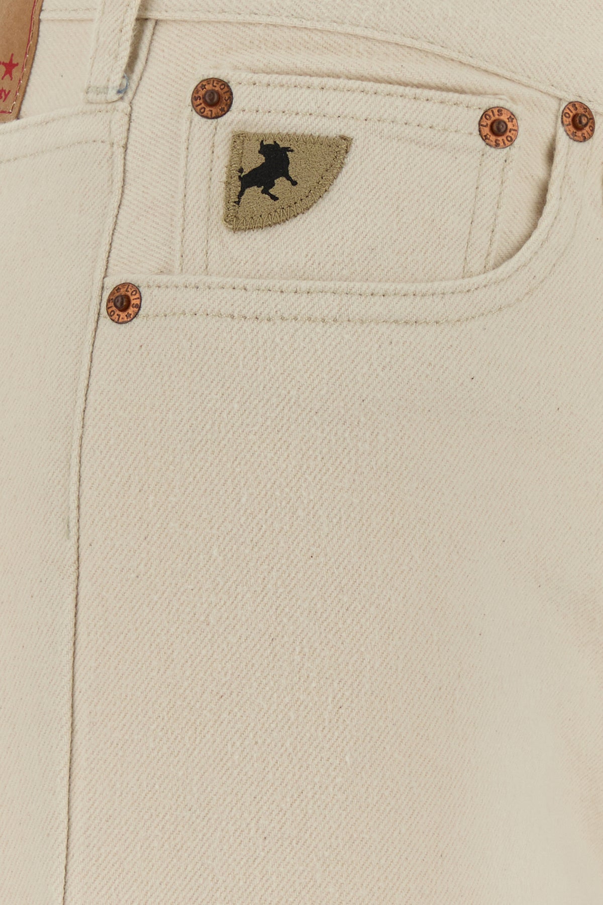 Jeans realized in pure cotton denim enriched by contrasting logoed label at the back.