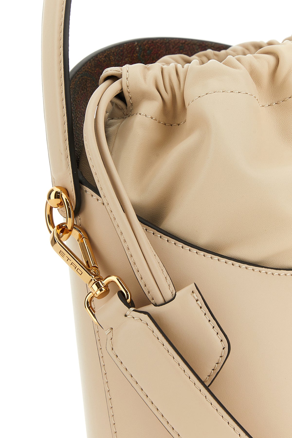 Bucket bag realized in calf leather characterized by embossed logo at the front.