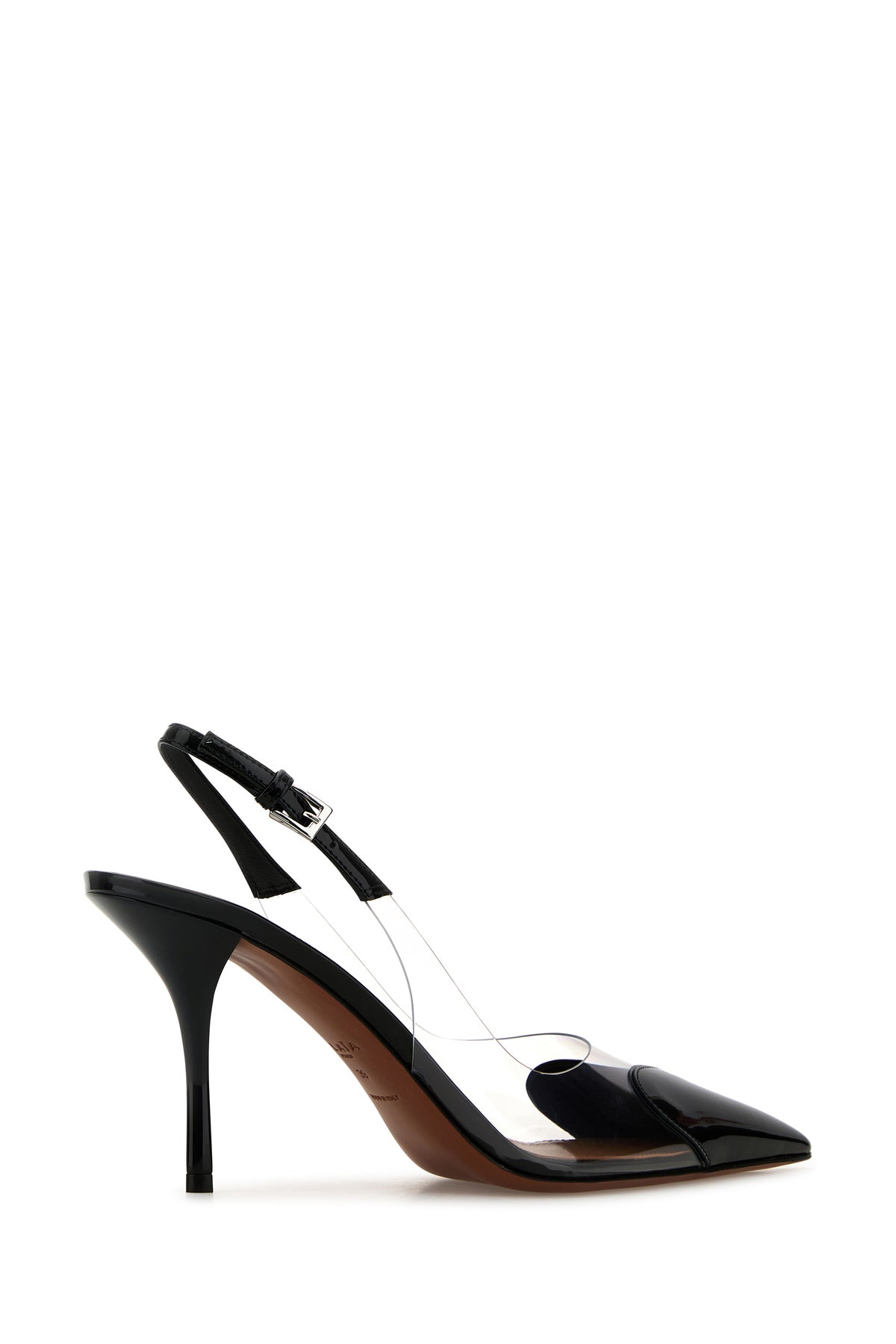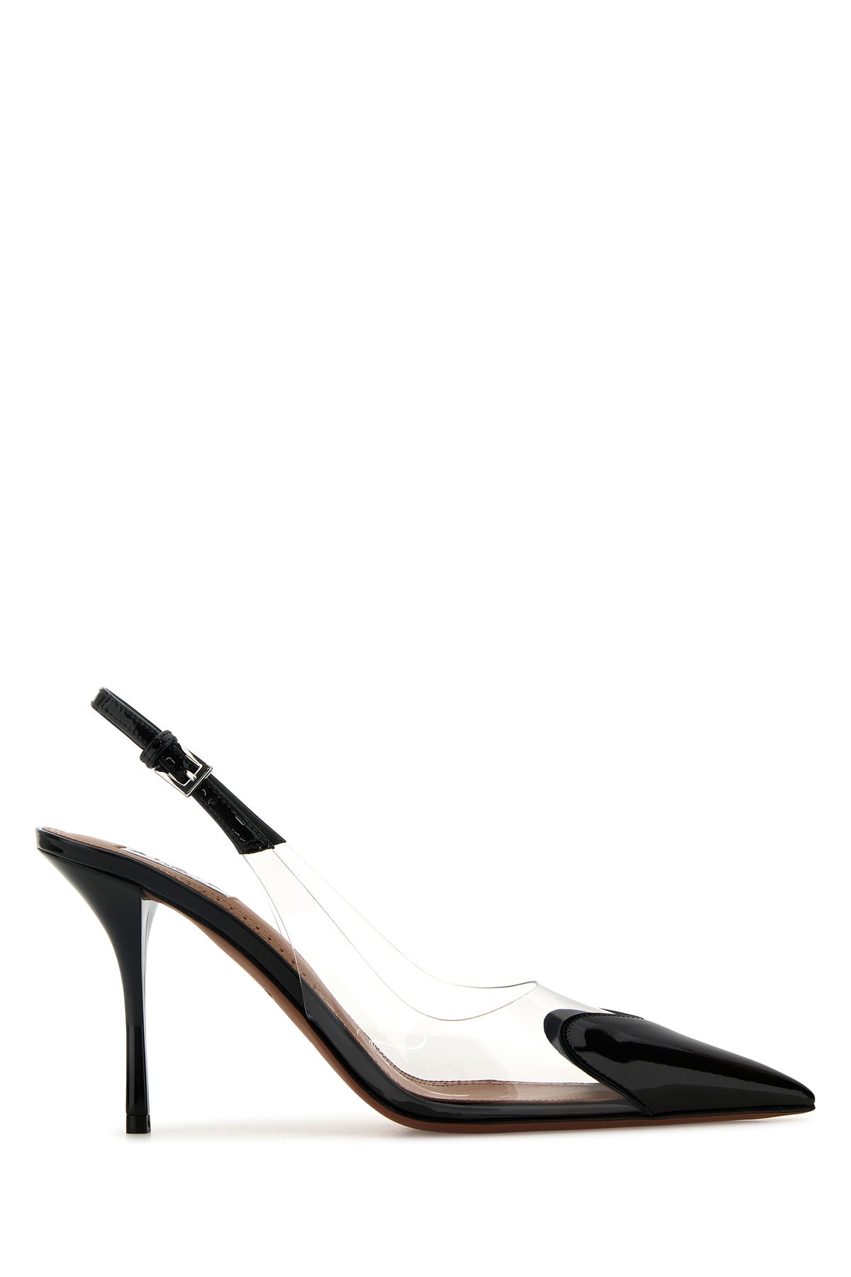 Slingback realized in PVC and patent leather characterized by heart-shaped patch on the toe.