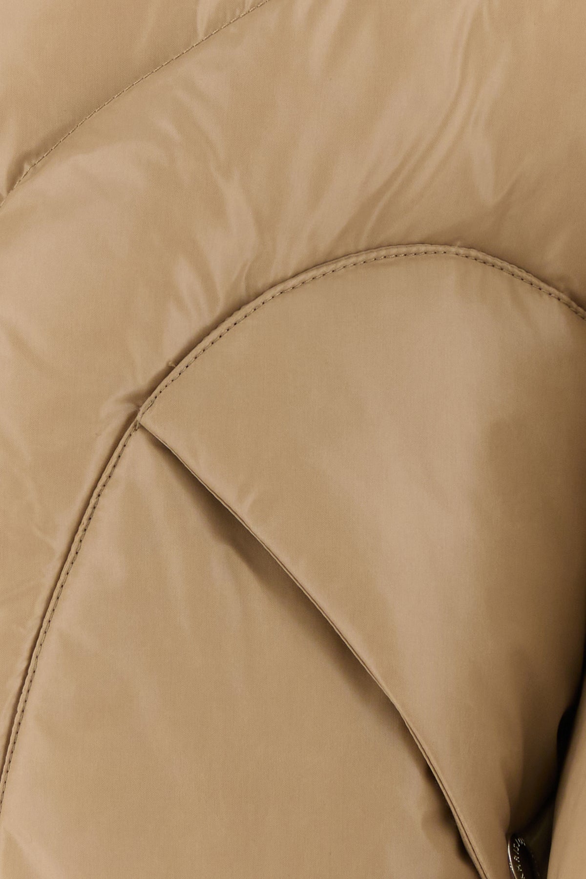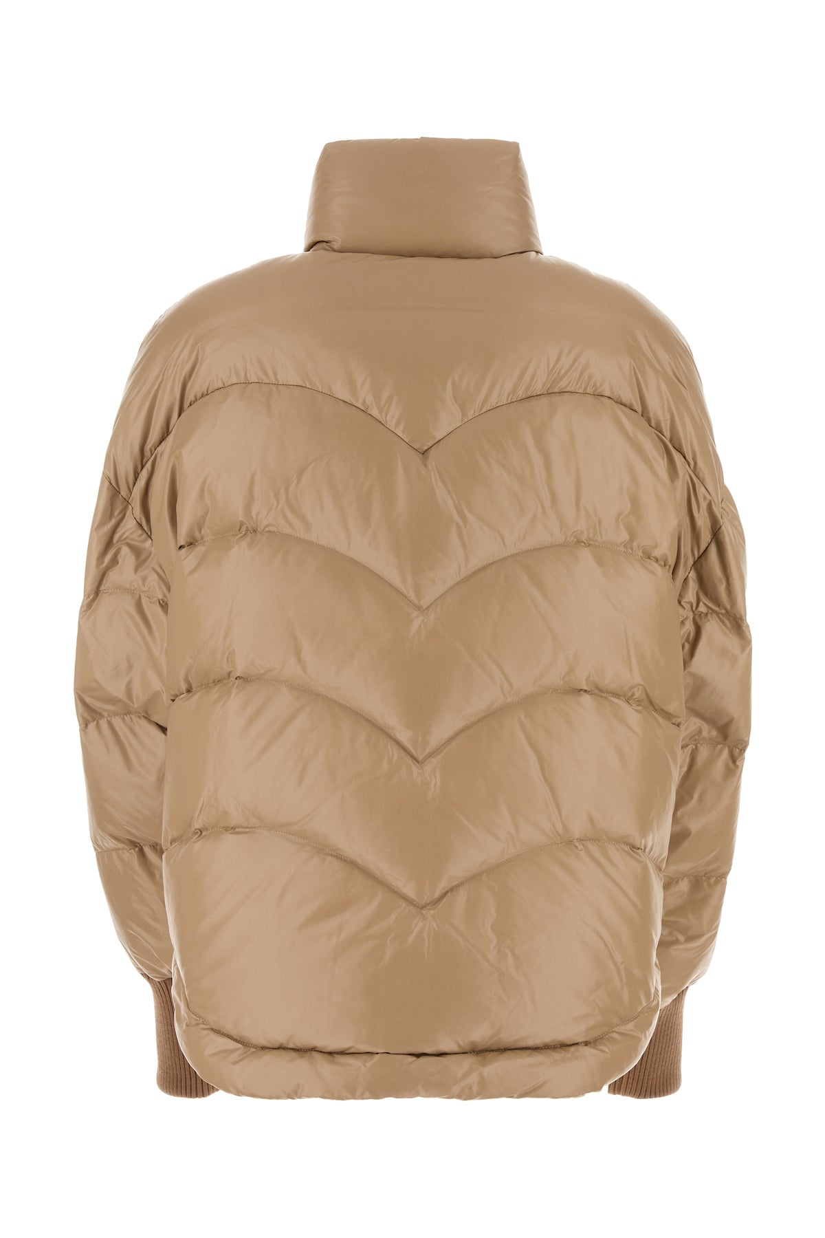 Down jacket realized in quilted nylon characterized by funnel neck.