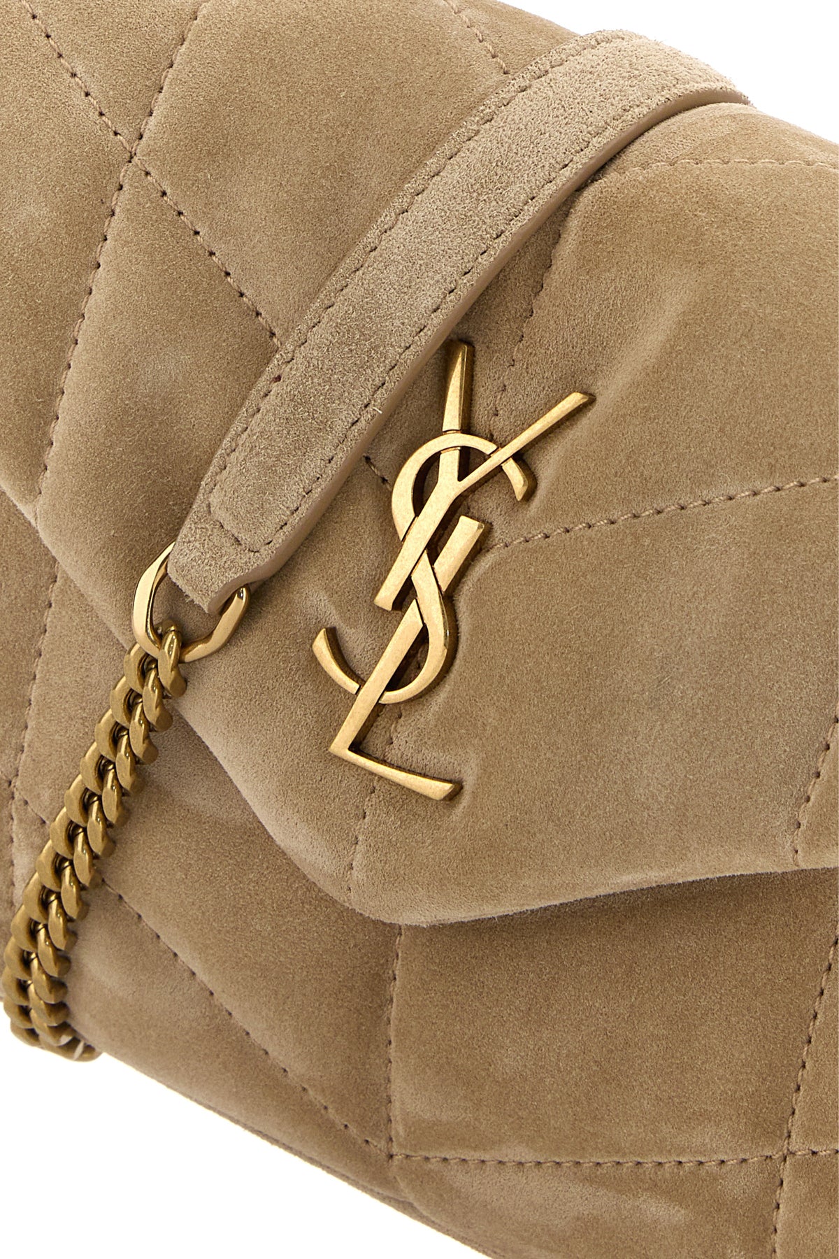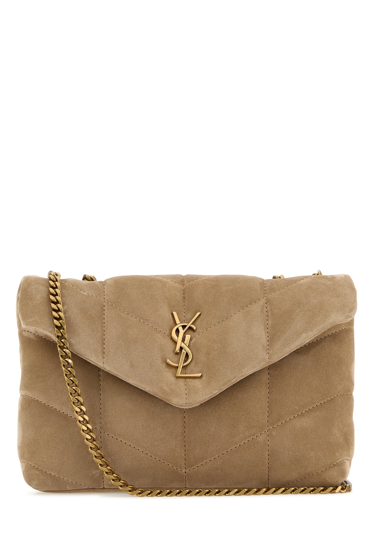 Crossbody bag realized in suede enriched by iconic metal Monogram detail at the front.