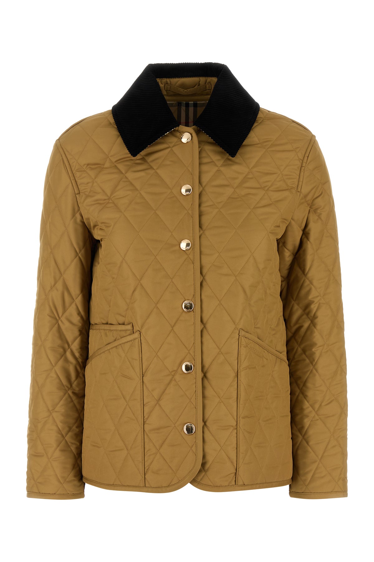 Jacket realized in quilted polyester characterized by tonal logoed embroidery at the front.