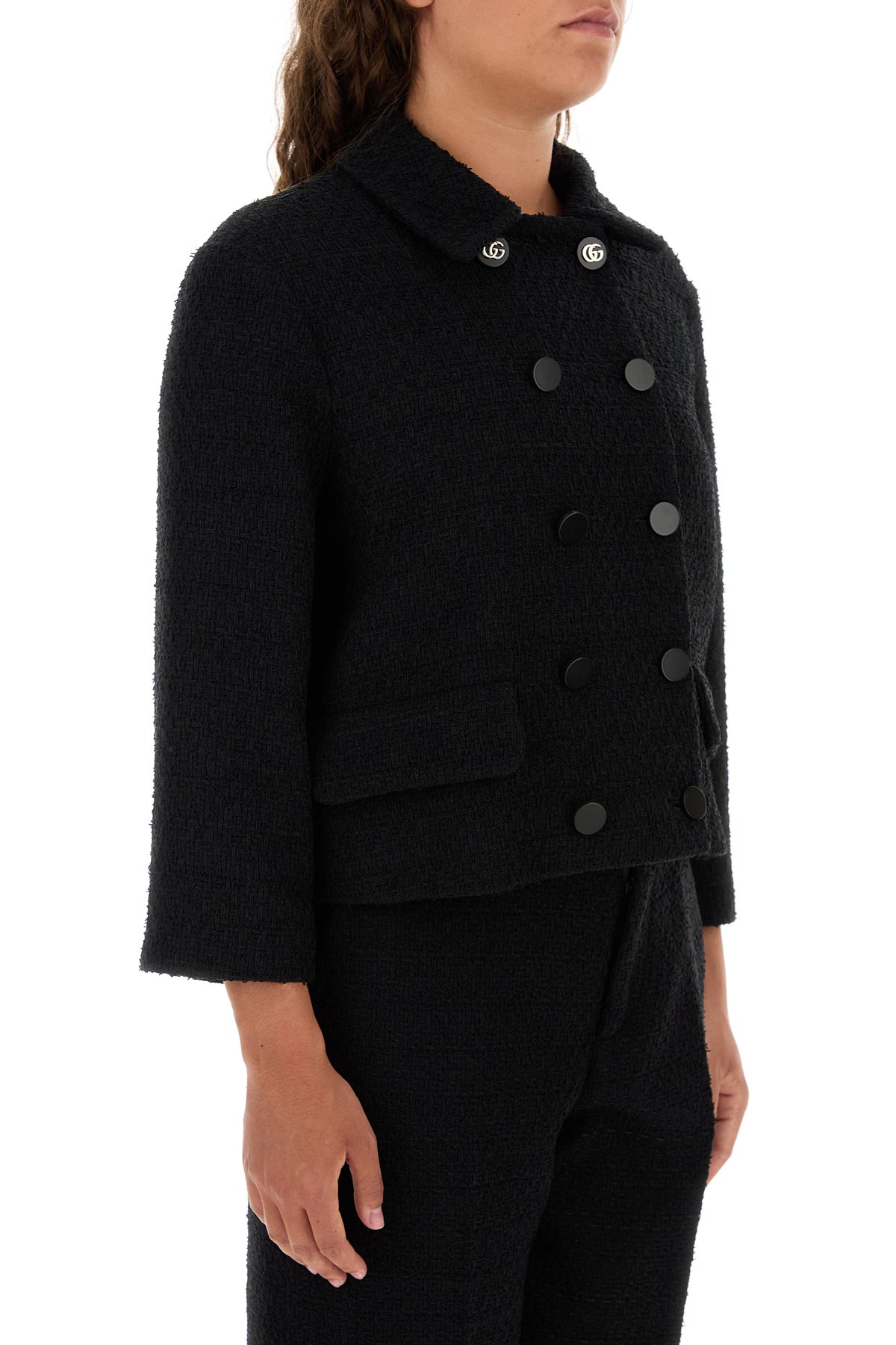 Blazer realized in boucle characterized by collar.