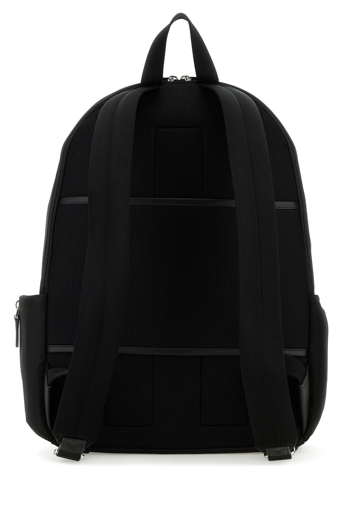 Backpack realized in canvas with leather insert at the front enriched by metal lettering logo at the front.