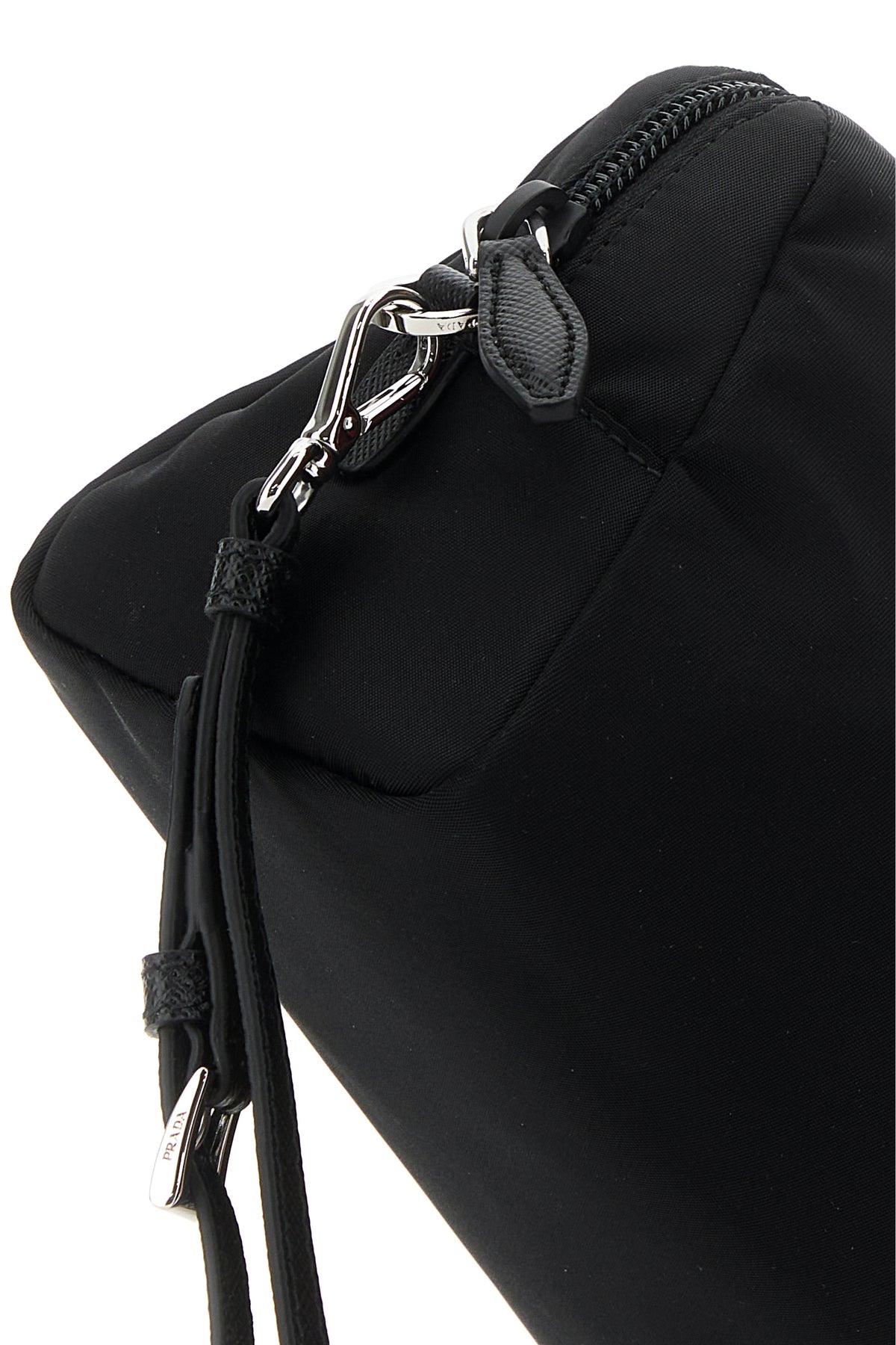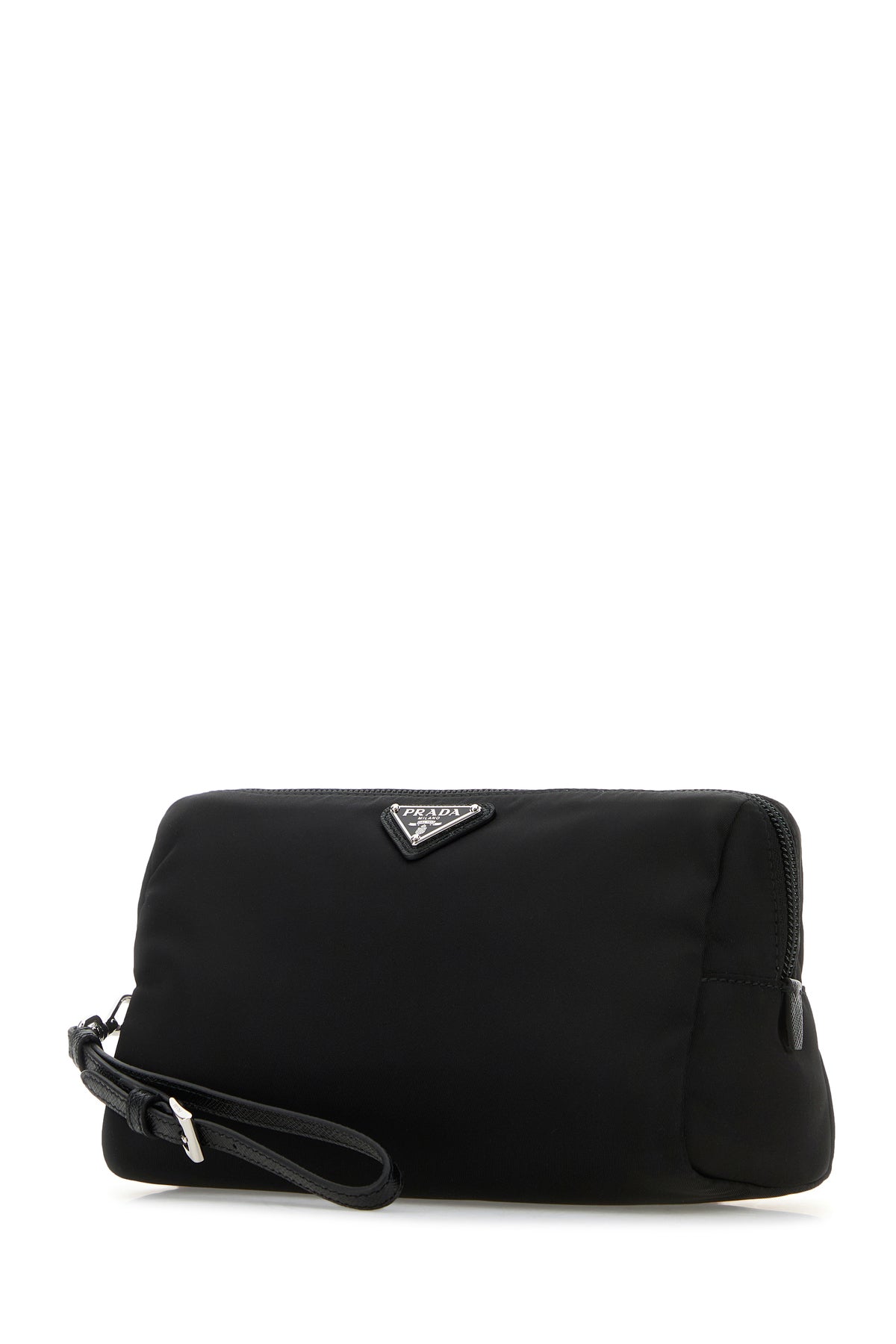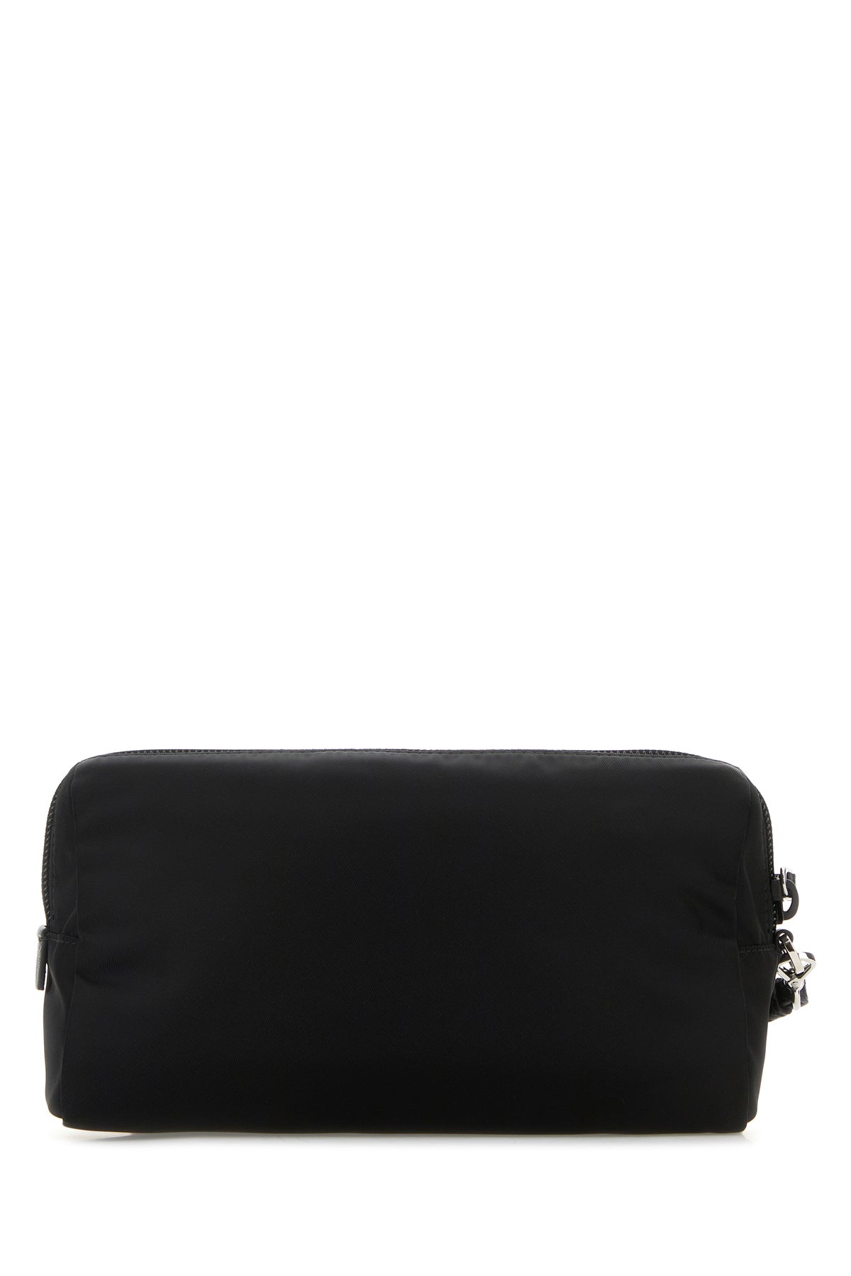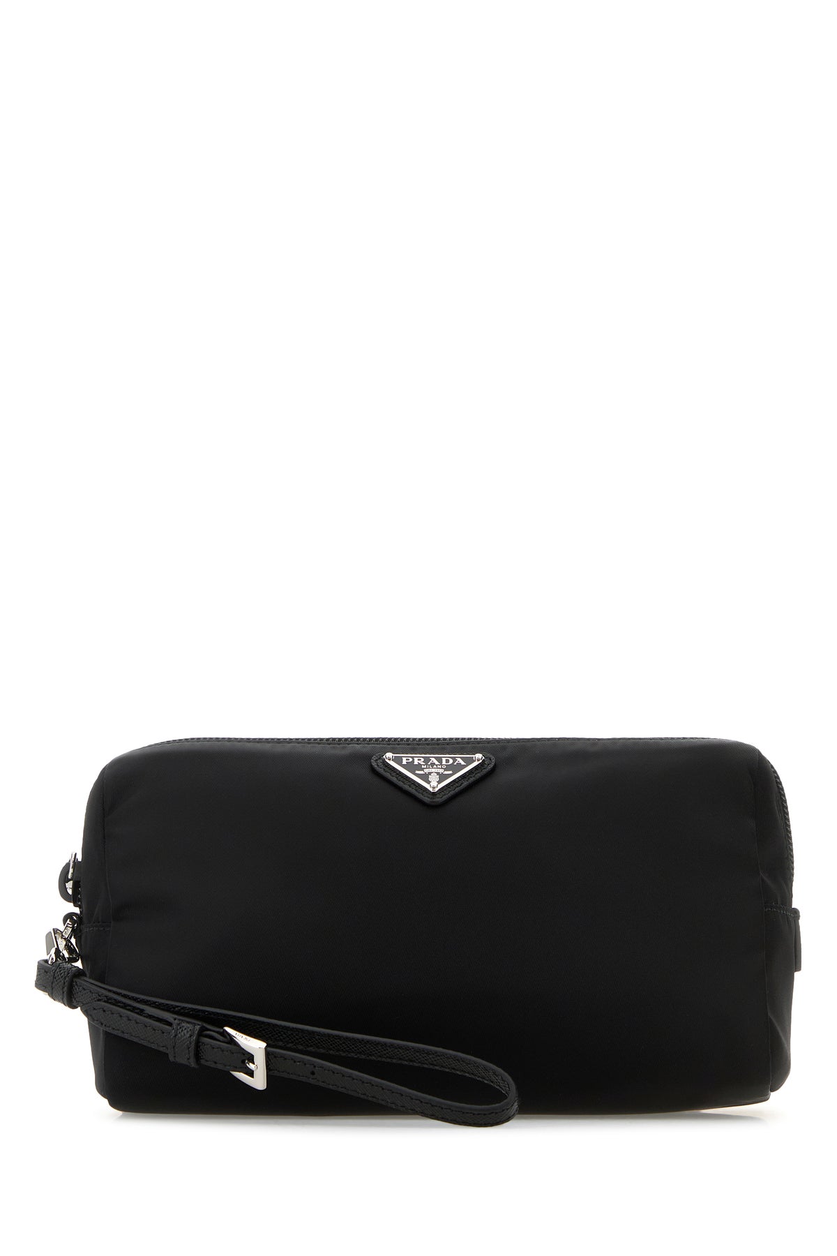 Beauty case realized in canvas enriched by iconic logoed metal triangle at the front.