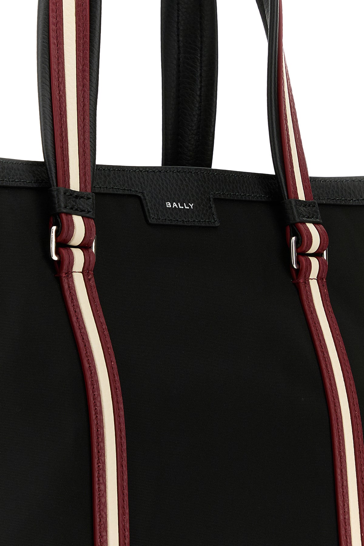 Shopping bag realized in canvas with leather inserts on the trimmings characterized by laminated printed logo at the front.