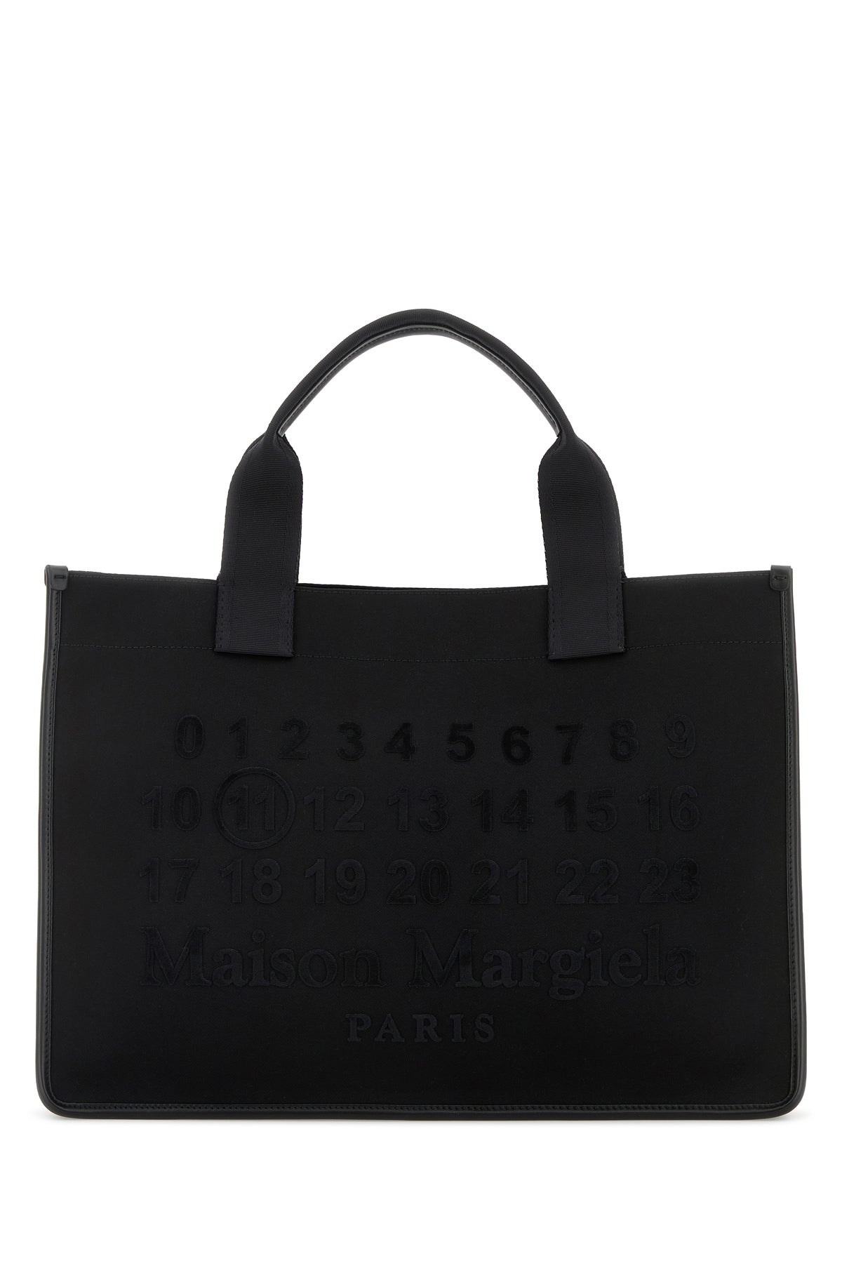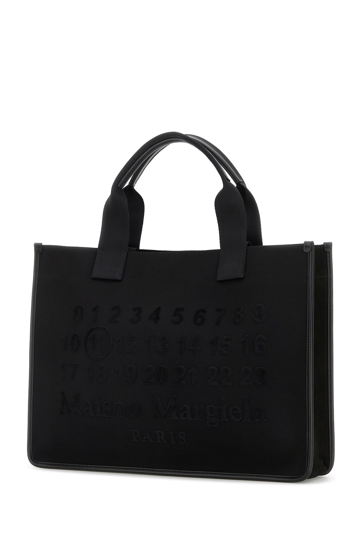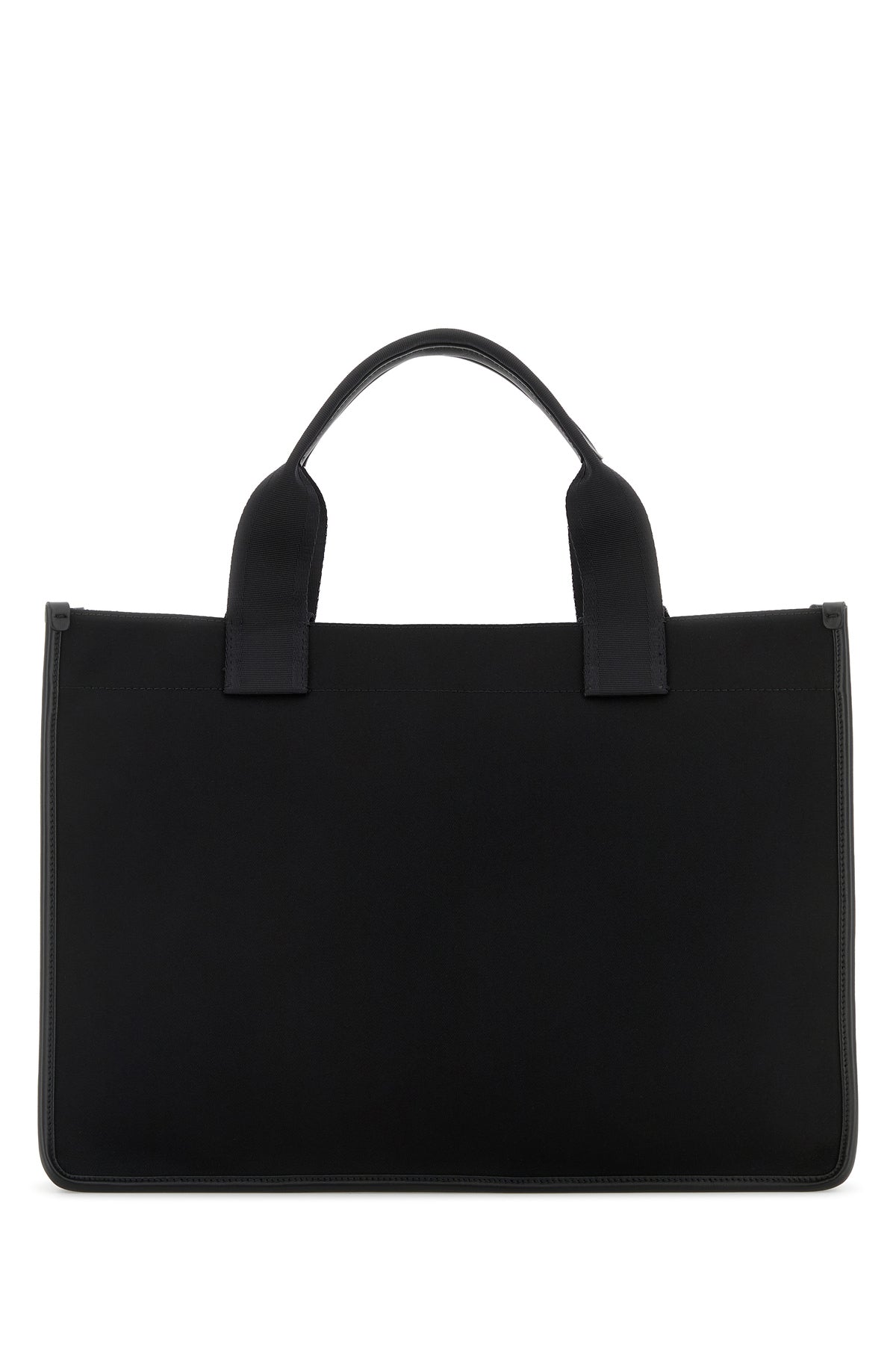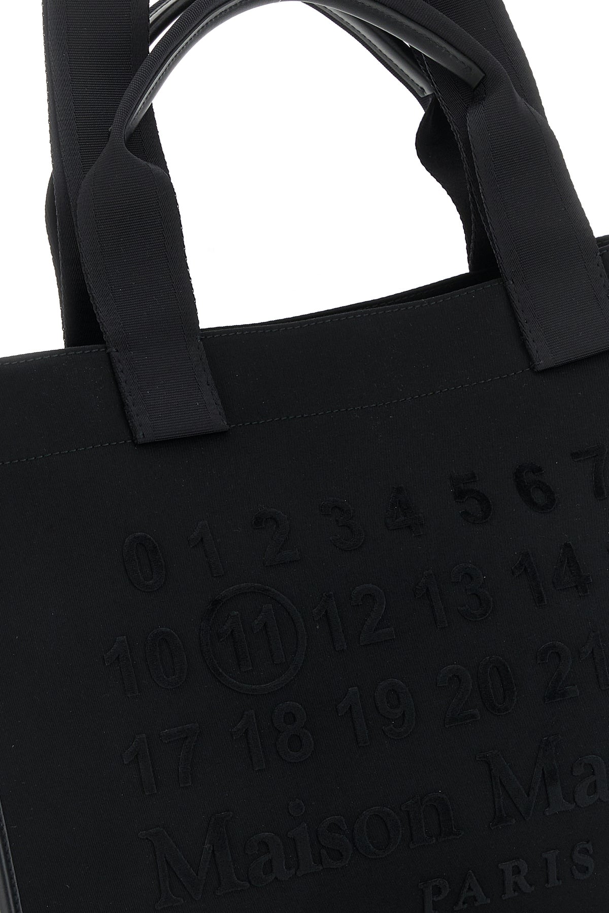 Shopping bag realized in canvas with suede inserts on the sides characterized by flocked print logo at the front.