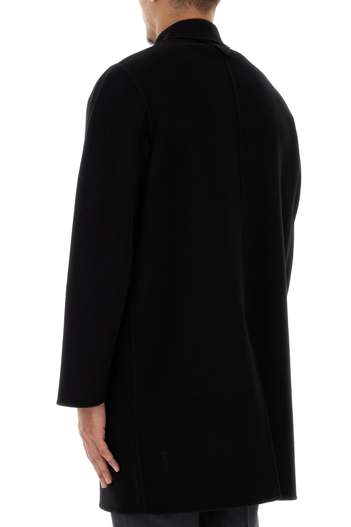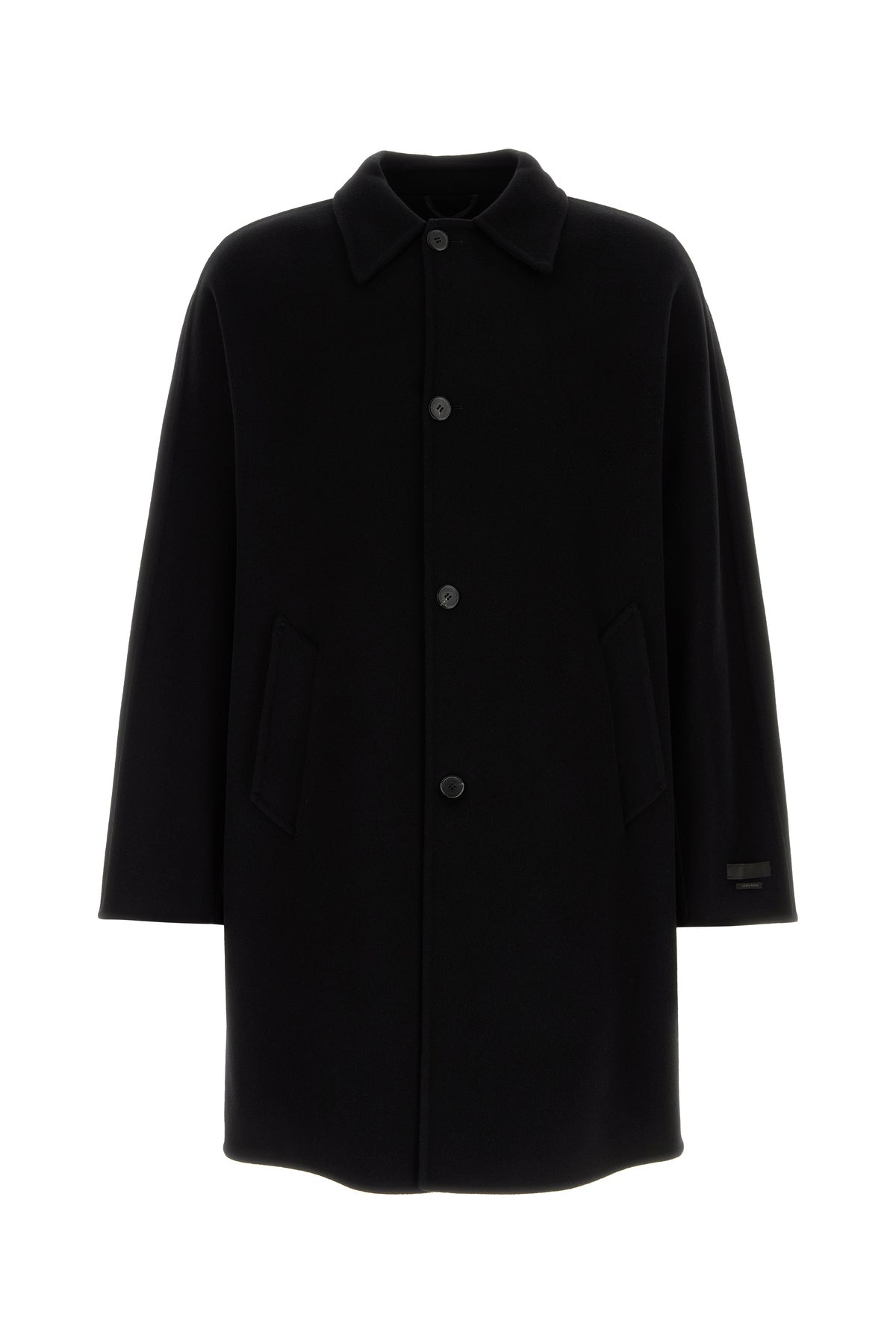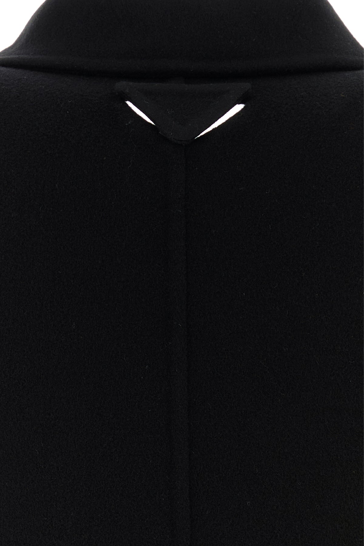 Coat realized in cashmere and virgin wool enriched by iconic tonal fabric triangle at the back.