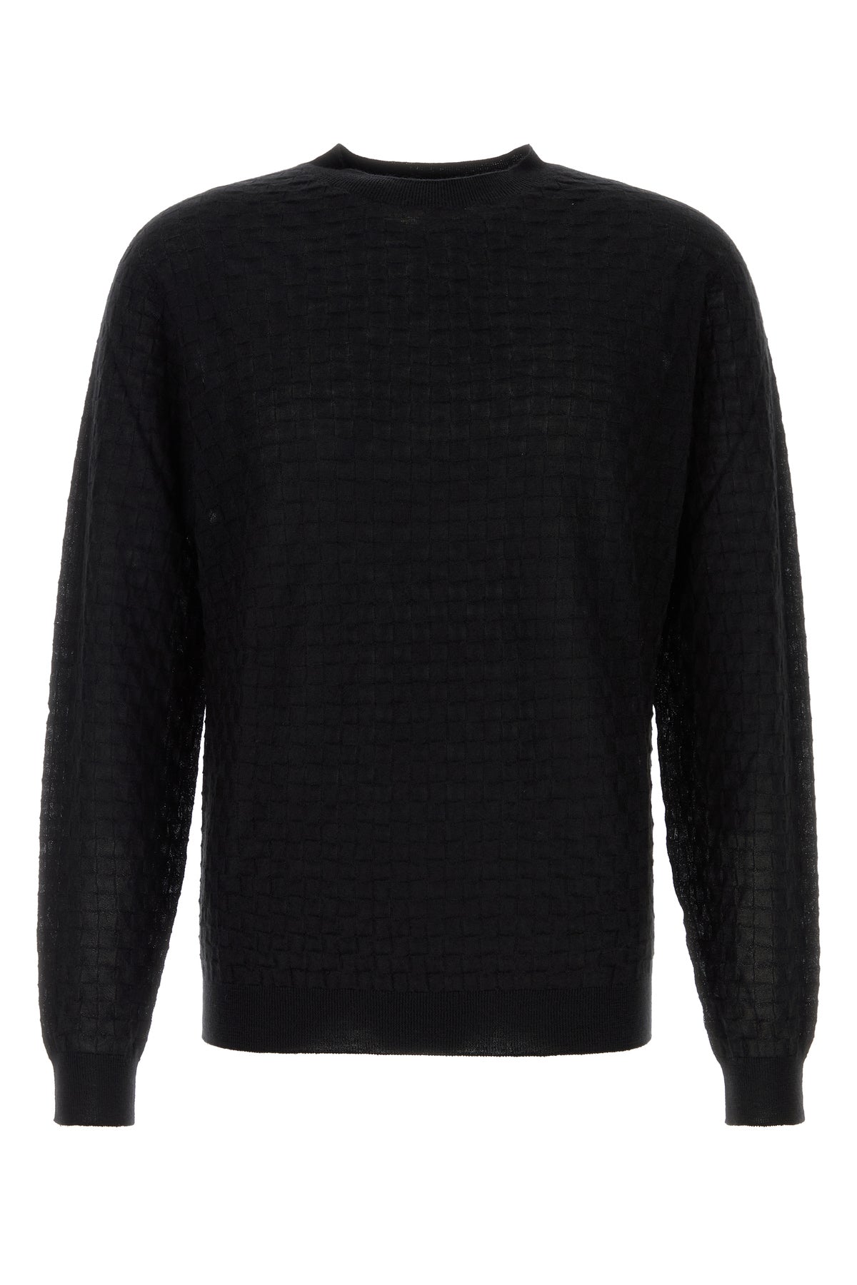 Sweater realized in cashmere and silk characterized by checked embroidery on the entire surface.