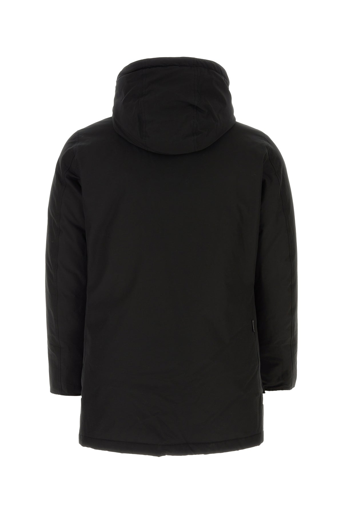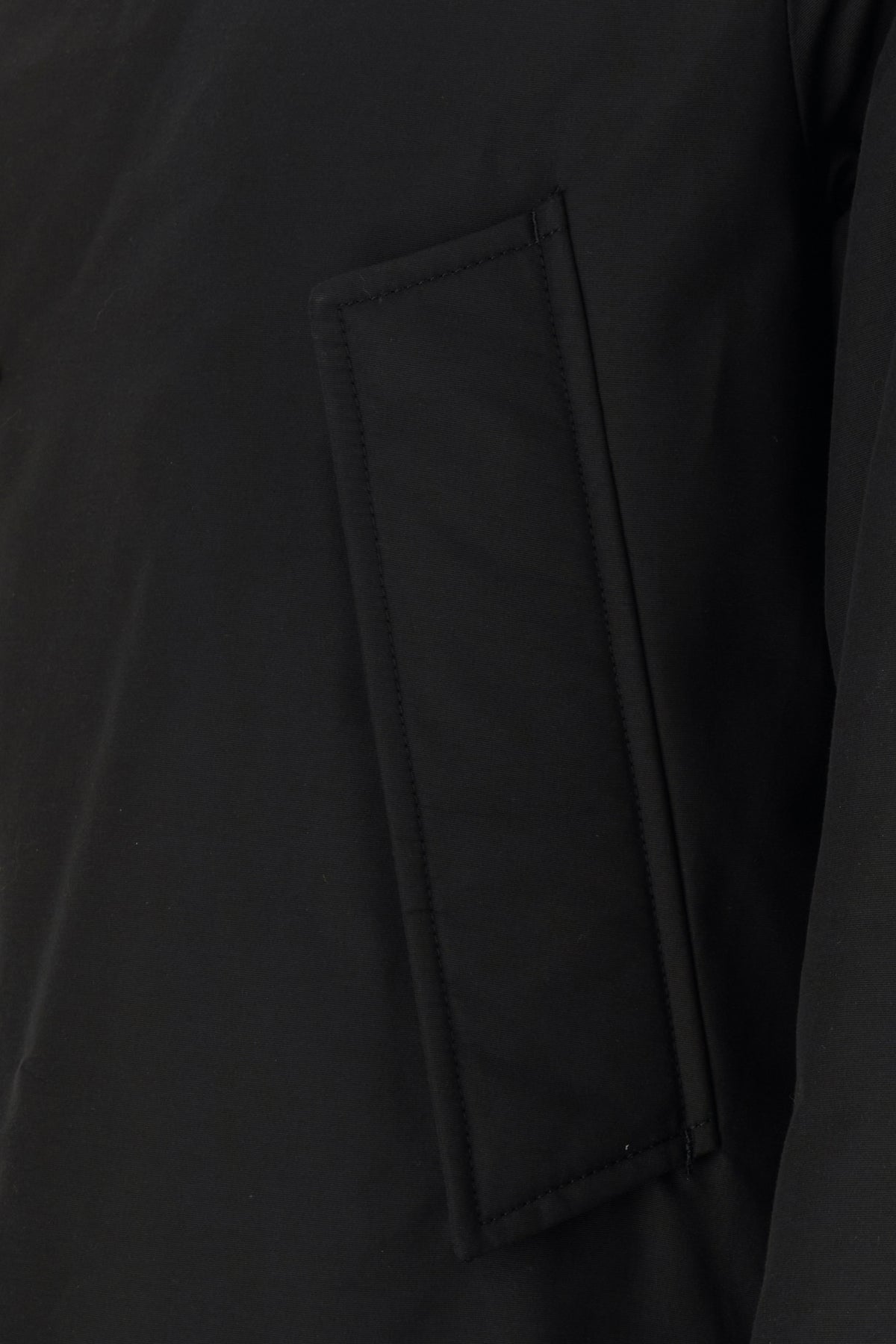 Down jacket realized in cotton blend characterized by logoed velcro strap at the front.