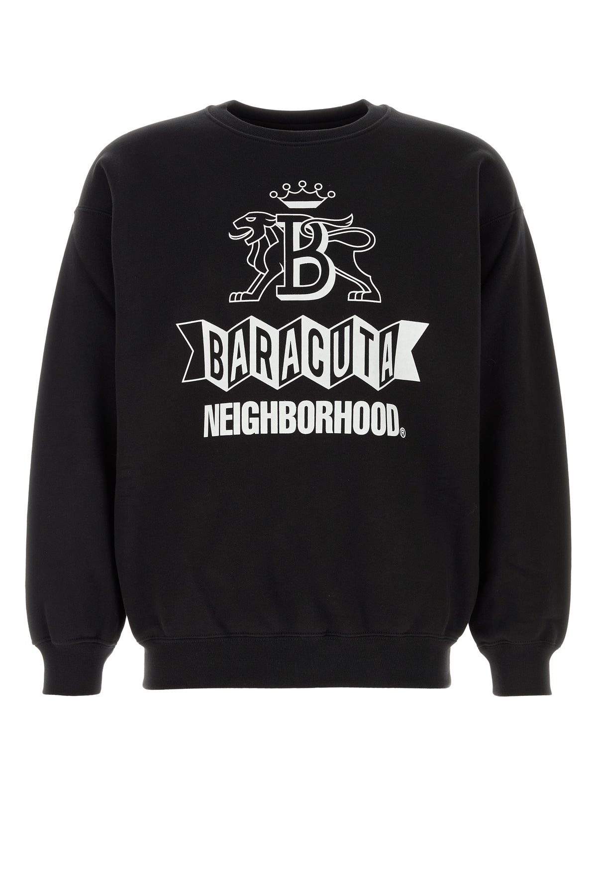 - Ribbed crew-neck, cuffs and hemline