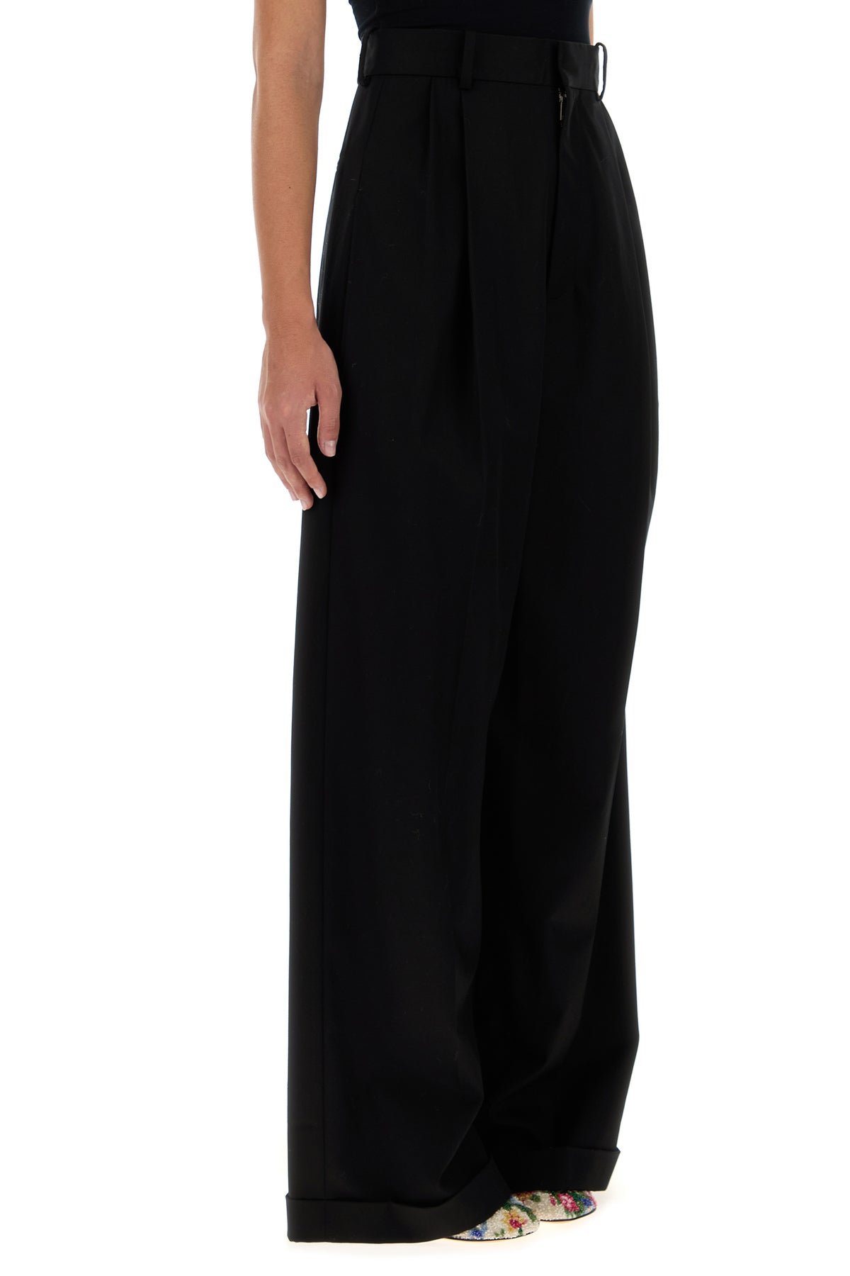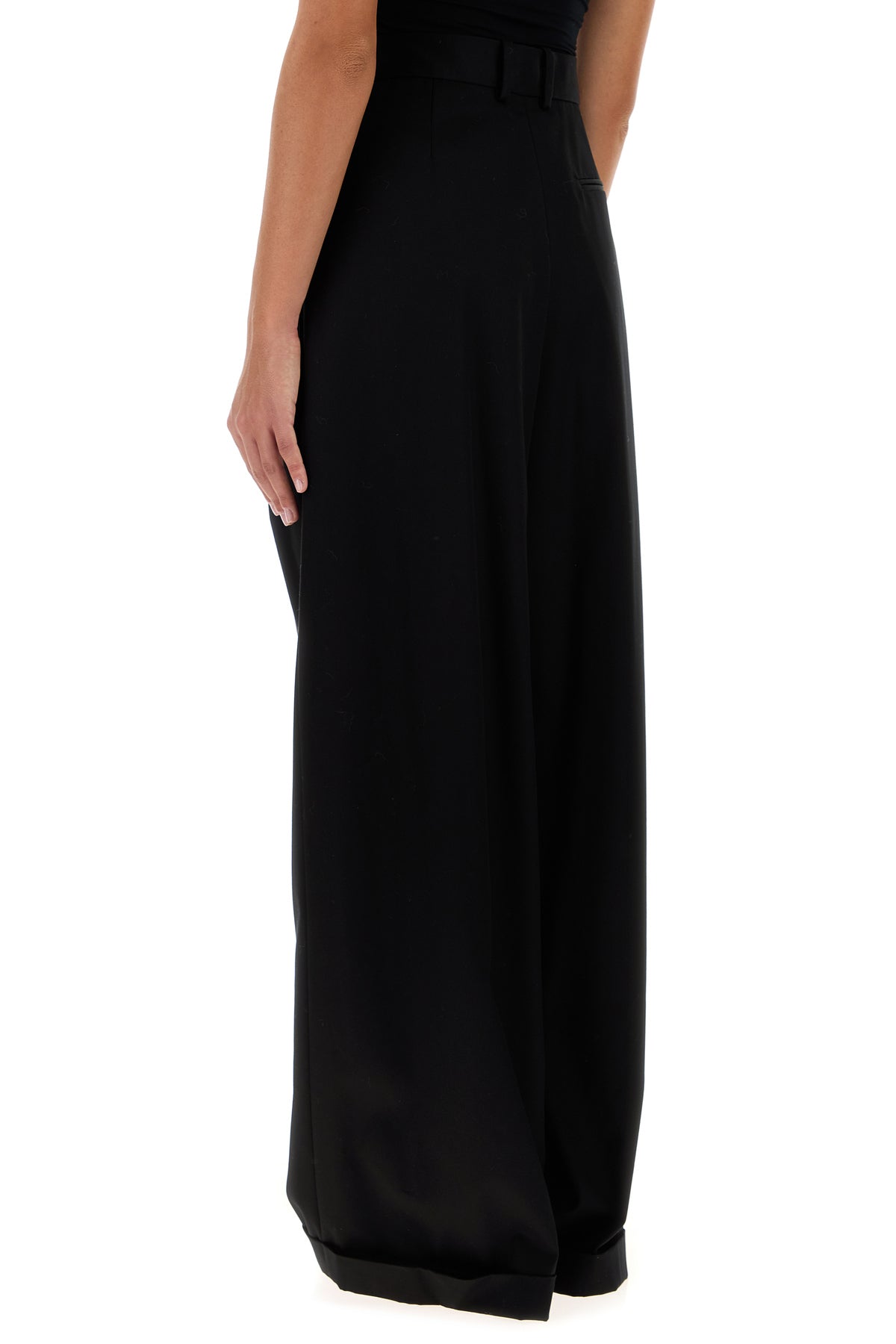 Black cotton blend wide-leg pant
