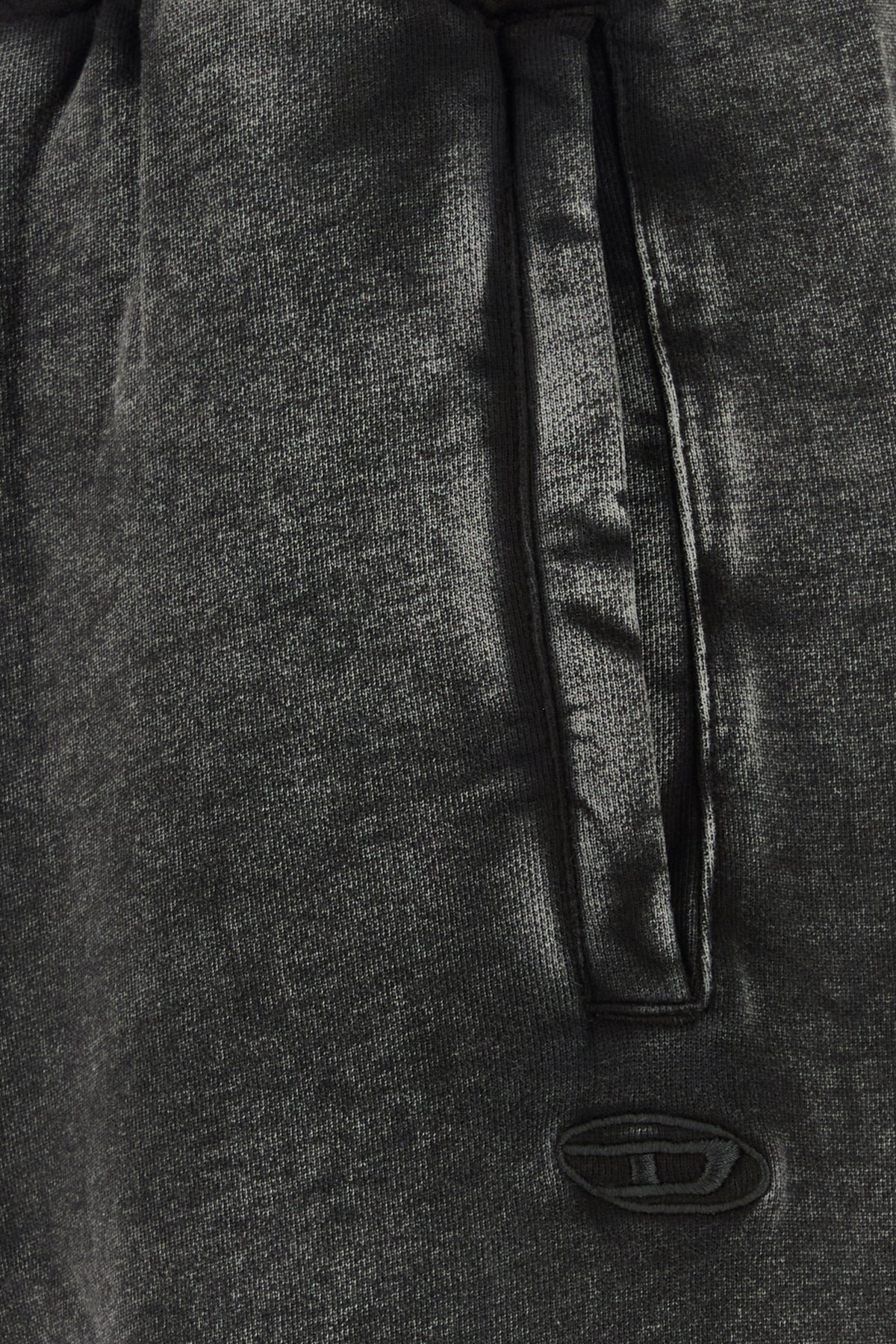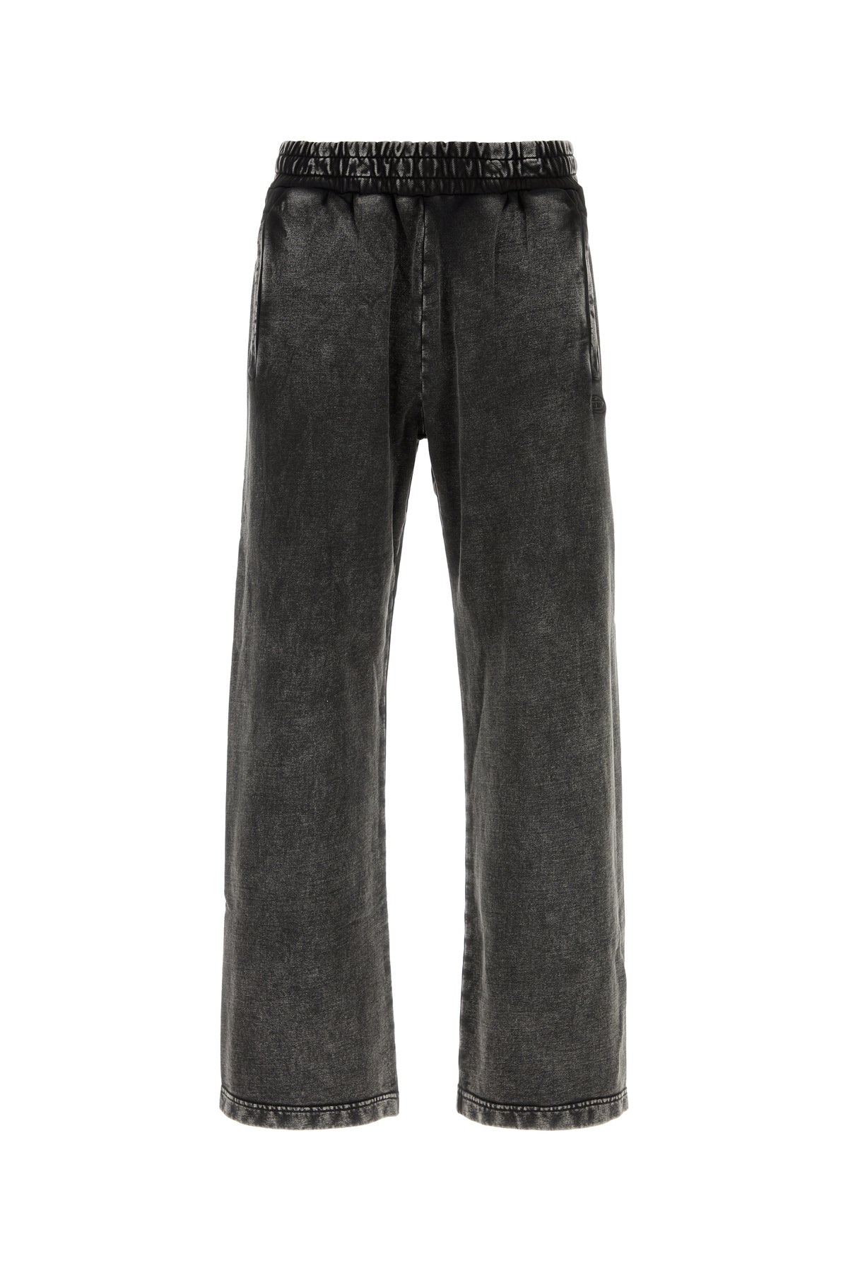 Joggers realized in stonewashed effect pure cotton characterized by D embroidery at the front.