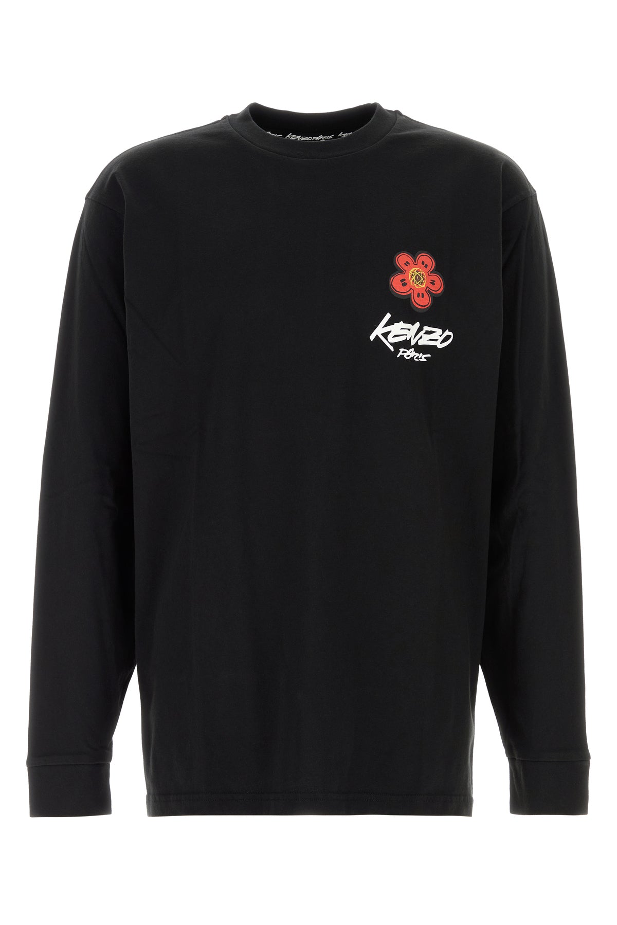 Long-sleeves t-shirt realized in pure cotton characterized by KENZO Futura print on the chest enriched by contrasting logoed label at the back.