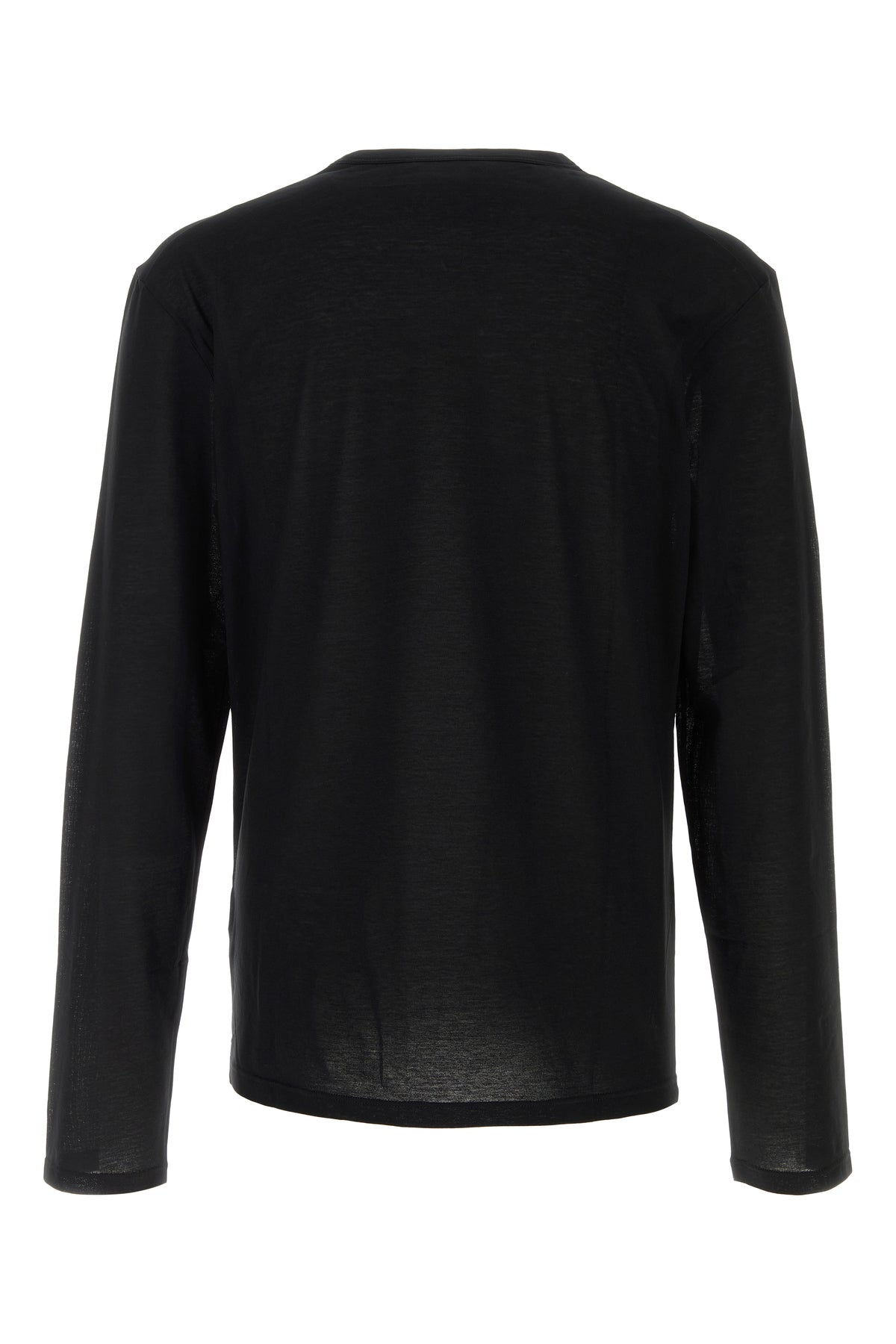 Long-sleeves t-shirt realized in pure cotton characterized by contrasting printed logo on the hemline.