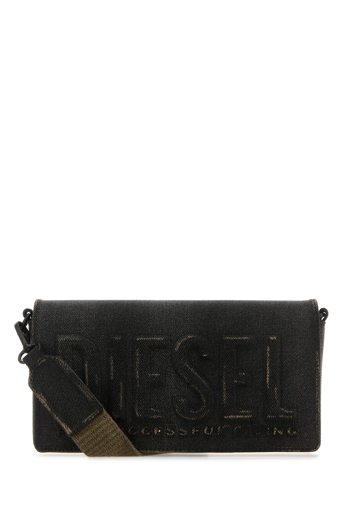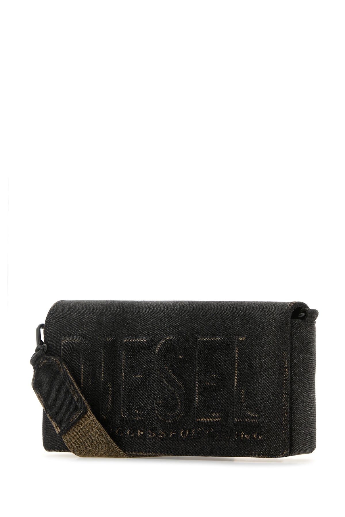 Crossbody bag realized in vintage-effect stonewashed denim characterized by tonal logo in relief at the front.