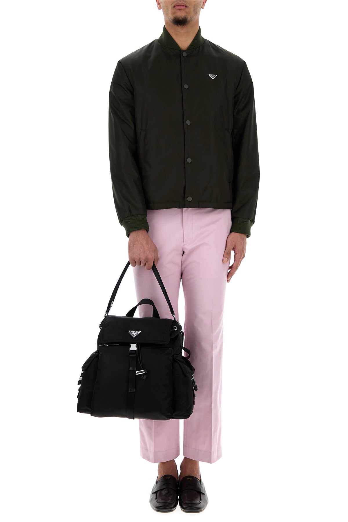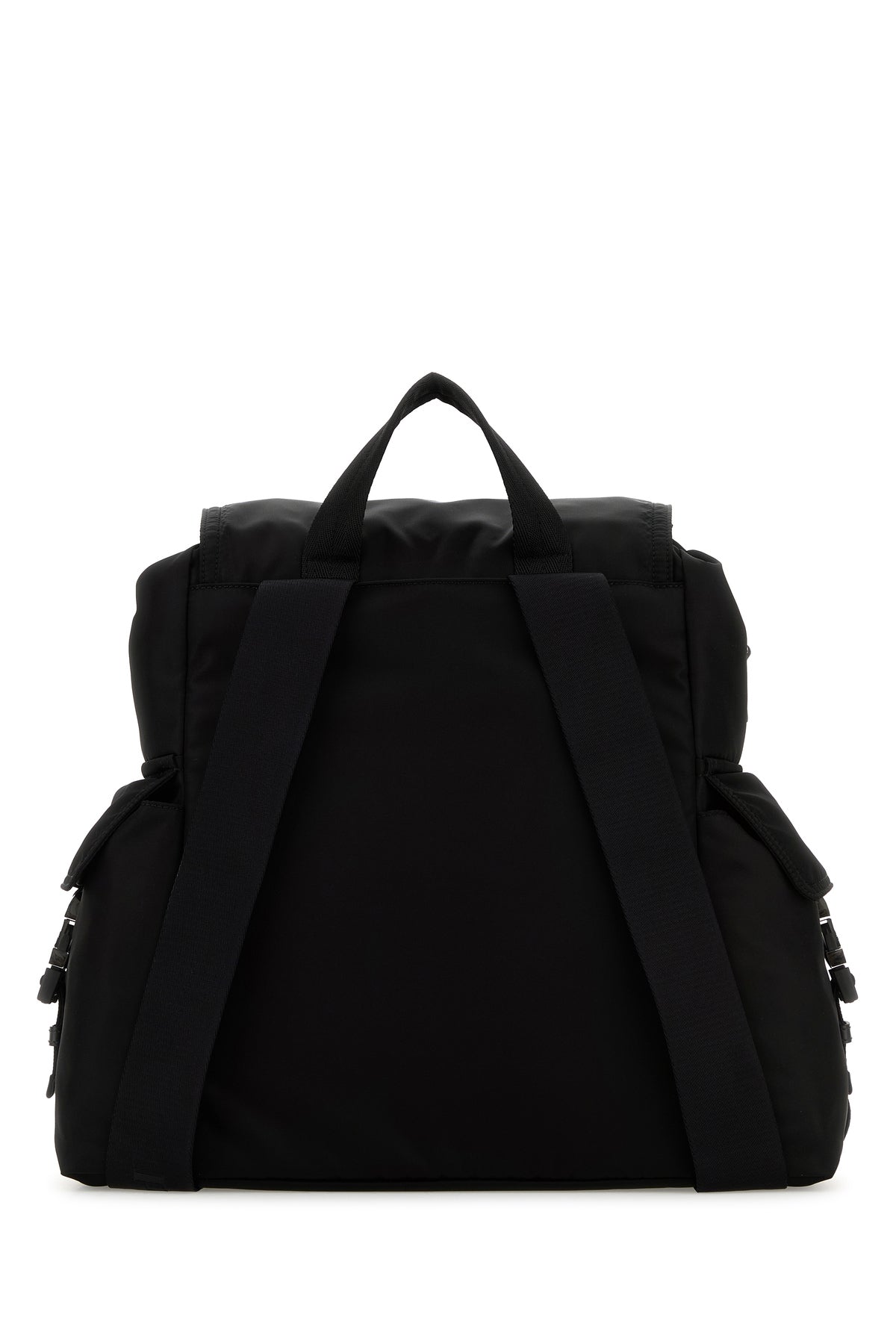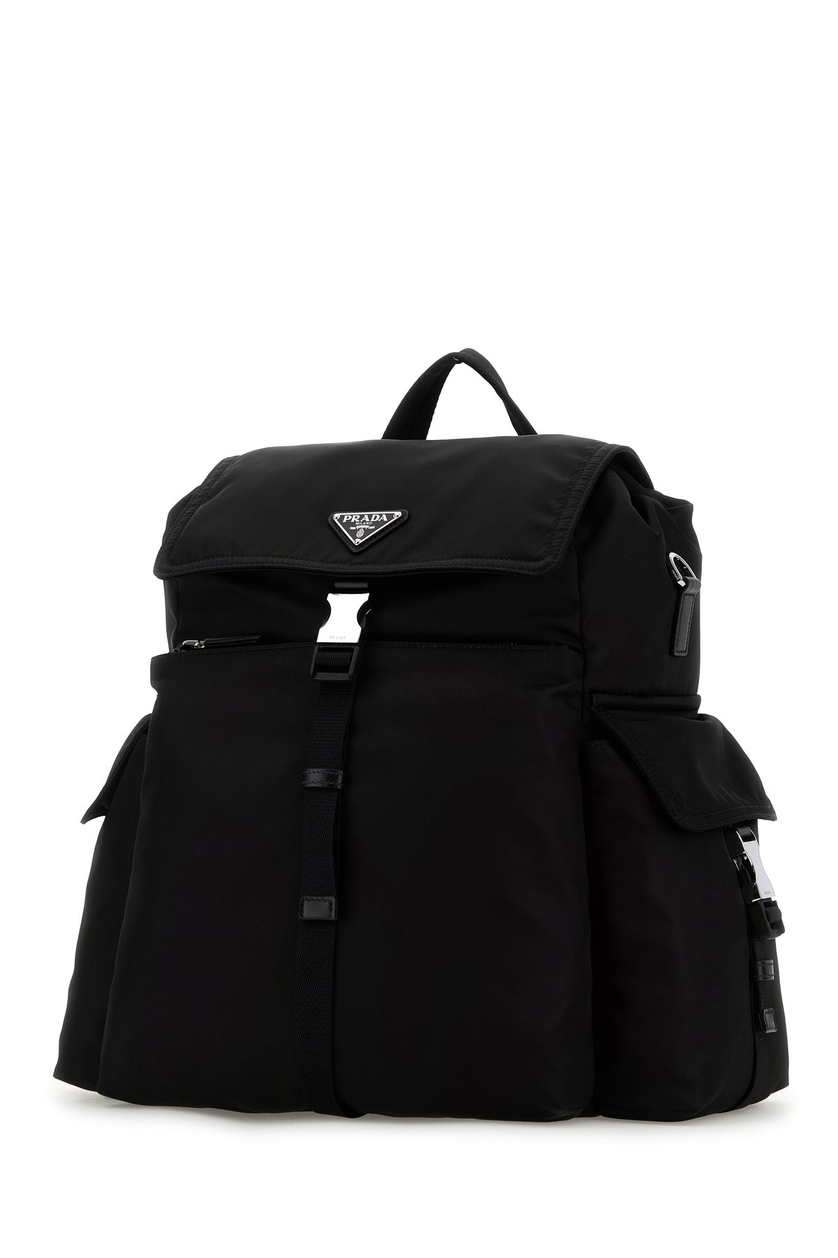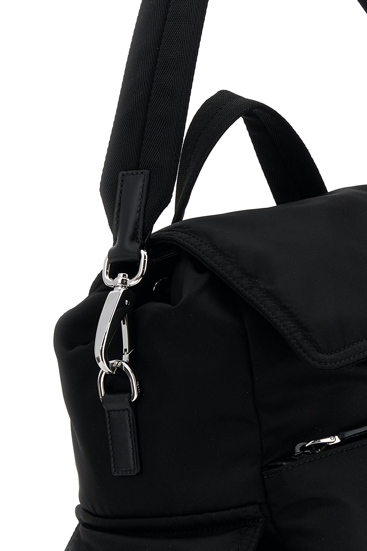 Backpack realized in fabric enriched by iconic logoed metal triangle at the front.