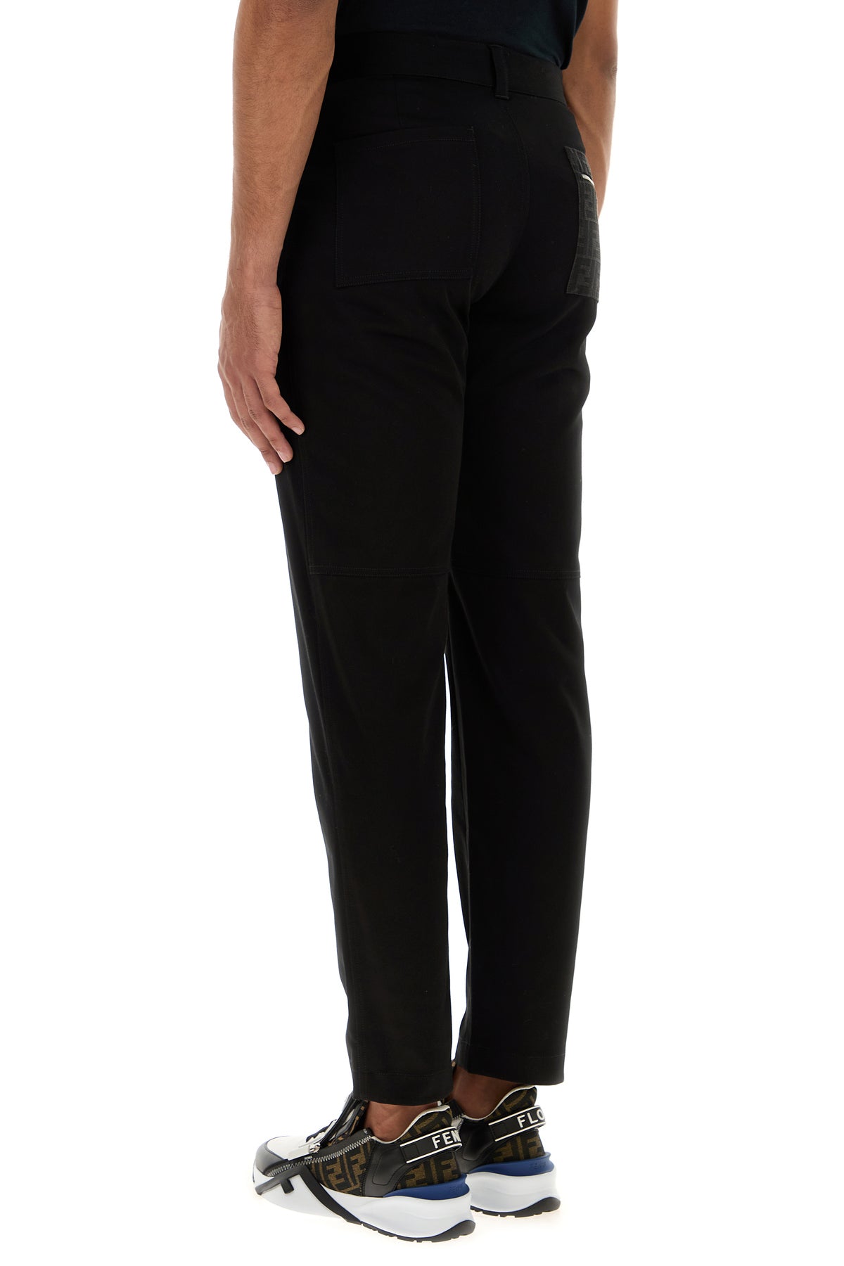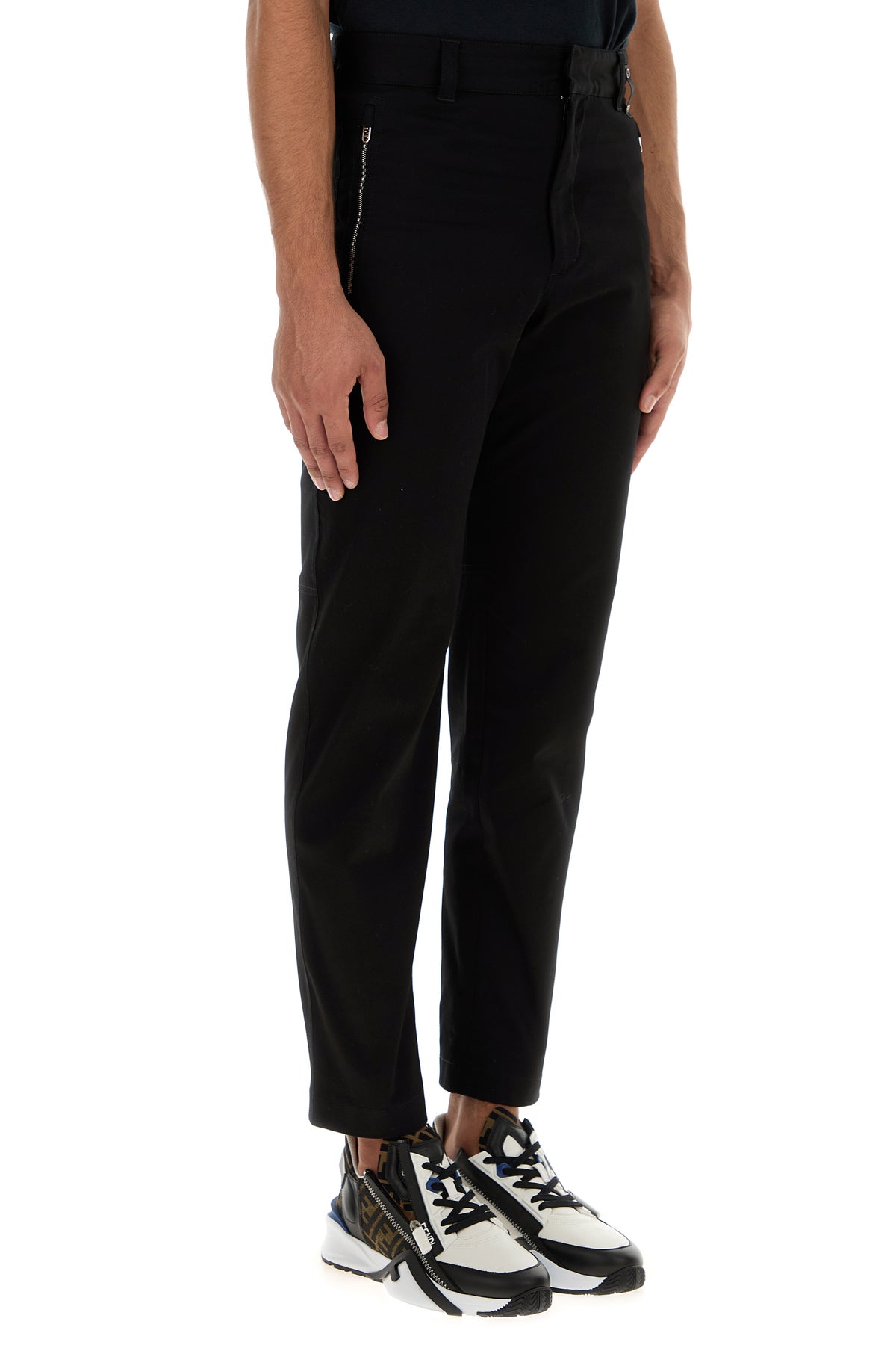 Cigarette pant realized in stretch cotton gabardine characterized by FF motif zip pocket at the back.