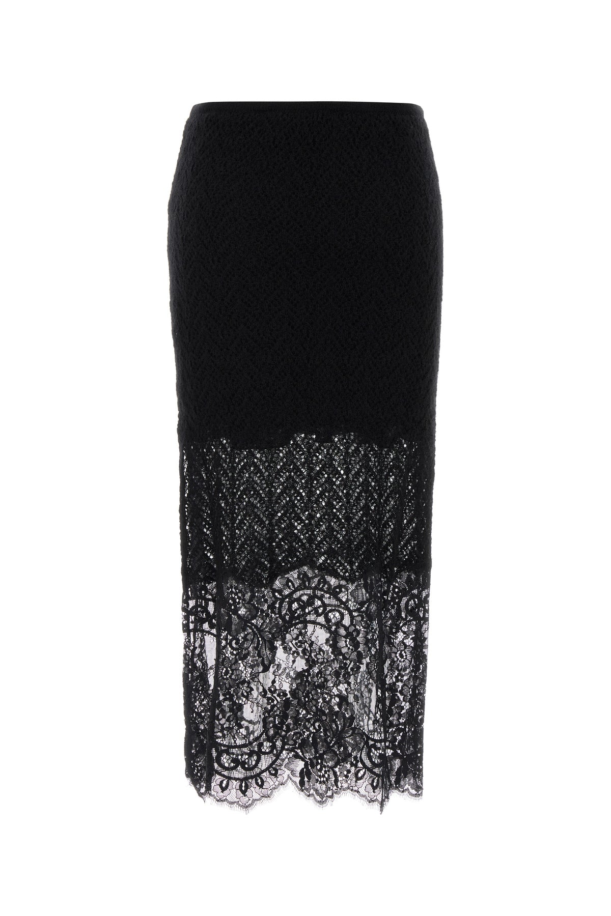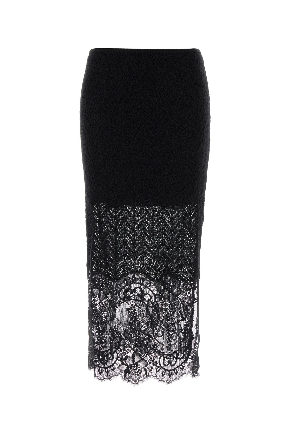 Midi-length skirt realized in knit with tonal lace insert on the hemline.