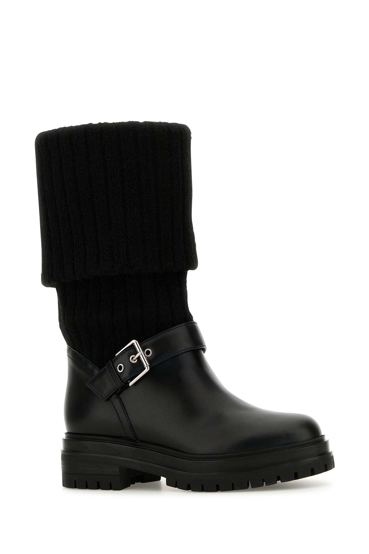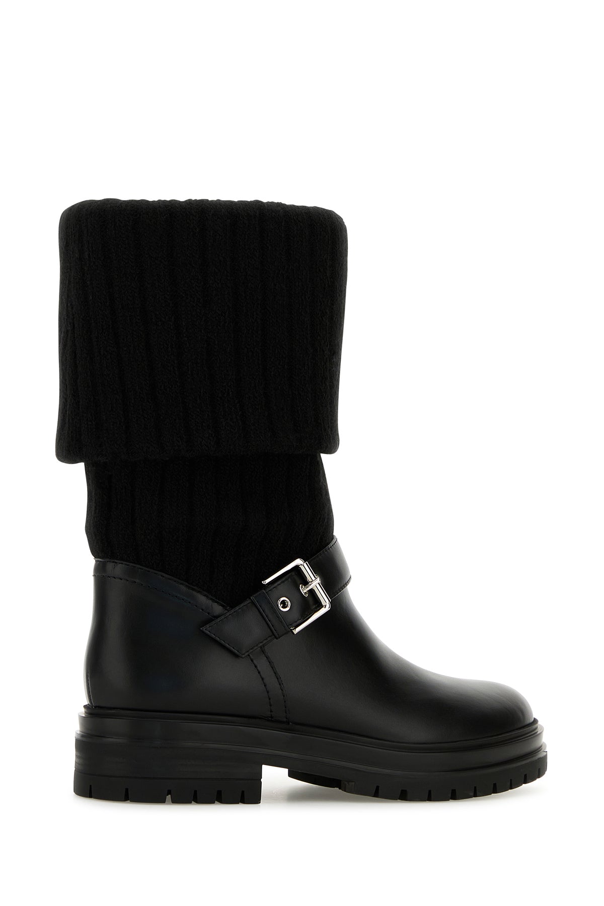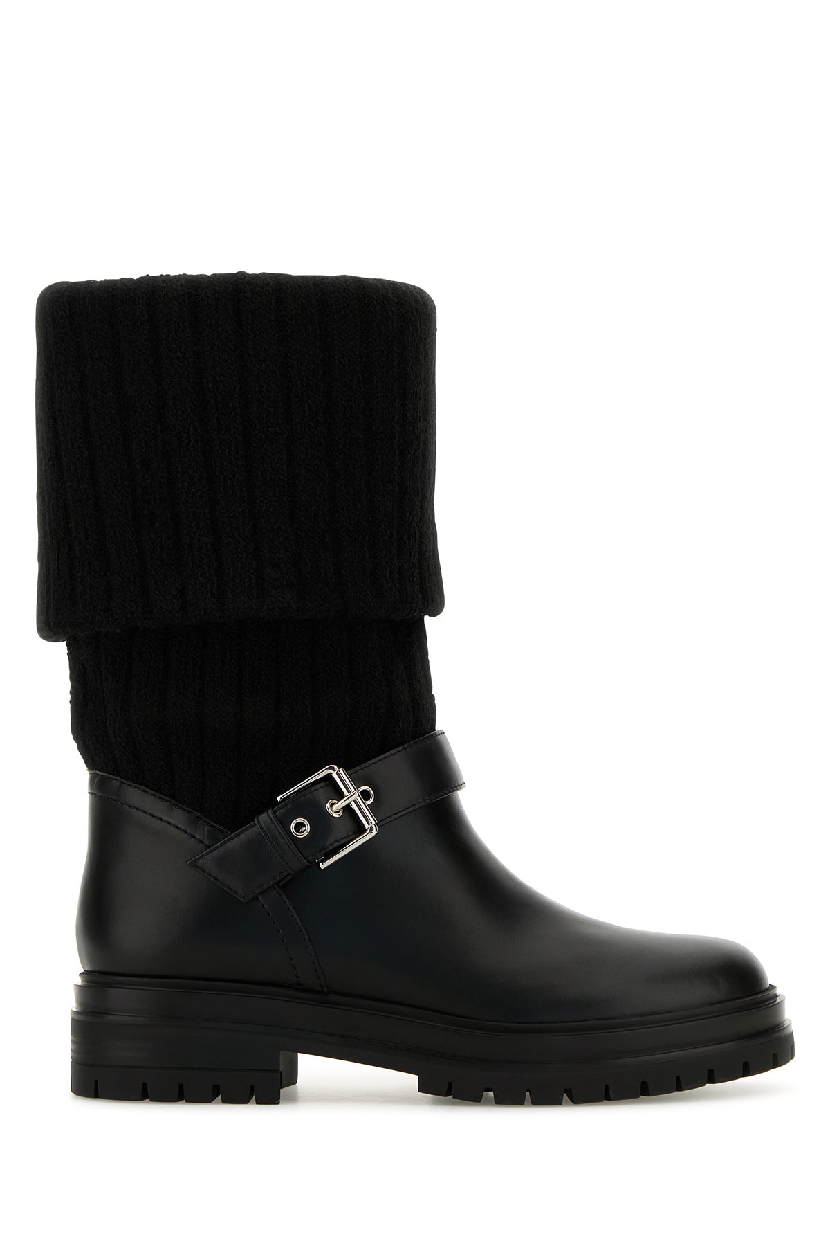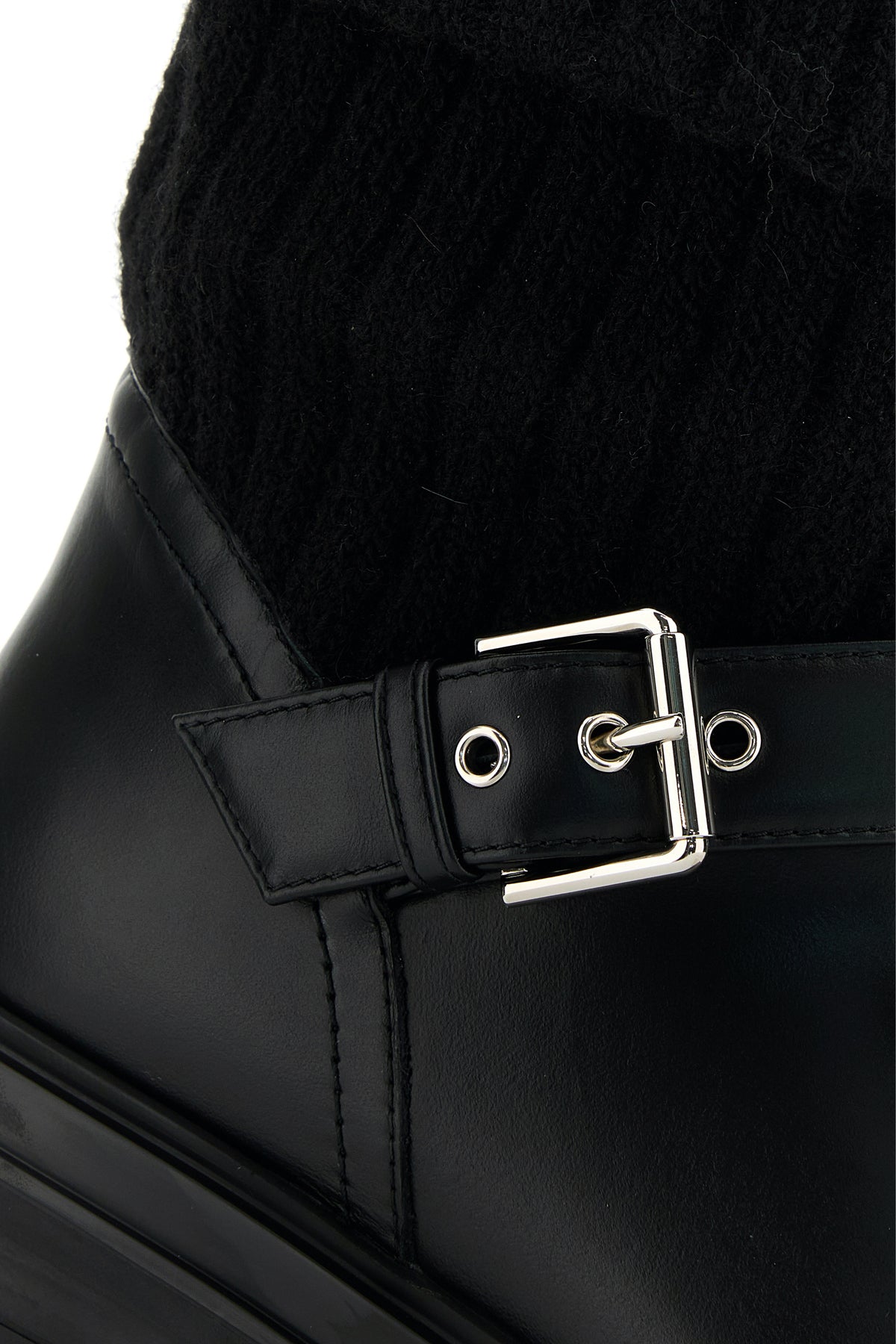 Ankle boots realized in smooth leather and ribbed fabric enriched by adjustable strap with metal buckle on the side.