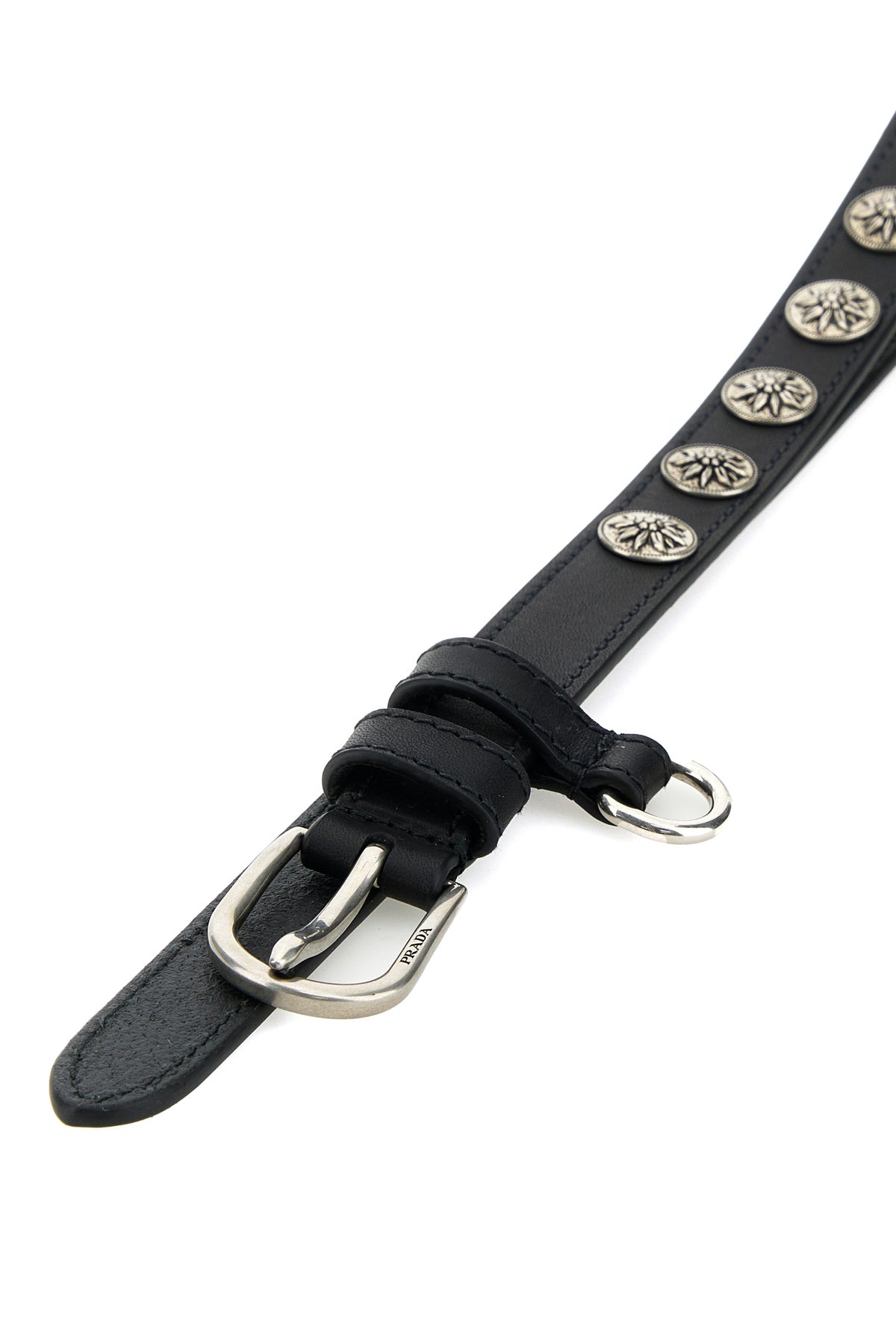 Belt realized in smooth leather enriched by peculiar metal studs.