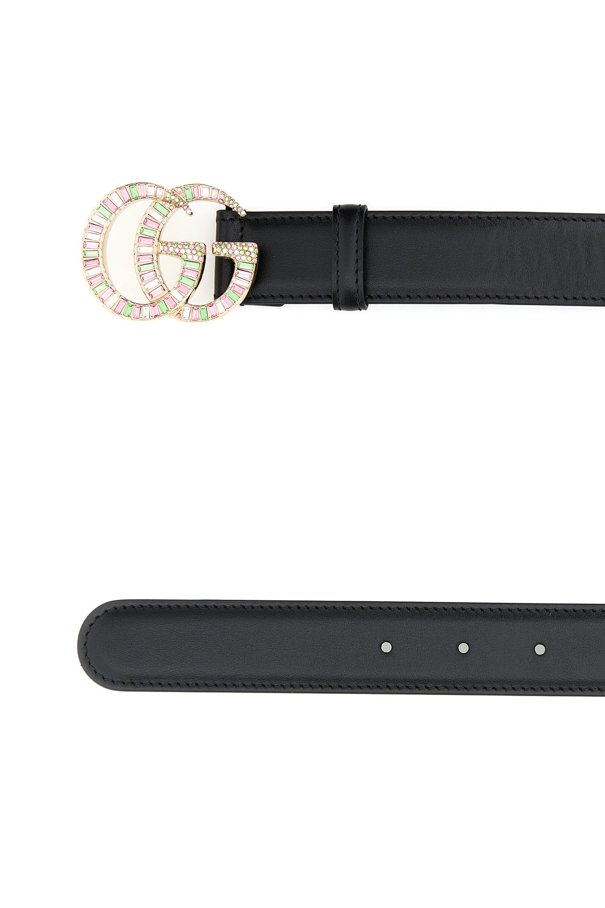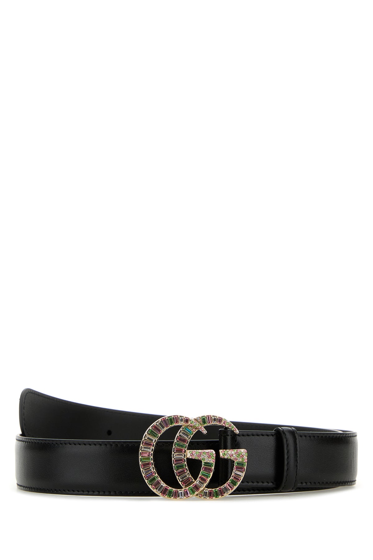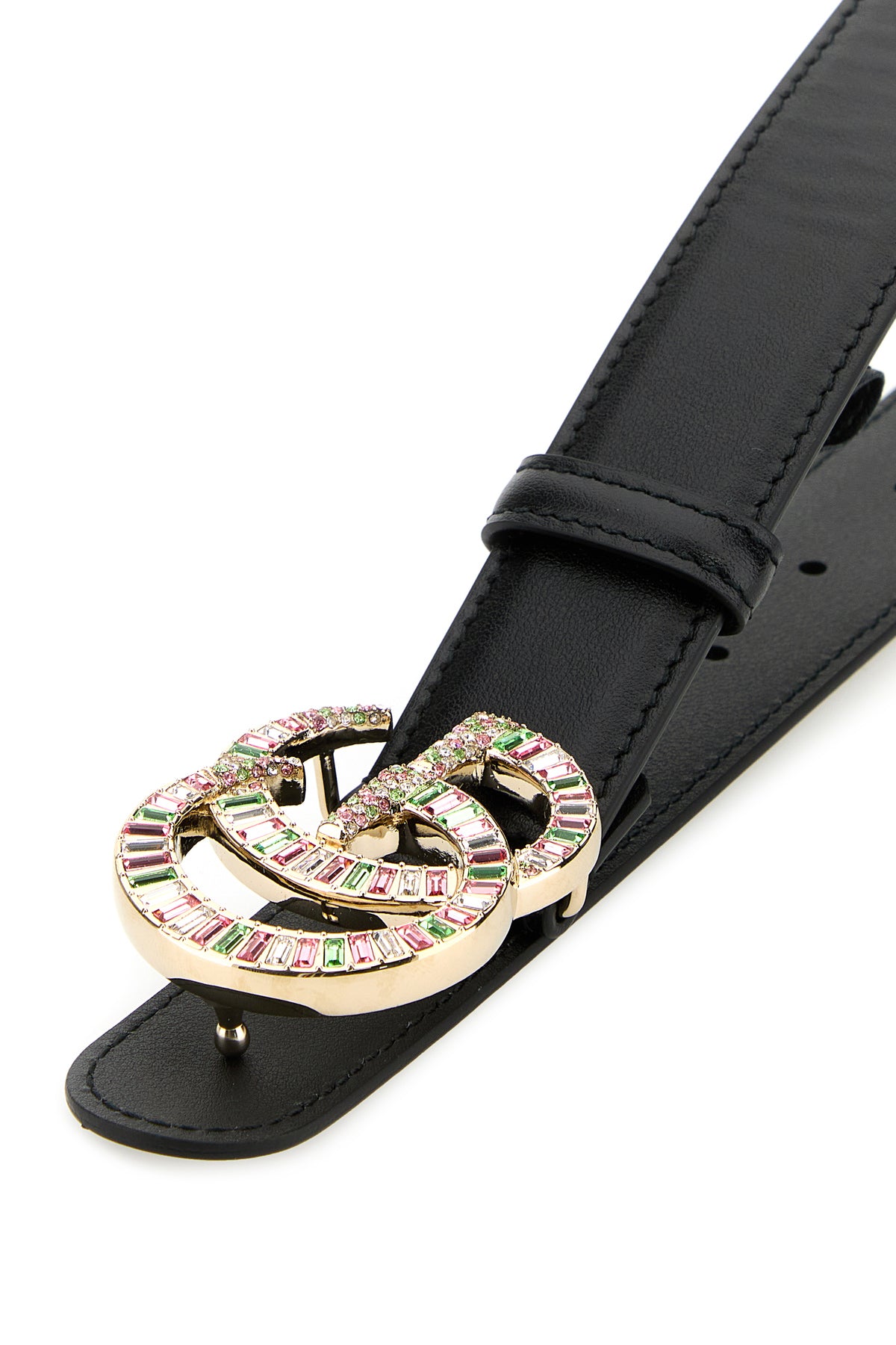 Belt realized in slightly pebble leather enriched by GG metal buckle with rhinestones.