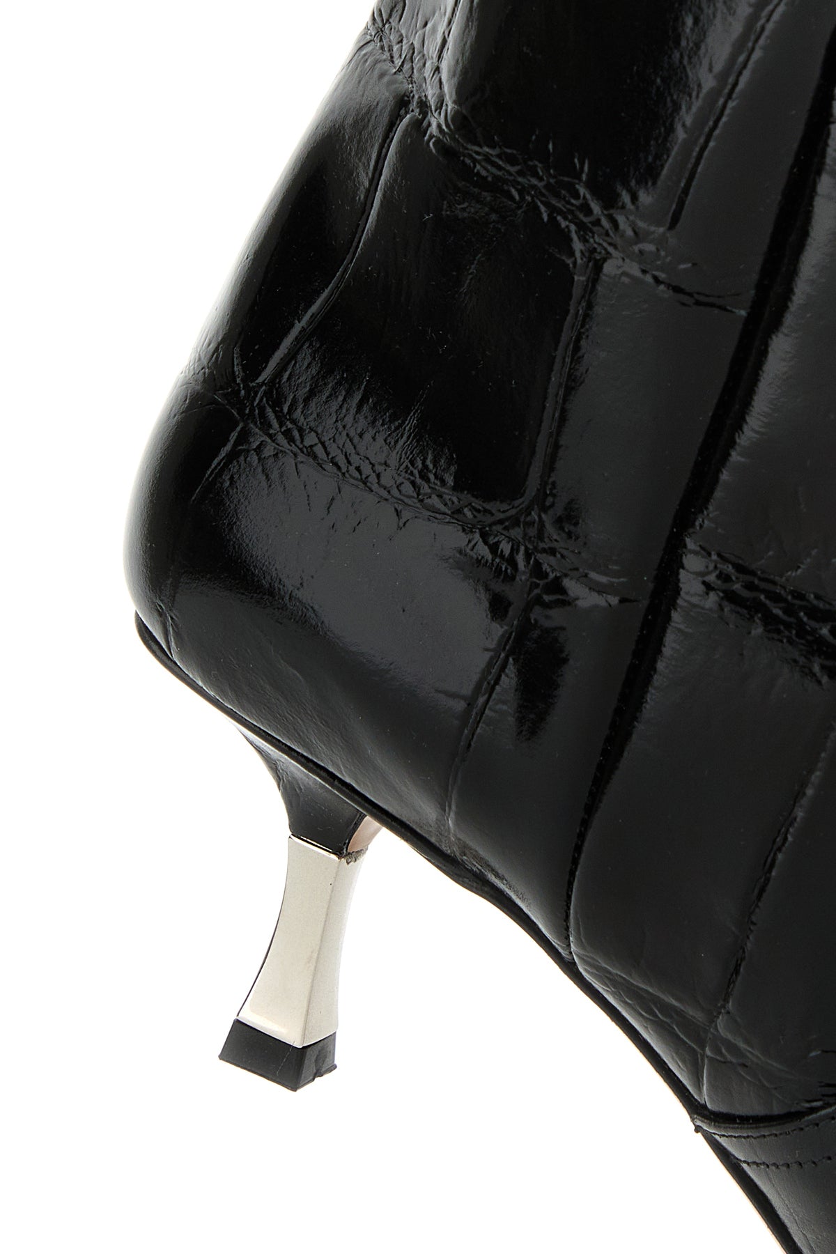 Boots realized in polished-finish crocodile motif embossed leather characterized by metal low heel.