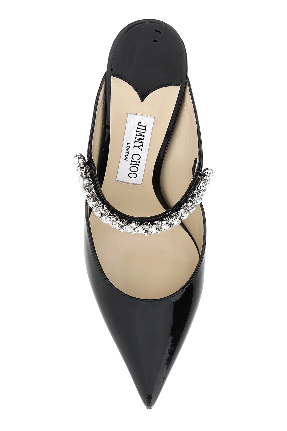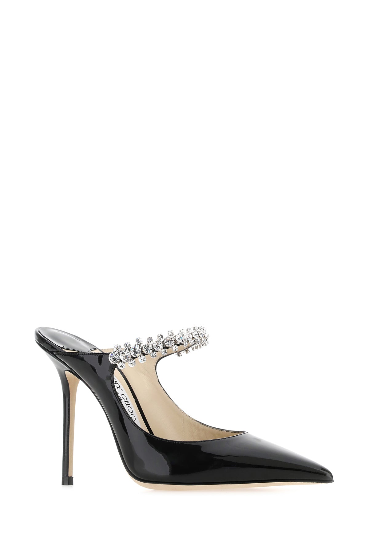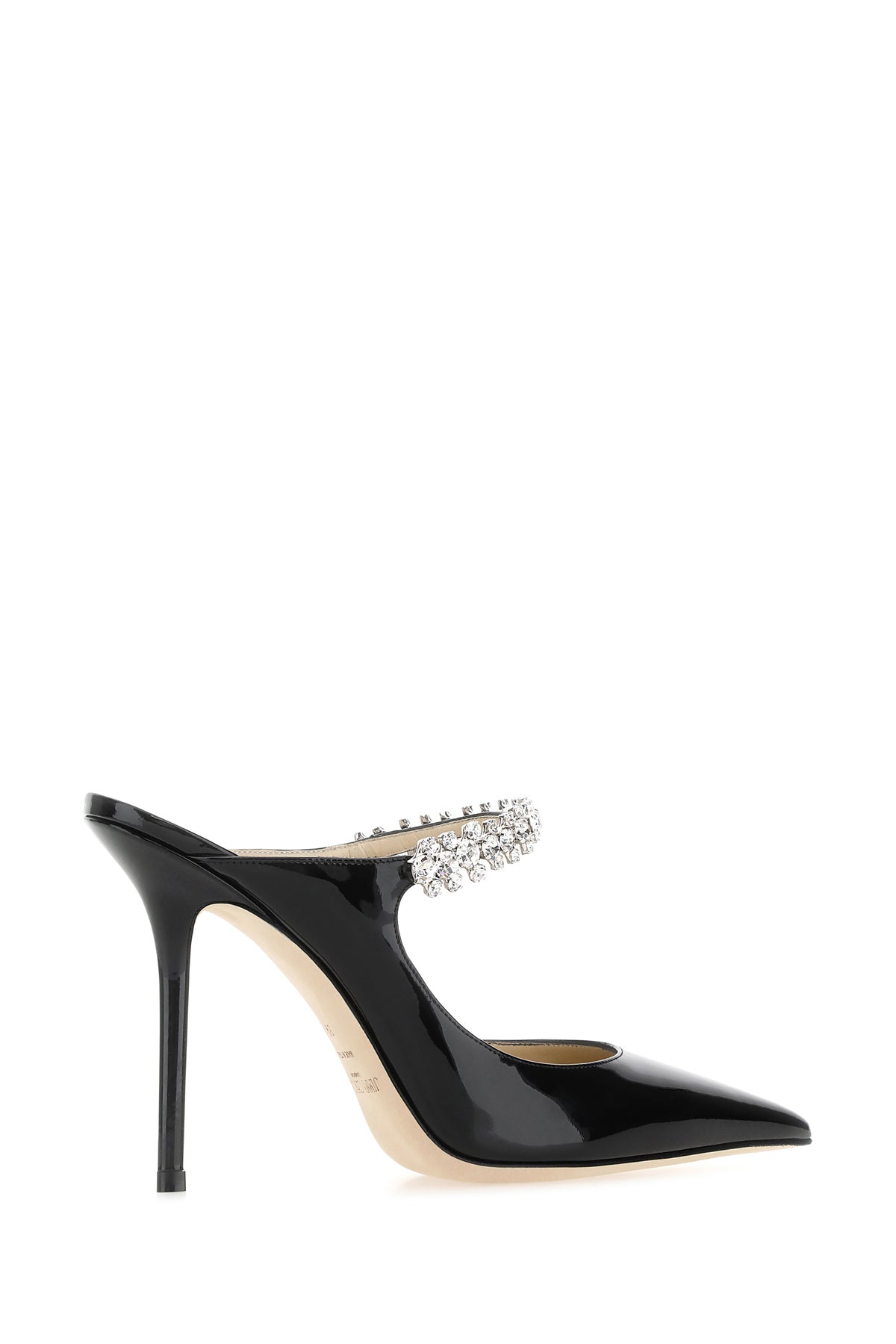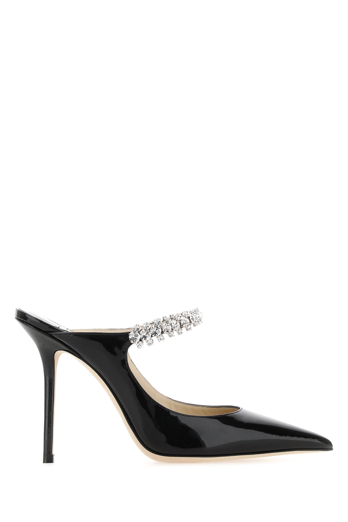 Mules realized in patent leather characterized by jewel strap on the instep.