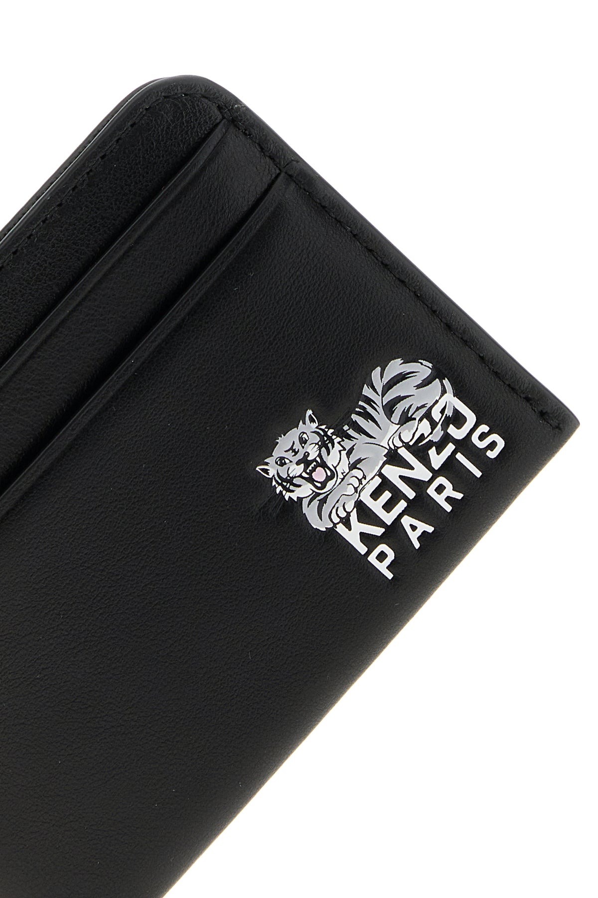 Card holder realized in smooth leather characterized by KENZO Happy Tiger print at the front.