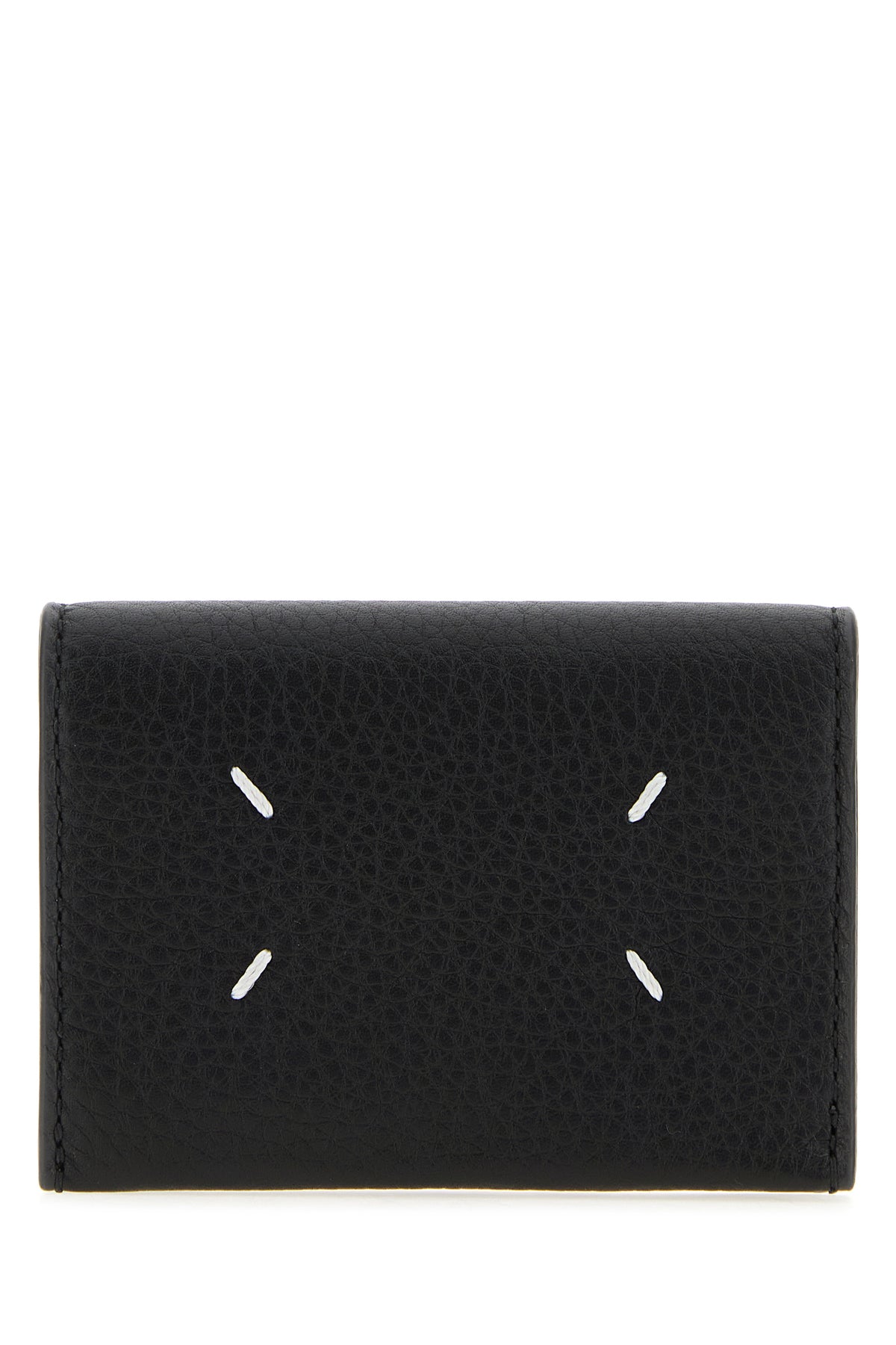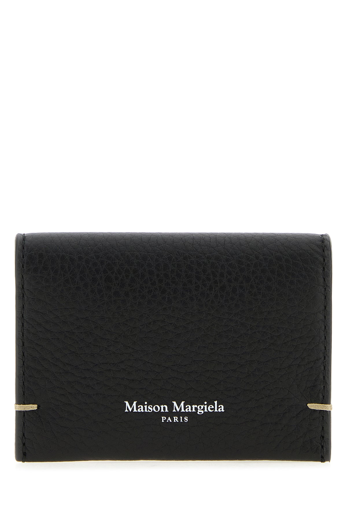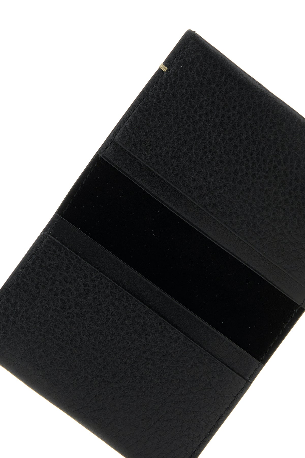 Card holder realized in pebble leather characterized by contrasting printed logo at the front.