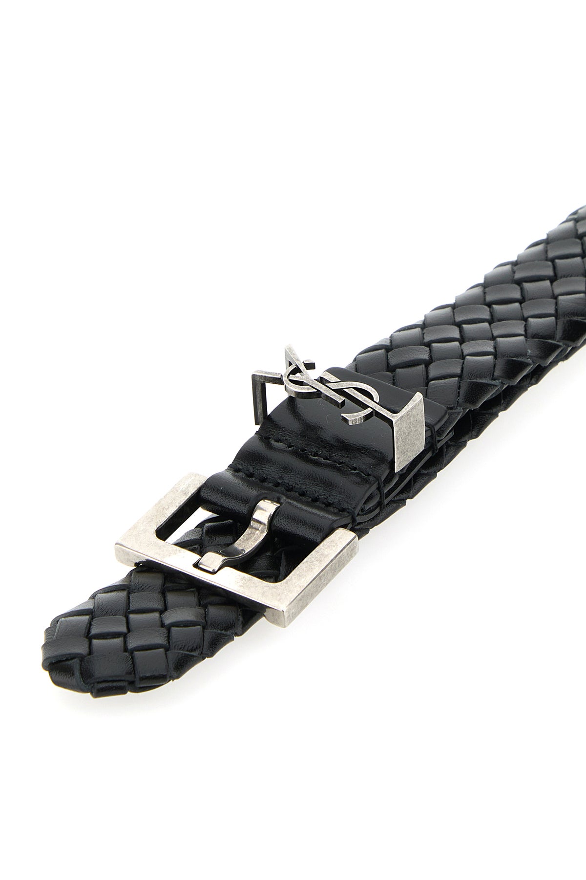Belt realized in polished-finish woven calf leather enriched by iconic metal Monogram detail.