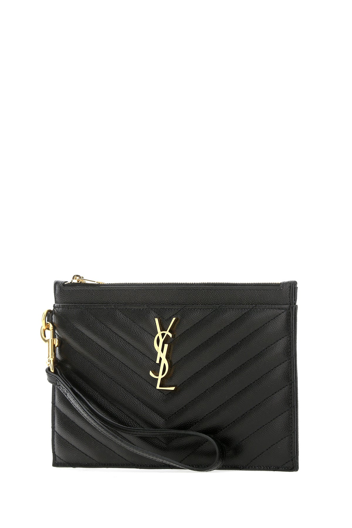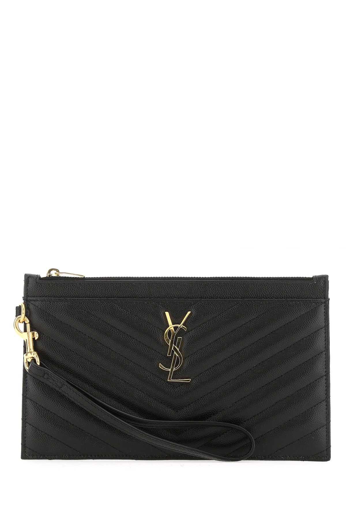 Clutch realized in matelasse calf leather enriched by iconic metal Monogam detail at the front.