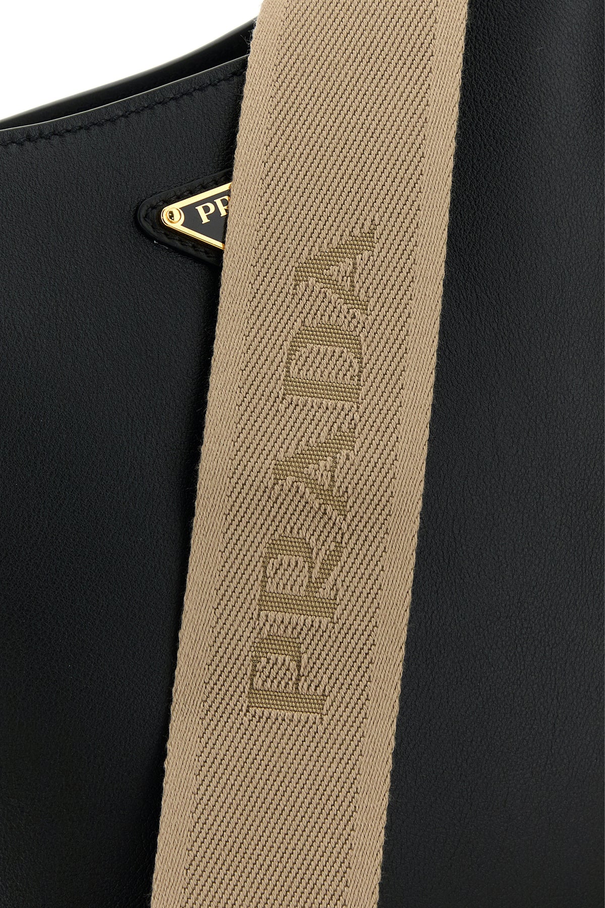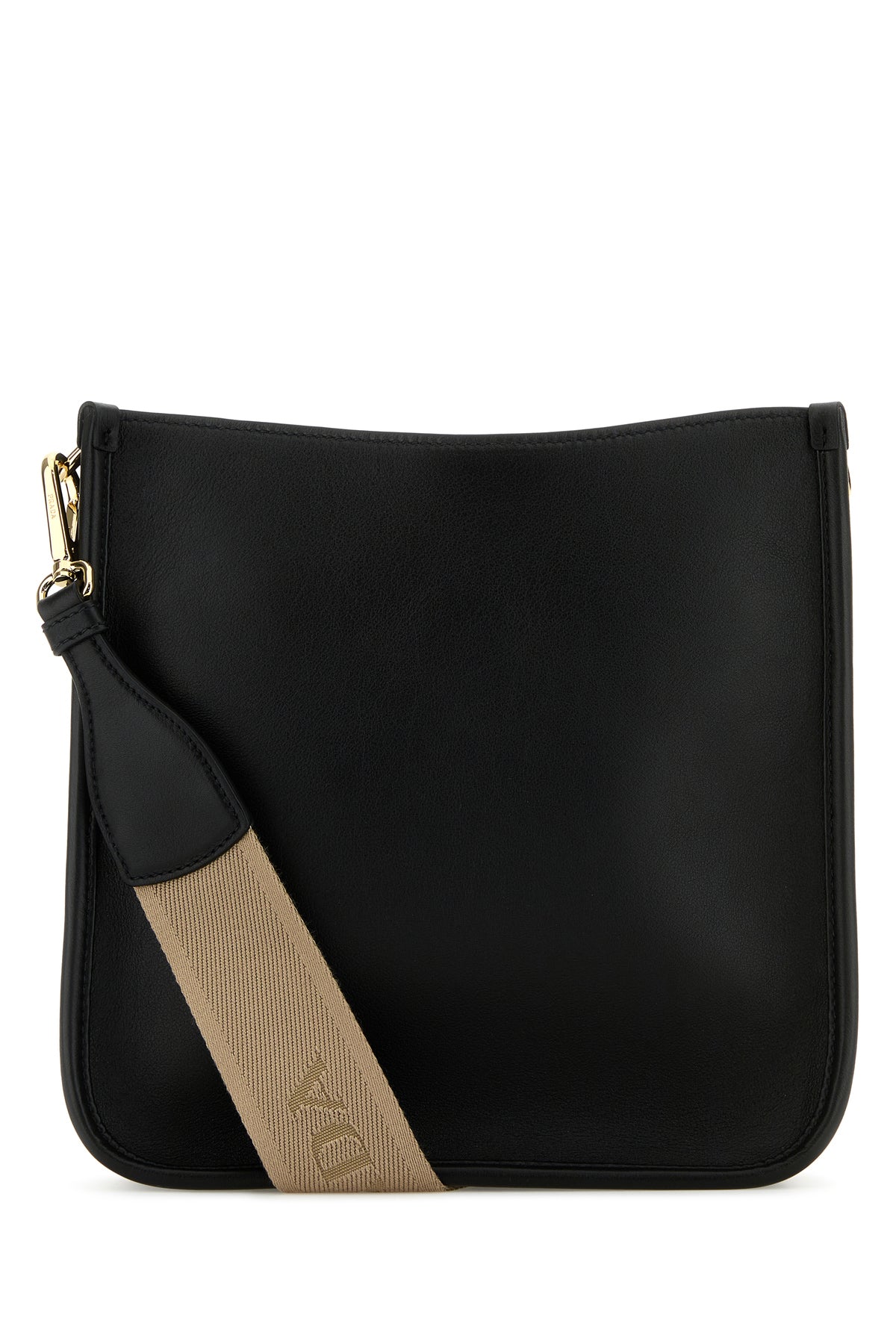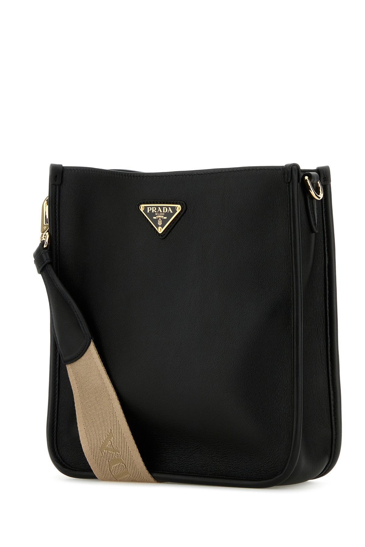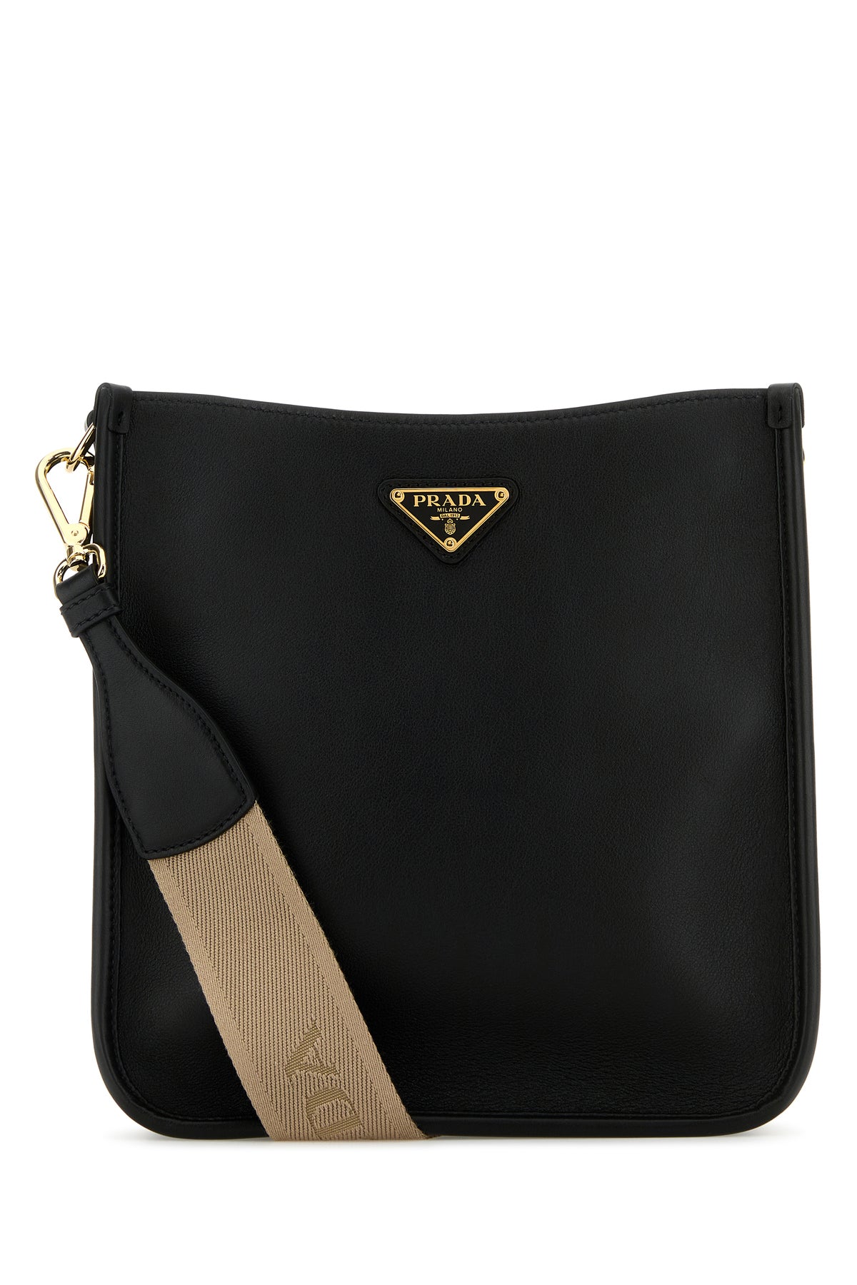 Crossbody bag realized in slightly pebble leather enriched by iconic metal logoed triangle at the front.