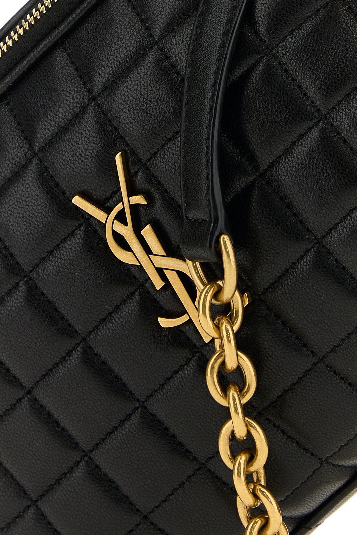 - Adjustable metal chain and leather shoulder strap