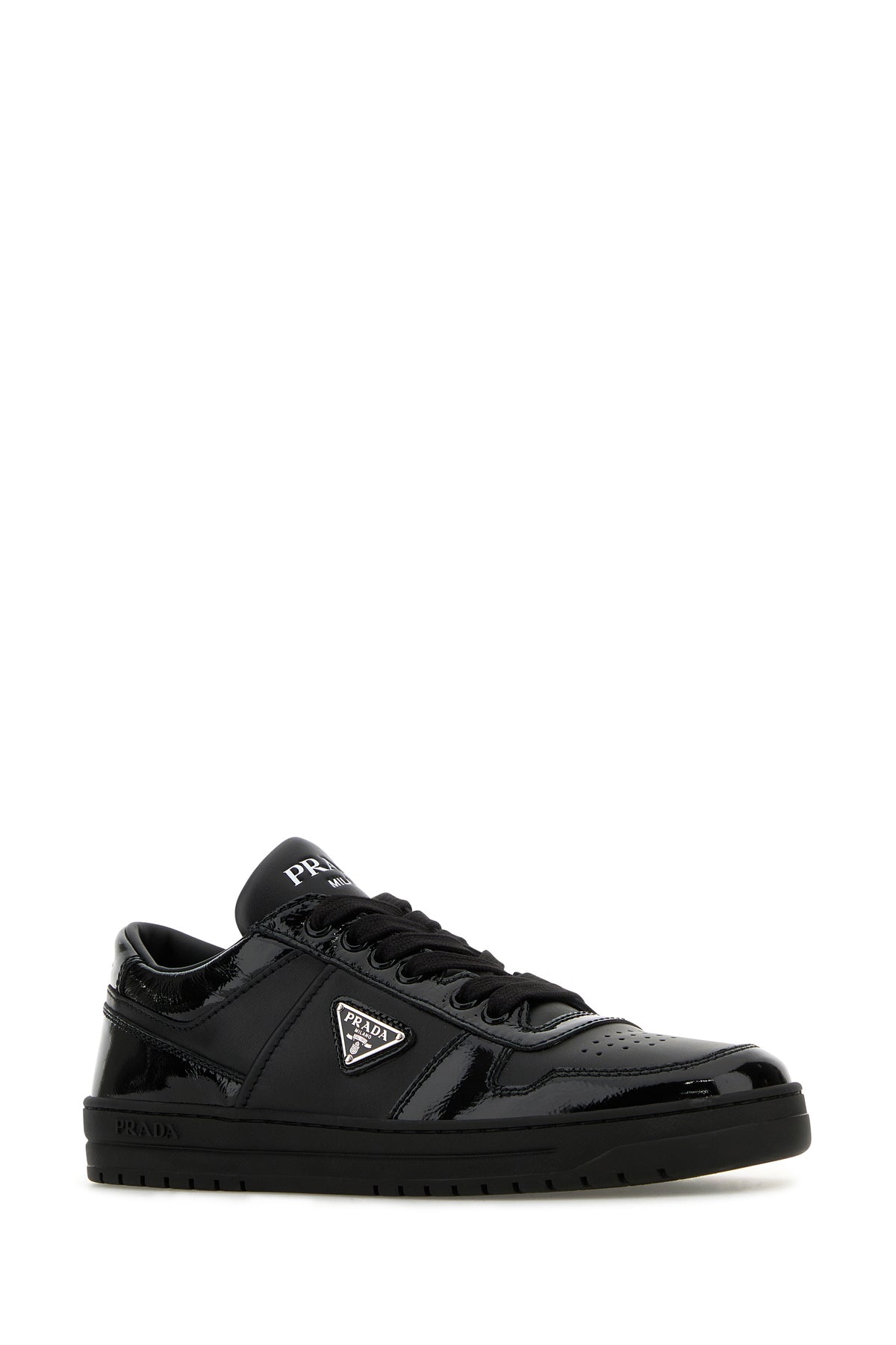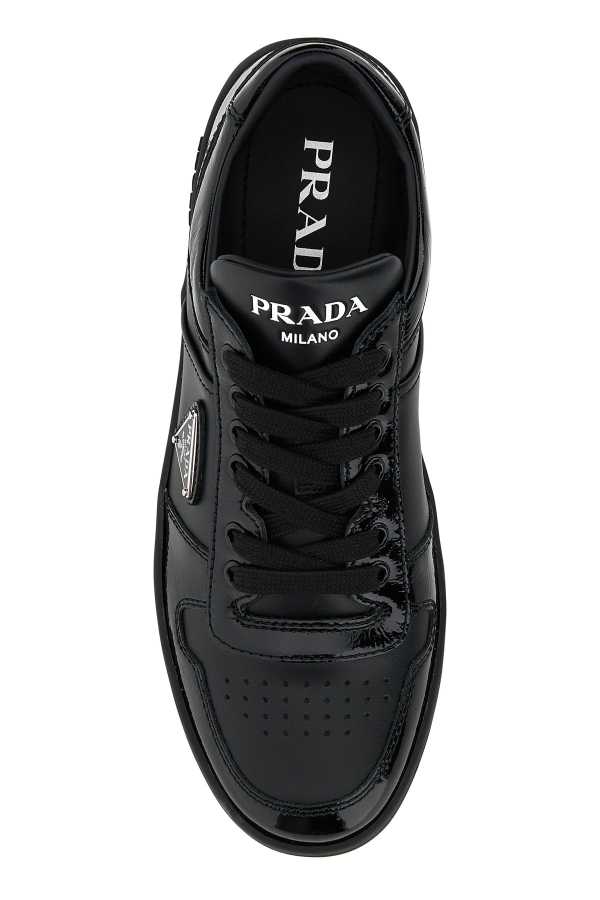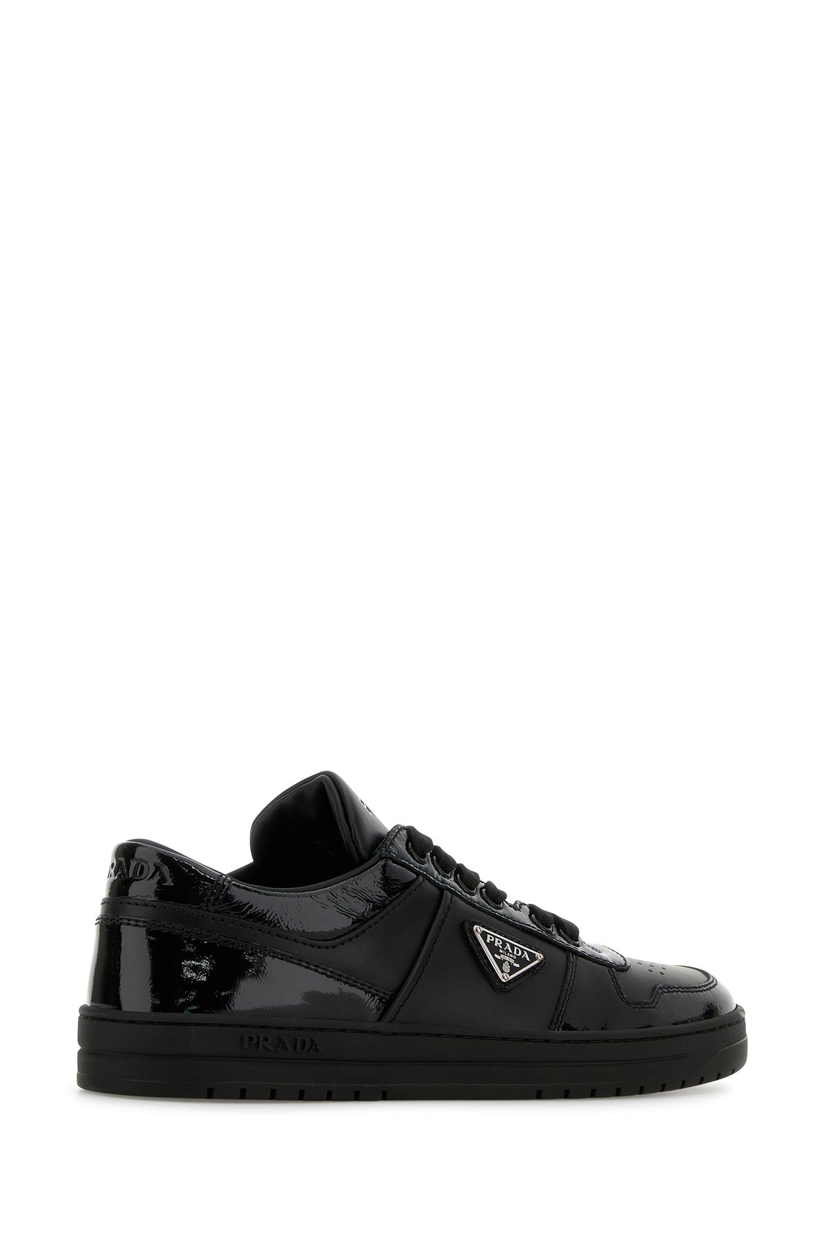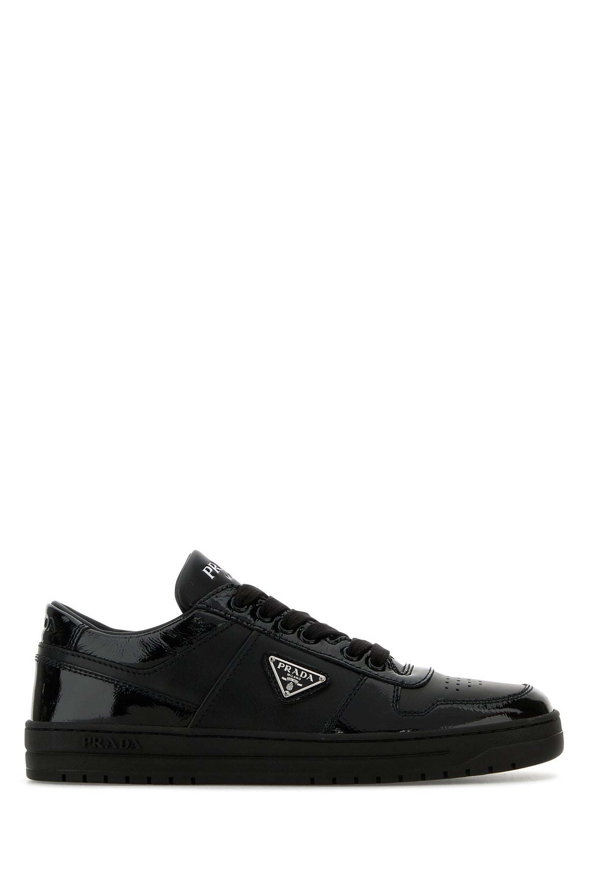 Sneakers realized in smooth calf leather and patent leather characterized by logo in relief on the side and embossed logo on the contrasting heel enriched by metal iconic logoed triangle on the side.
