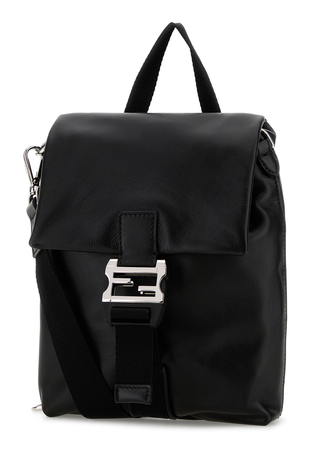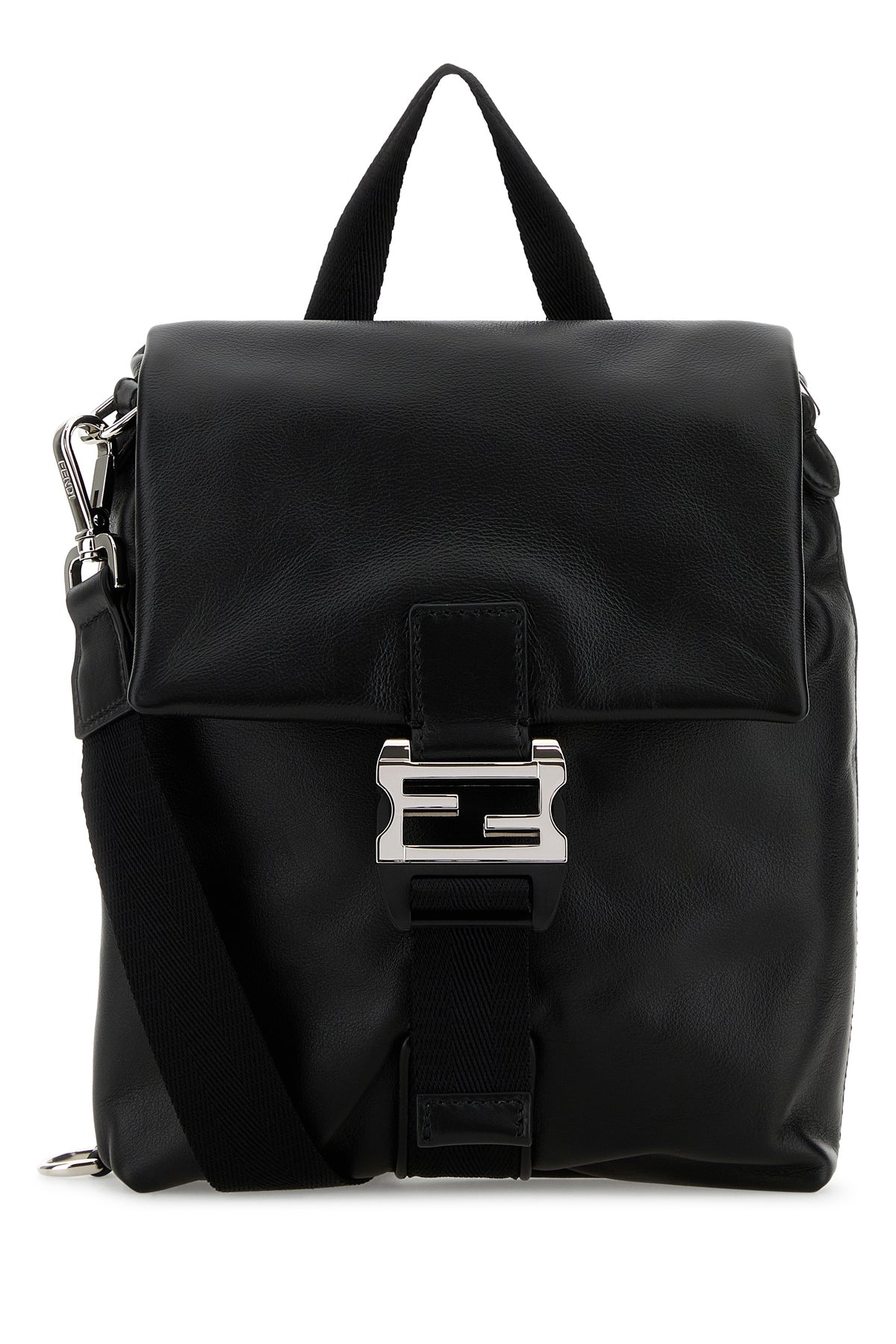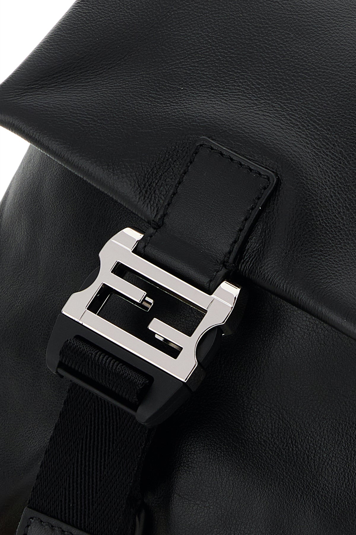 Handbag realized in pebble leather characterized by FF safety buckle closure.