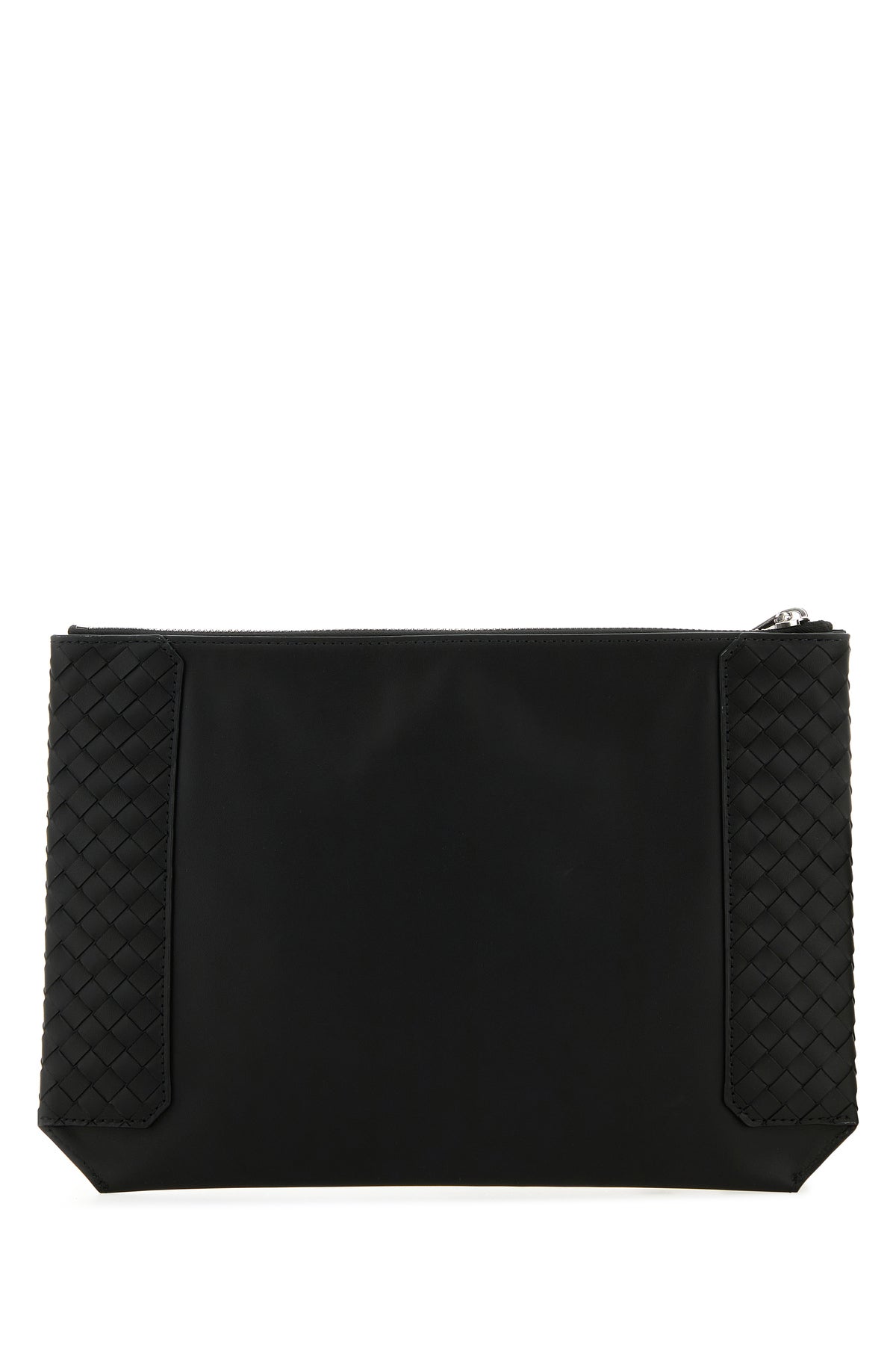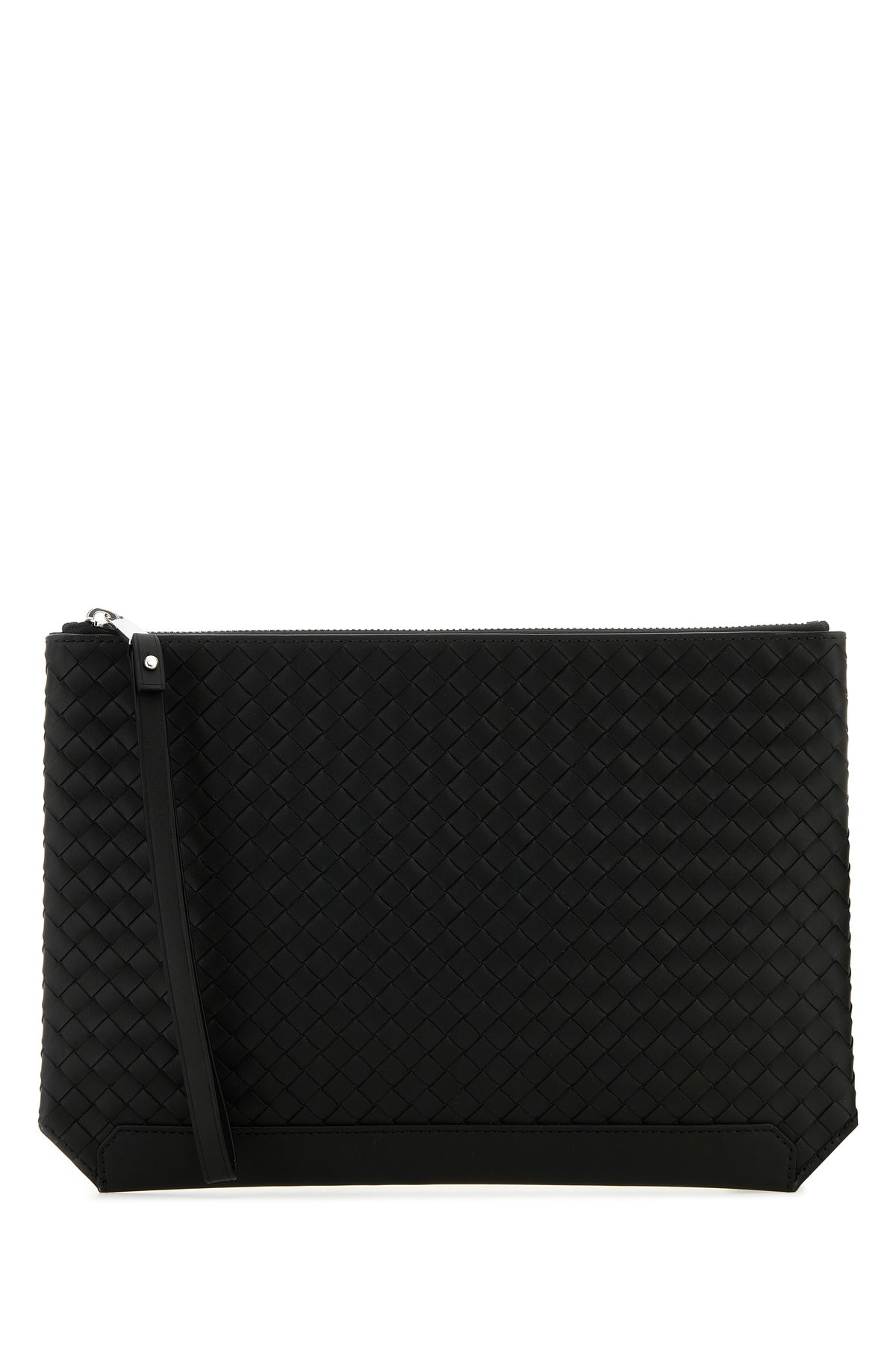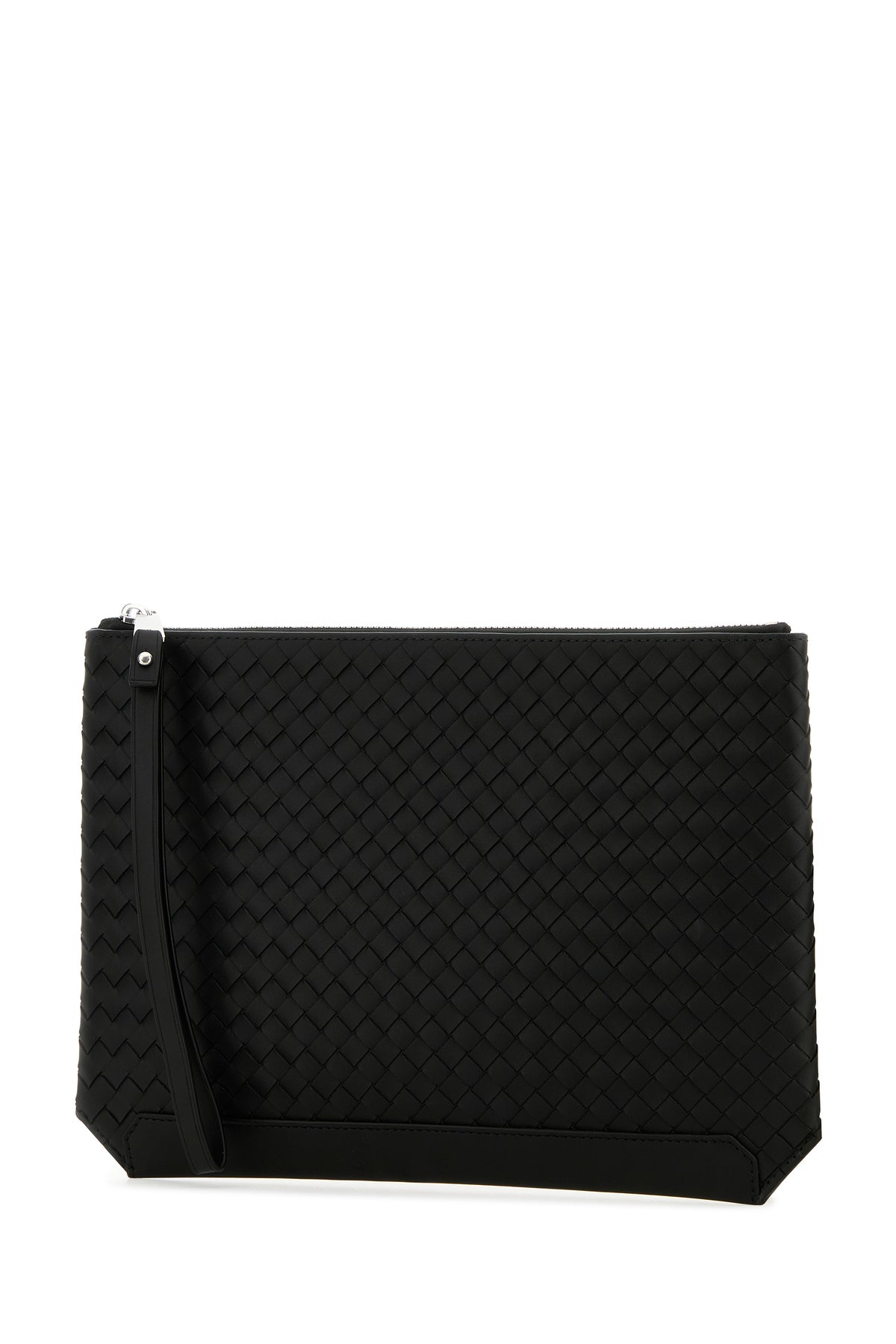 Clutch realized in calf leather characterized by iconic Intrecciato motif at the front.